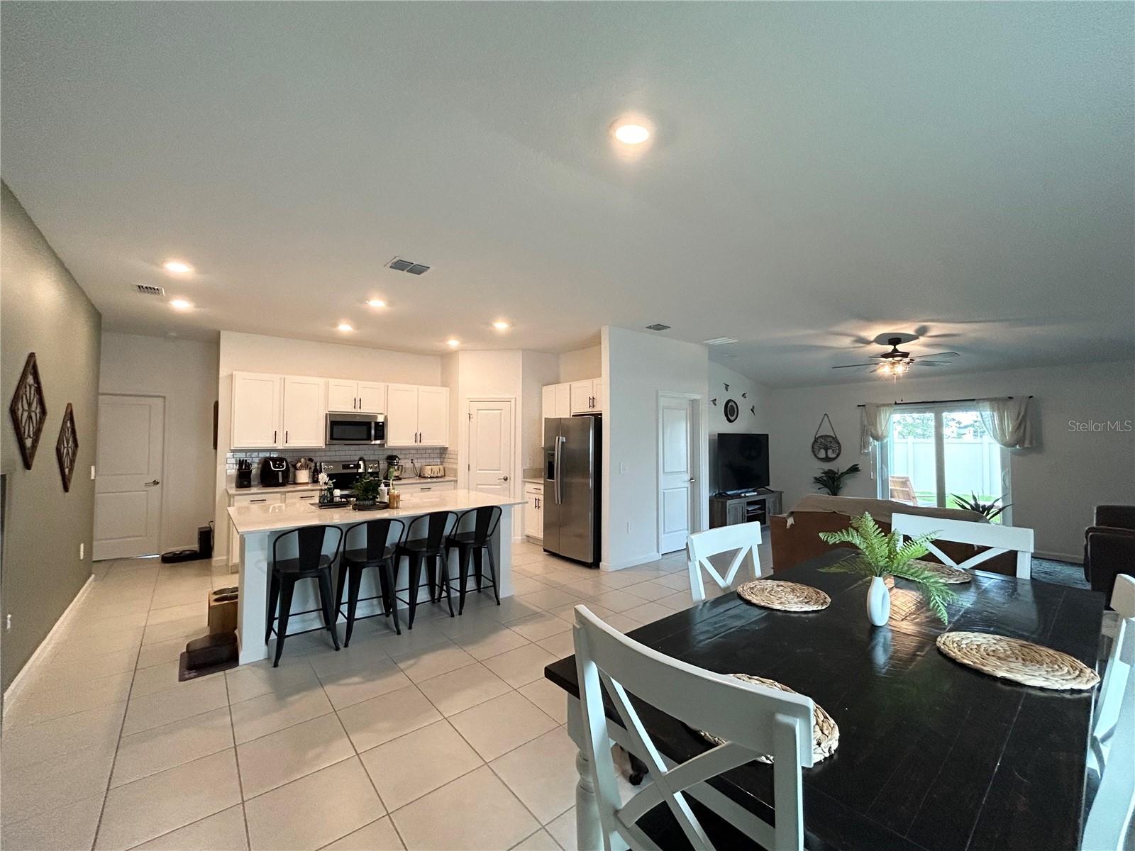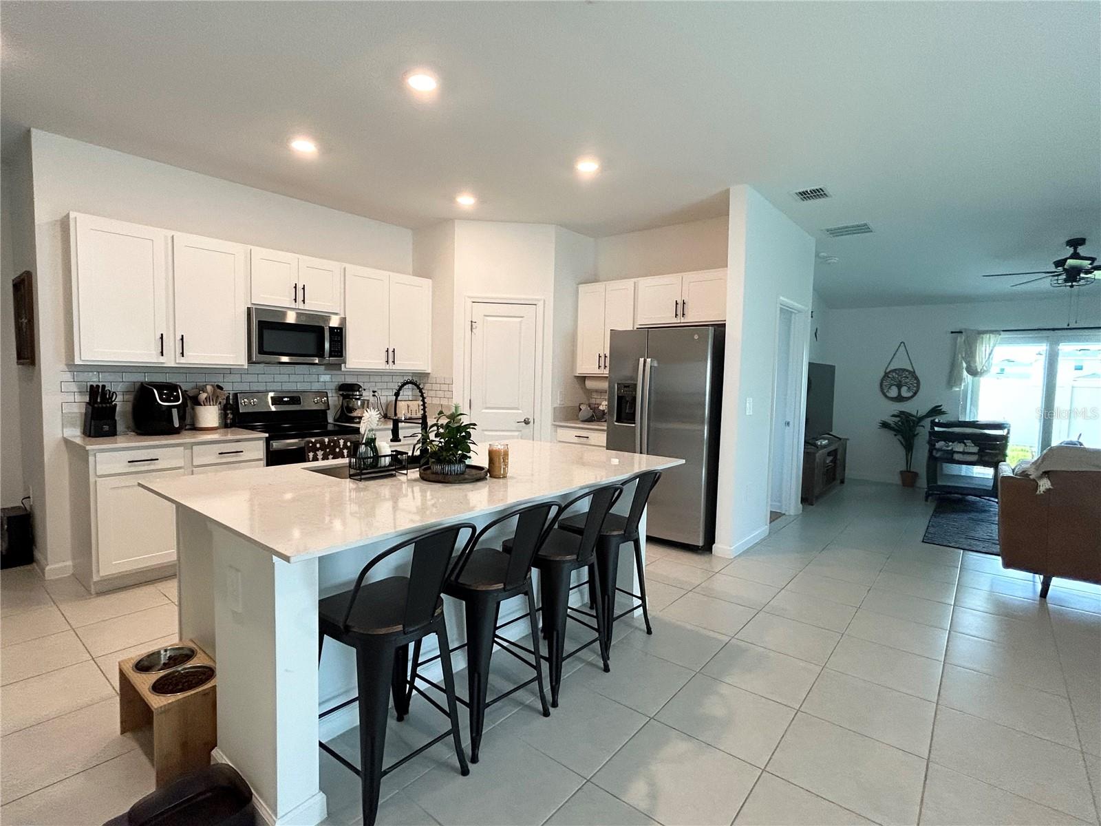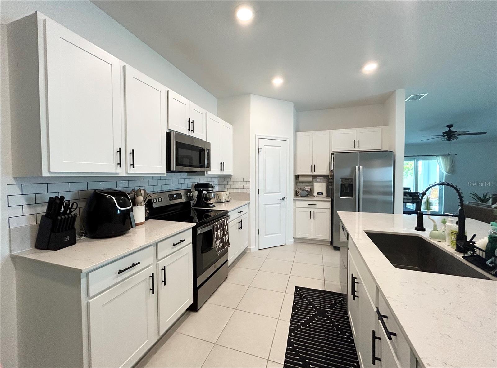 Welcome to Your Dream Home in Tillman Lakes! Nestled on a desirable and spacious corner lot in the sought-after Tillman Lakes community, this beautifully crafted 4-bedroom, 2-bath home offers a perfect blend of modern design, functionality, and comfort. With its open floor plan and thoughtful details, this residence is ideal for any potential buyer! Step into the heart of the home, where the spacious kitchen invites you in with its sleek white shaker cabinets, gleaming quartz countertops, and stainless-steel appliances. The large island with a breakfast bar serves as a focal point, providing ample prep space and seating for casual meals or gathering with friends. Flowing seamlessly from the kitchen, the beautiful dining room and expansive Great Room are drenched in natural light, creating a welcoming environment for gatherings of any size. The sliding glass door leads to the private, fenced backyard, a perfect extension of your living space for outdoor dining, play, or simply unwinding after a long day. Retreat to the peaceful Owner's Suite, where you'll find a generously sized walk-in closet and a tranquil bathroom with double vanities and plenty of storage. Each additional bedroom is spacious and versatile, ready to accommodate your needs. Impact windows throughout offer security and energy efficiency, while the pavered driveway, walkway, and back patio add a touch of elegance to the home's exterior. With a beautifully landscaped yard and fenced for privacy, this corner-lot gem offers both curb appeal and functional outdoor space. This home is the perfect blend of style, convenience, and comfort. Don’t miss your chance to make this gorgeous home yours—schedule a showing today and discover the best of Tillman Lakes living!