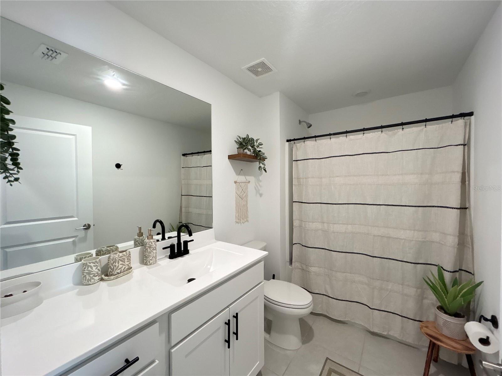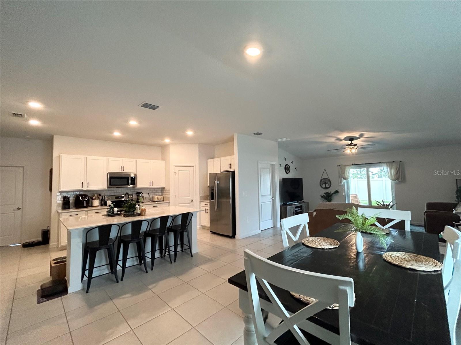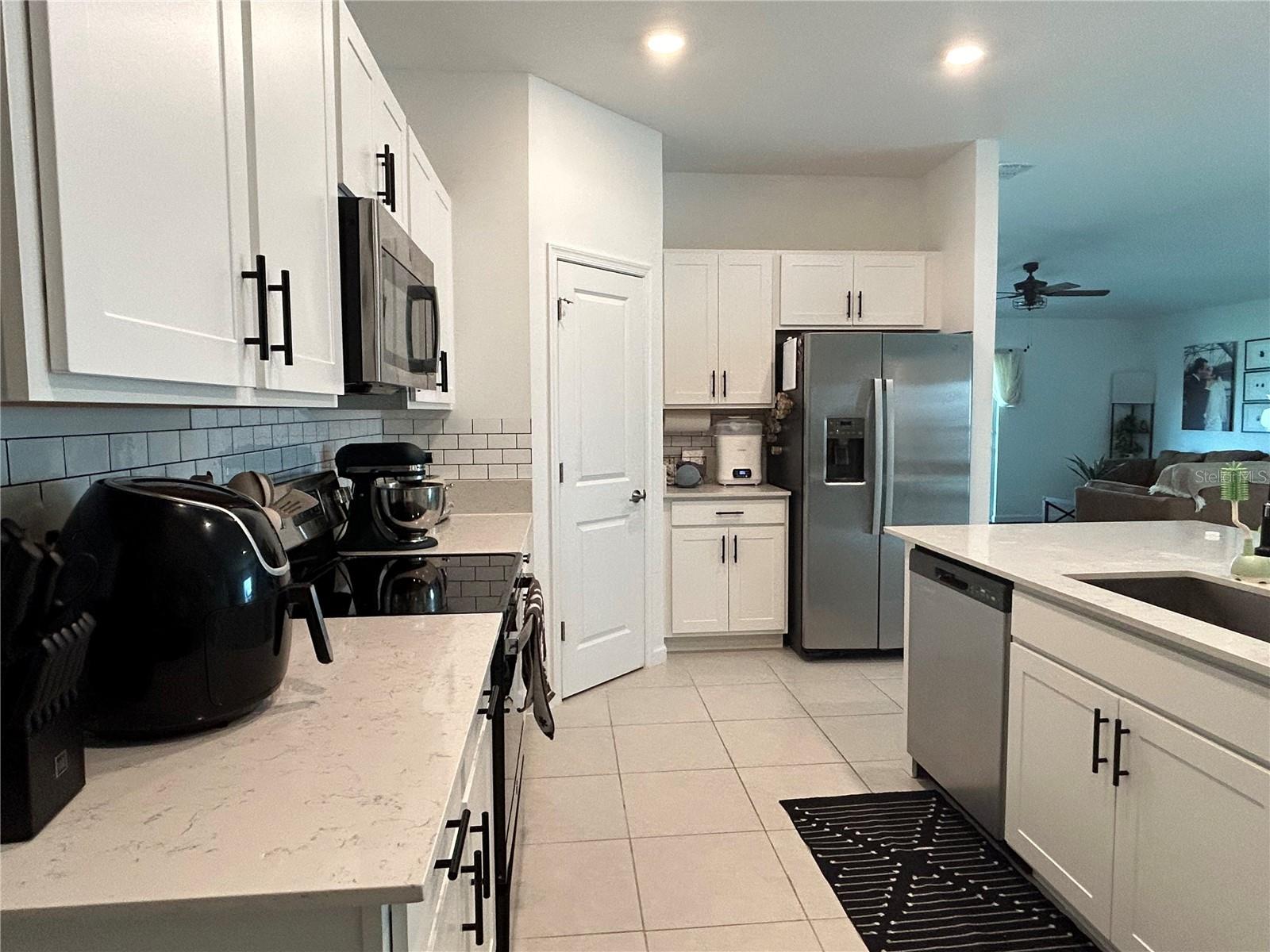 Welcome to Your Dream Home in Tillman Lakes! Nestled on a desirable and spacious corner lot in the sought-after Tillman Lakes community, this beautifully crafted 4-bedroom, 2-bath home offers a perfect blend of modern design, functionality, and comfort. With its open floor plan and thoughtful details, this residence is ideal for any potential buyer! Step into the heart of the home, where the spacious kitchen invites you in with its sleek white shaker cabinets, gleaming quartz countertops, and stainless-steel appliances. The large island with a breakfast bar serves as a focal point, providing ample prep space and seating for casual meals or gathering with friends. Flowing seamlessly from the kitchen, the beautiful dining room and expansive Great Room are drenched in natural light, creating a welcoming environment for gatherings of any size. The sliding glass door leads to the private, fenced backyard, a perfect extension of your living space for outdoor dining, play, or simply unwinding after a long day. Retreat to the peaceful Owner's Suite, where you'll find a generously sized walk-in closet and a tranquil bathroom with double vanities and plenty of storage. Each additional bedroom is spacious and versatile, ready to accommodate your needs. Impact windows throughout offer security and energy efficiency, while the pavered driveway, walkway, and back patio add a touch of elegance to the home's exterior. With a beautifully landscaped yard and fenced for privacy, this corner-lot gem offers both curb appeal and functional outdoor space. This home is the perfect blend of style, convenience, and comfort. Don’t miss your chance to make this gorgeous home yours—schedule a showing today and discover the best of Tillman Lakes living!