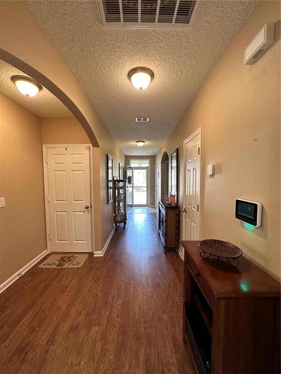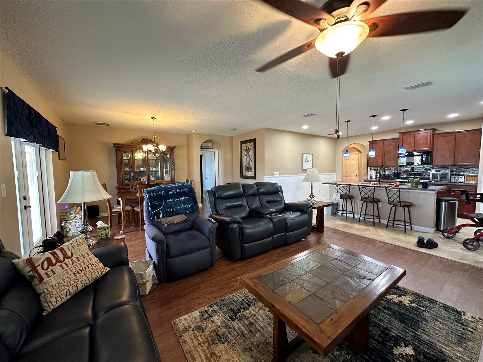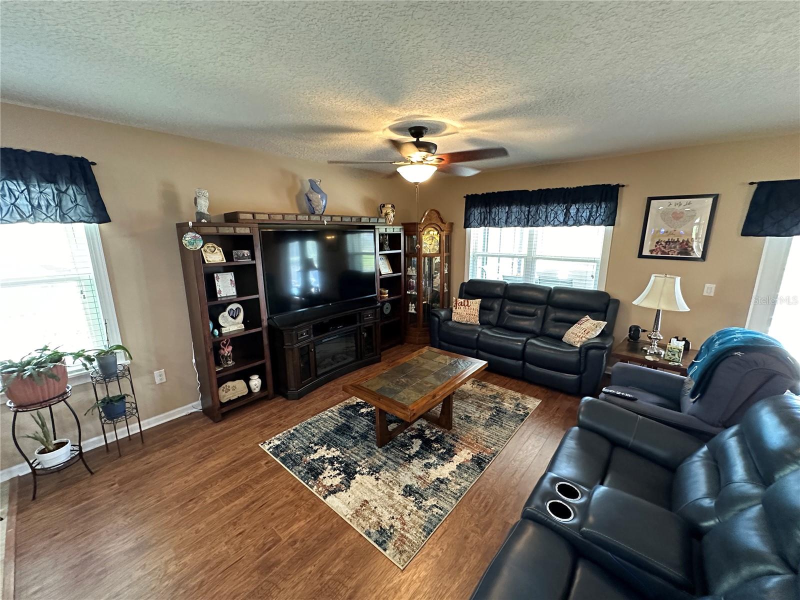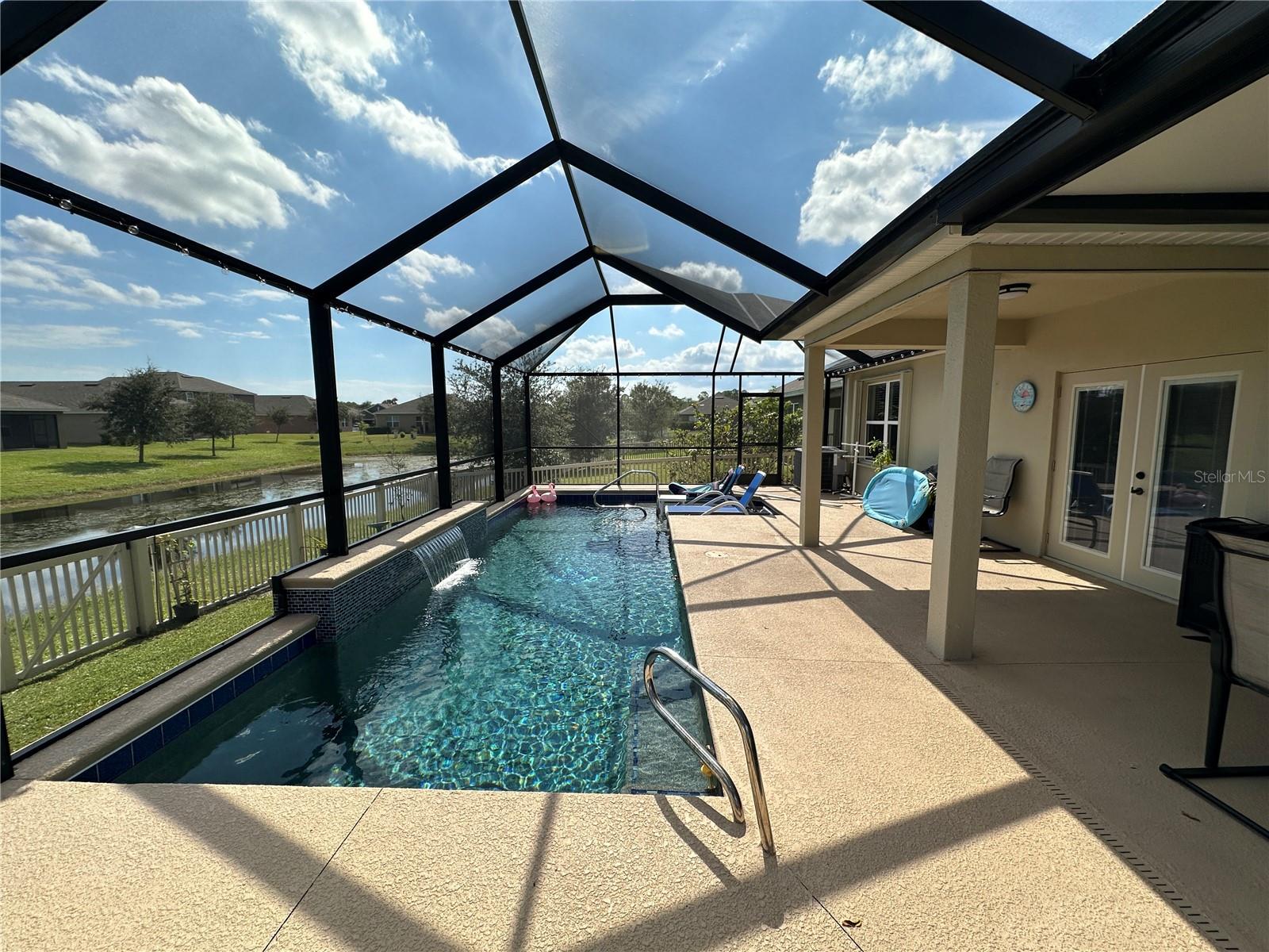 Enjoy a peaceful, sunkissed afternoon at your private saltwater pool. This STUNNING concrete block pool home has it all! The Cali Extended floor plan boasts 4 bedrooms and 2 bathrooms. Living room, dining room, and separate laundry room. Laminate and Tile flooring throughout, sets the stage nicely for pets. Fully owned solar panels help keep utility bills to a minimum. Fresh paint inside and out. Upgraded accordion-style Hurricane shutters. A generator plugin setup. A separate irrigation well. Low HOA fees include cable and internet. An extra fridge in the garage. All capped off with a fully fenced-in backyard, overlooking a waterfront pond.