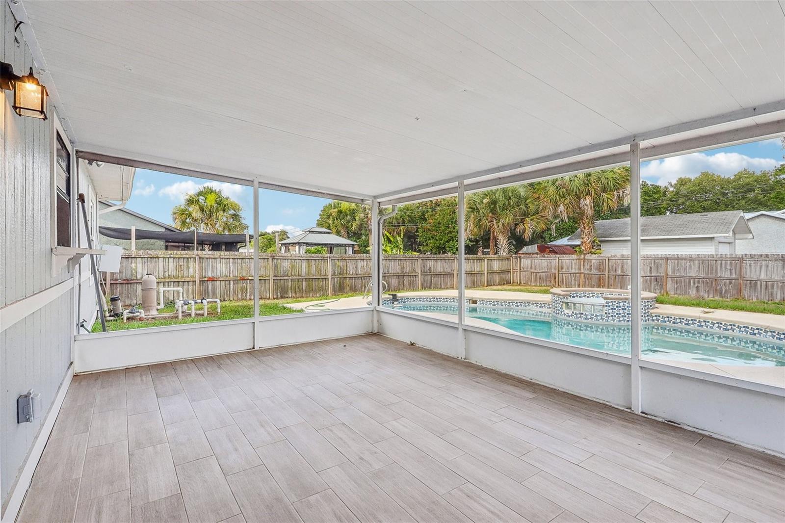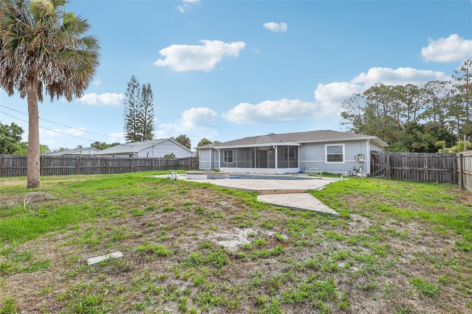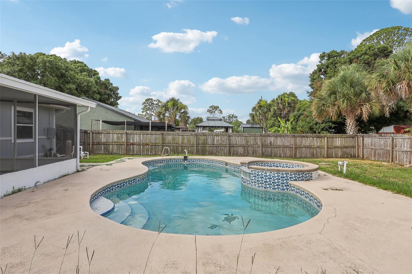 Welcome to your tranquil retreat in Palm Bay! This inviting home features 3 beds, 2 baths, a private driveway, and elegant tile flooring throughout. Enjoy culinary delights in the modern kitchen equipped with stainless steel appliances, wooden cabinets, and a convenient island. Unwind in the screened-in back porch overlooking your private pool, perfect for relaxing evenings or entertaining guests. Luxuriate in the primary bath's soothing bathtub. This home offers a perfect blend of comfort and style in a desirable location. Age of the roof, HVAC, and water heater all unknown.