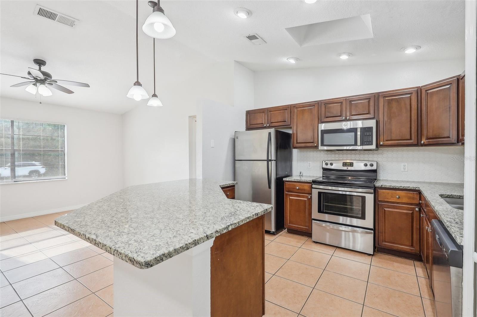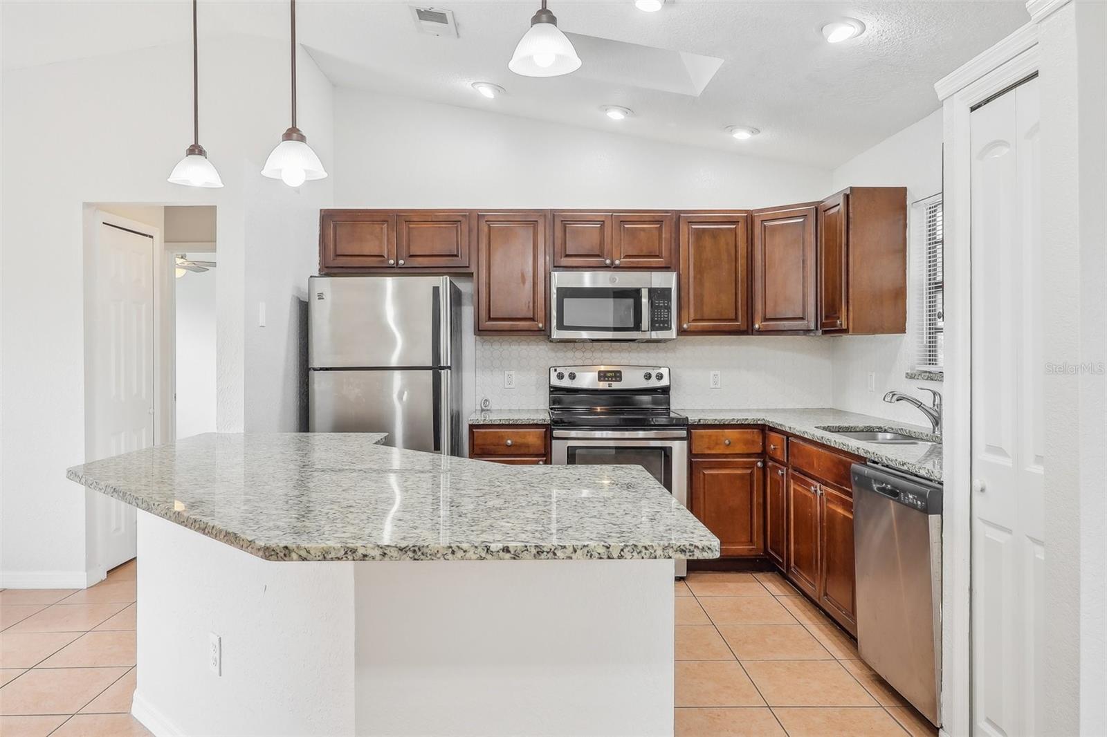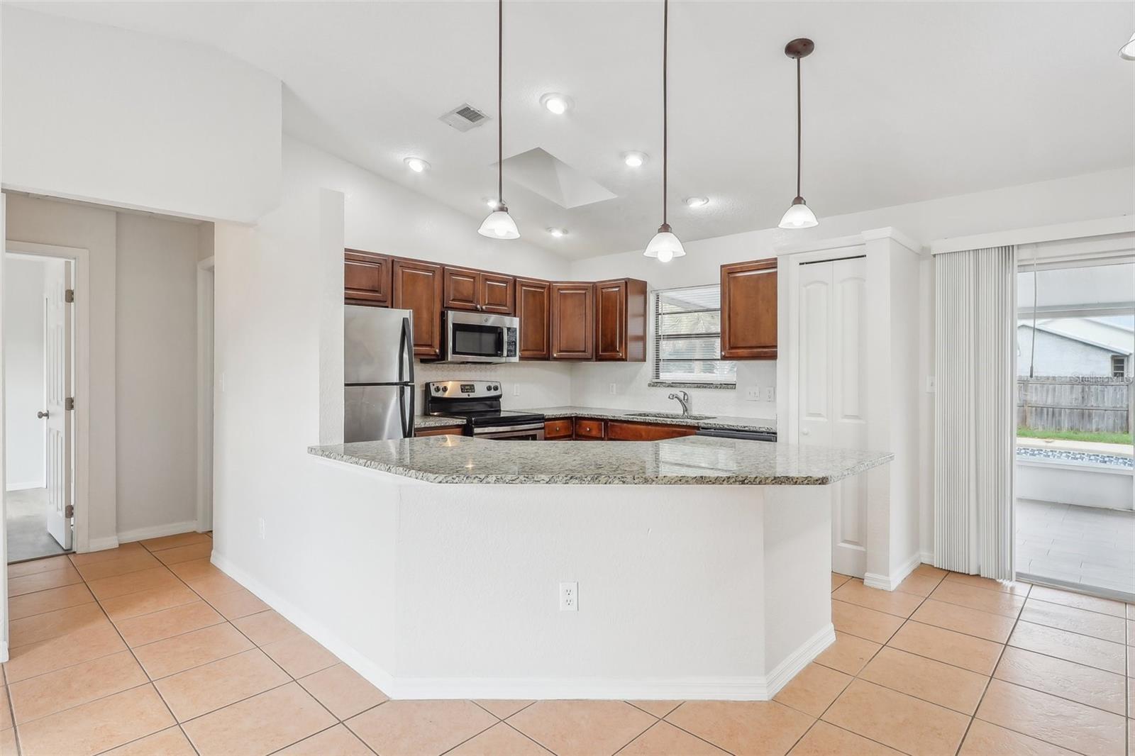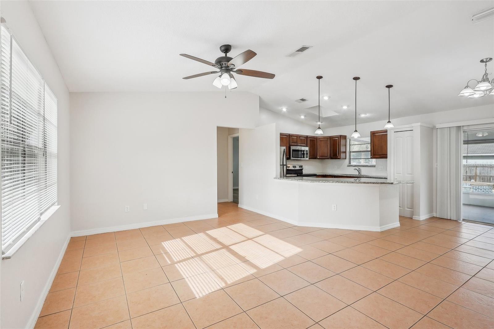 Welcome to your tranquil retreat in Palm Bay! This inviting home features 3 beds, 2 baths, a private driveway, and elegant tile flooring throughout. Enjoy culinary delights in the modern kitchen equipped with stainless steel appliances, wooden cabinets, and a convenient island. Unwind in the screened-in back porch overlooking your private pool, perfect for relaxing evenings or entertaining guests. Luxuriate in the primary bath's soothing bathtub. This home offers a perfect blend of comfort and style in a desirable location. Age of the roof, HVAC, and water heater all unknown.
