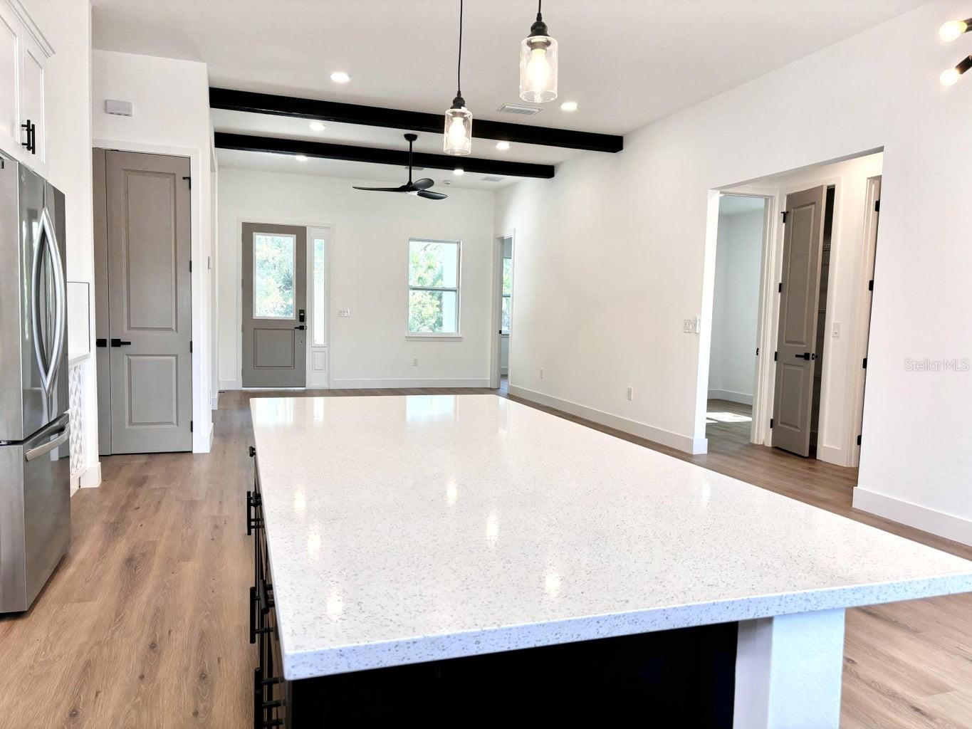 Exquisite New Construction Home with Luxury Finishes! Step into luxury with this newly constructed 4bedroom, 2 Bath home boasting an open floor plan with 10' high ceilings. Enter through the front door into an expansive great room with decorative beams, creating a grand and welcoming atmosphere.this home is ready for immediate move-in, this property combines style, comfort, and modern living. The kitchen features,Quartz countertops,Stainless steel appliances, Upgraded cabinets, and wine storage. Abundant natural light fills the home, enhancing the open and airy feel. Luxury vinyl flooring runs throughout the home, complemented by Craftsman style baseboards and 8' doors. Both bathrooms include beautiful finishes, Tile to the ceilings in the showers French doors lead you to the backyard, perfect for outdoor entertaining.Enjoy the freedom of no Homeowners Association fees or restrictions.Nearby shopping centers, dining options, Beaches and major highways. Call to schedule your showing!
