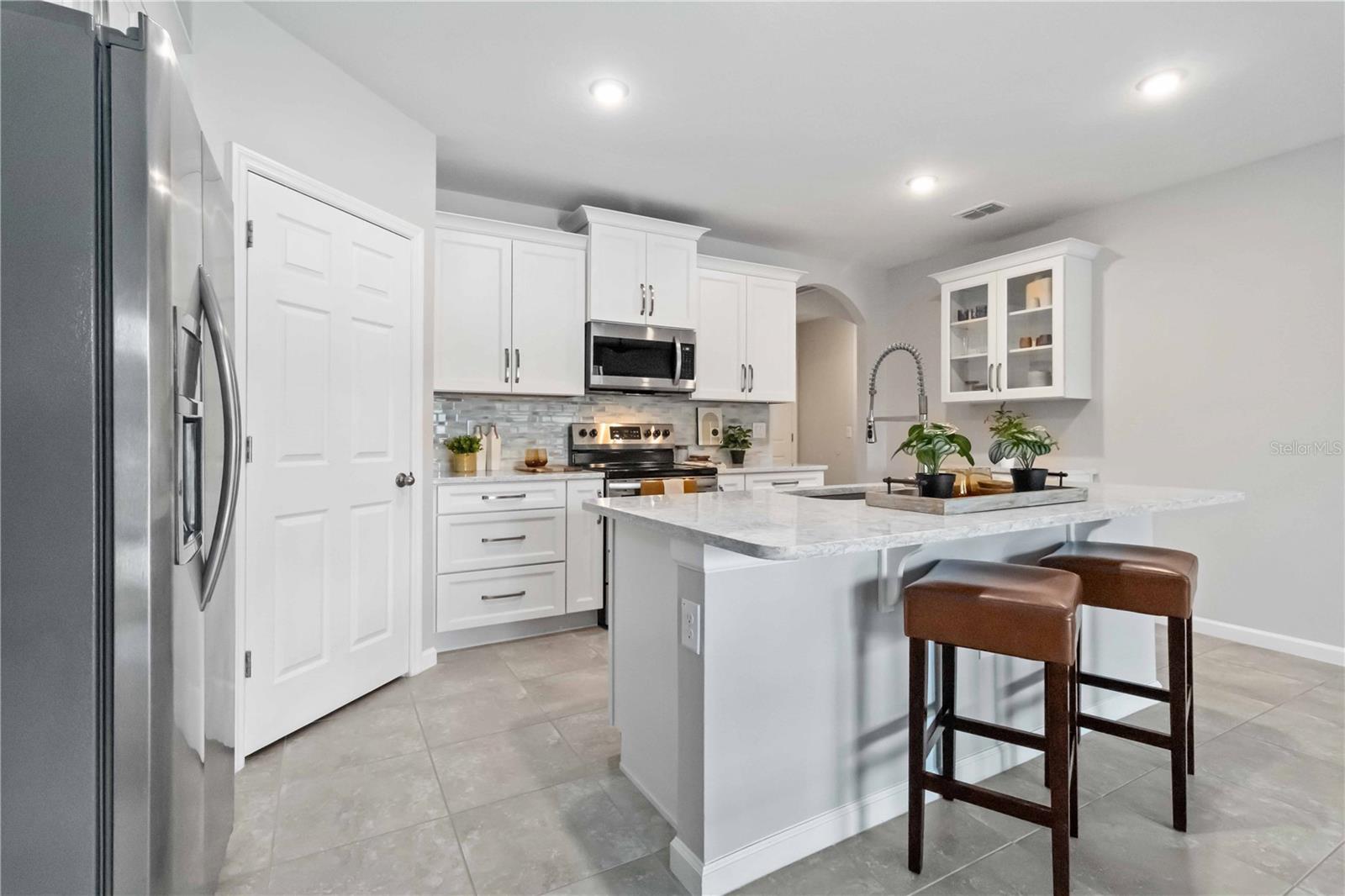 Experience the best of Florida living in this stunning 4-bedroom, 2-bath pool home. Located in the peaceful, gated community of The Preserves at Stonebriar in Palm Bay. With over $100k in upgrades, this residence offers an exceptional blend of beauty, comfort and convenience. Step outside to your private retreat featuring a pristine pool with a screened enclosure, ideal for enjoying the sunny Florida weather in peace. The home is equipped with a smart home system, including a Ring doorbell and a comprehensive security system for added security and peace of mind. Inside, the open floor plan is complemented by new carpet, fresh paint, and a whole-home water purification system. Renovated in 2021, the home features modern upgrades such as soft-close kitchen cabinets with built-ins, Cambria quartz countertops, and a Bosch dishwasher. Both bathrooms have been updated with new vanities, fixtures, and mirrors. Hurricane shutters provided add extra protection for stormy weather. Fully fenced backyard is beautifully landscaped for outdoor enjoyment and entertainment. Additional features include garage ceiling storage, a kayak rack, and negotiable furniture to suit your needs. Located in a quiet neighborhood, this home is also conveniently close to beautiful beaches, offering the perfect balance of tranquility and coastal convenience. Beyond your doorstep, the community offers wonderful amenities, including multiple pools, a sauna, a clubhouse, sports courts, and playgrounds. This makes for a vibrant lifestyle with ample opportunities for relaxation and recreation. Don’t miss this opportunity to own a move-in-ready gem in a sought-after location near restaurants, shops, and the stunning Florida coastline!