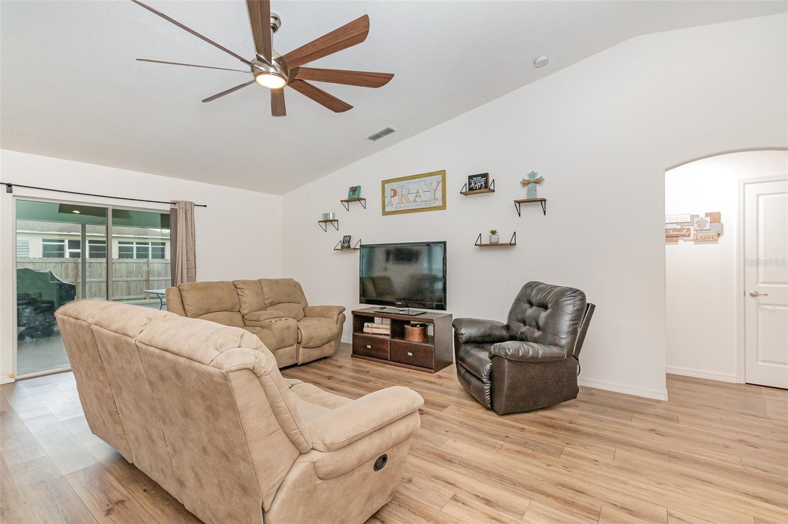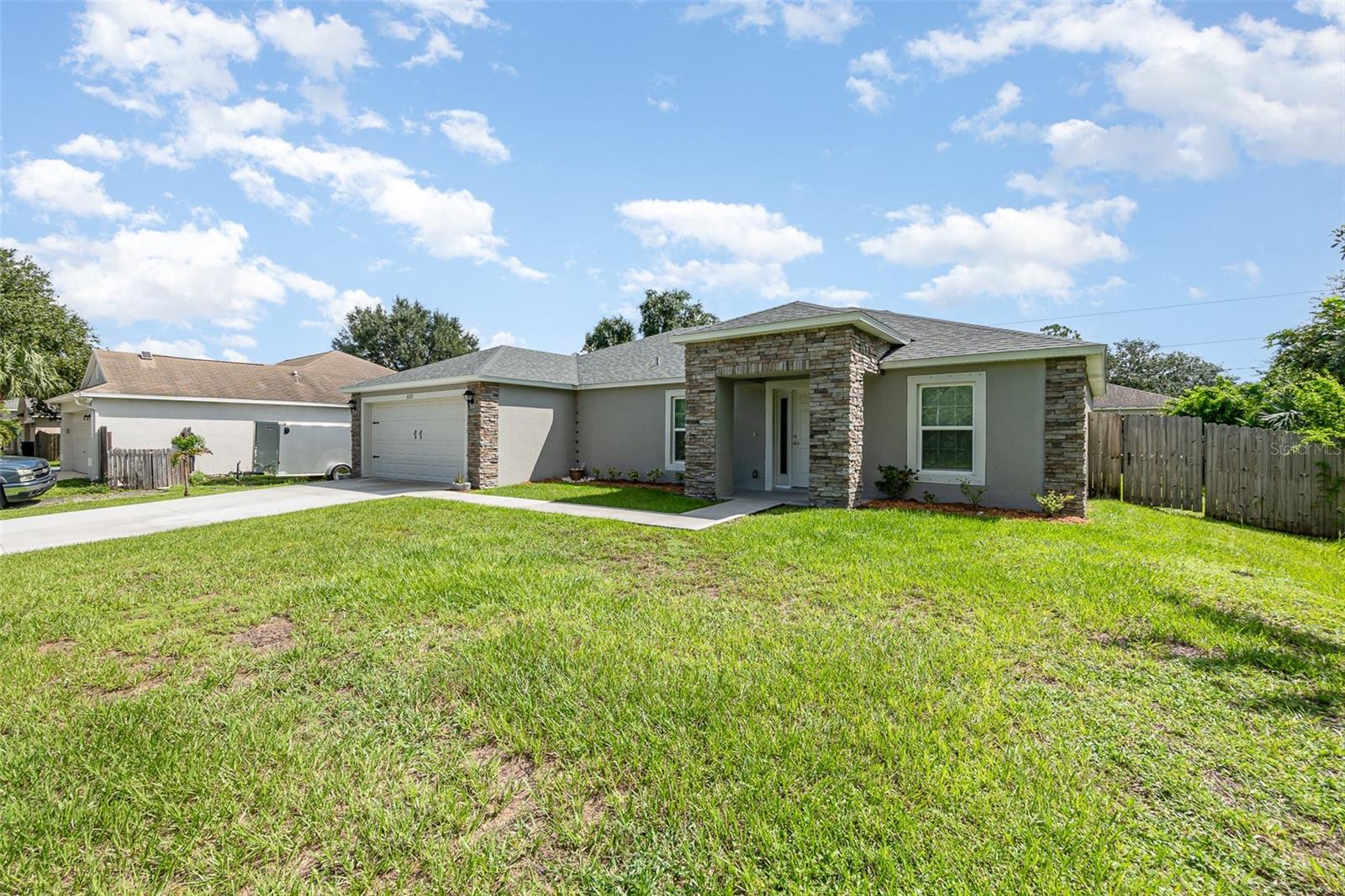 This is a lovely Single family home offers three-bedroom, two-bath home with a study,! Study is being used as a bedroom now, but no closet. The home was built in 2022! Family being relocated with the military service. The home is great for pets, it has a large, fenced backyard, custom hurricane shutters, and stainless-steel appliances!