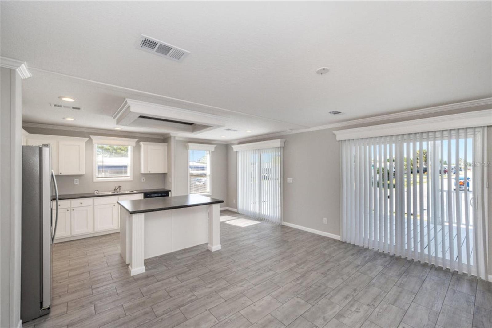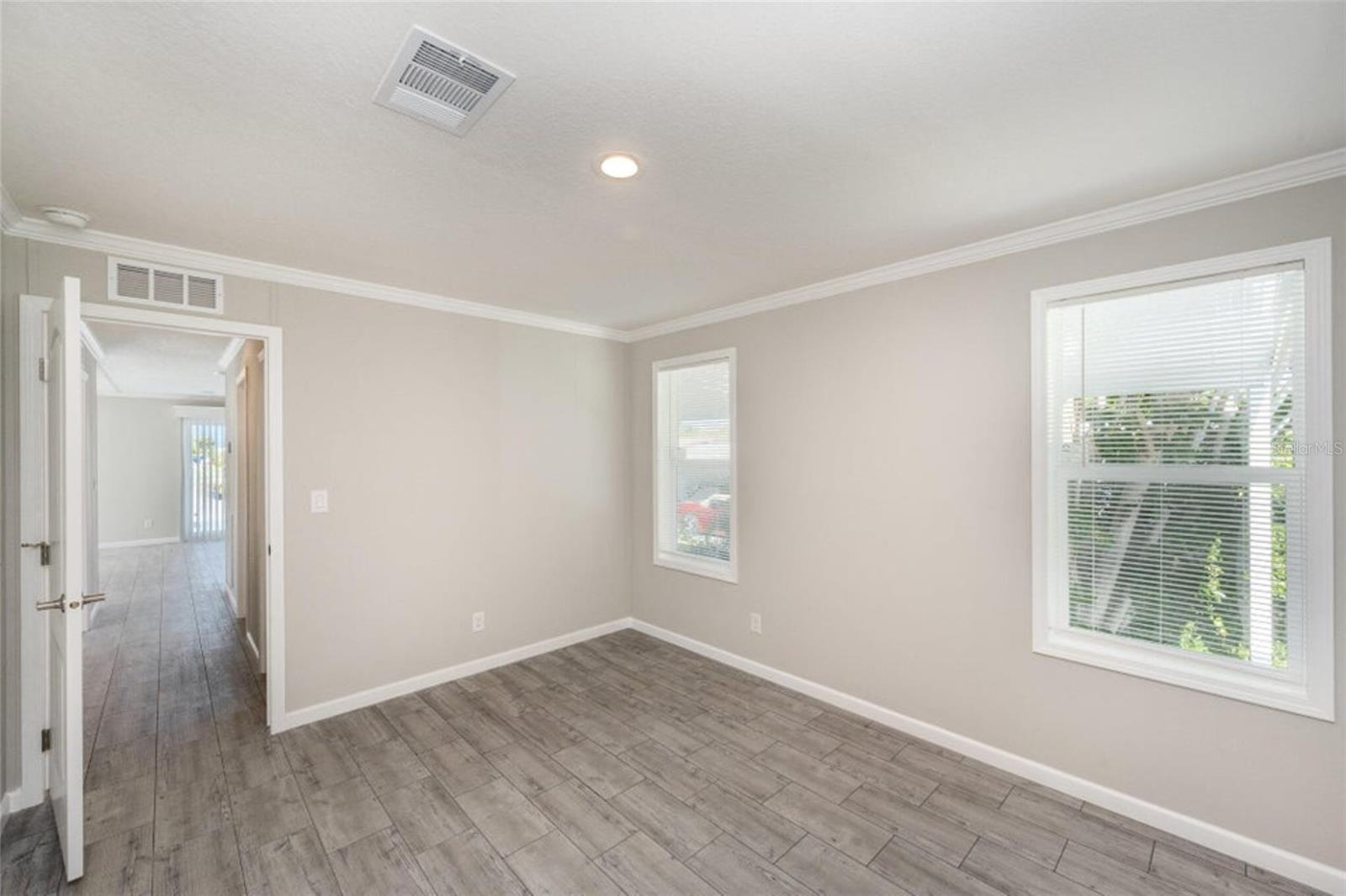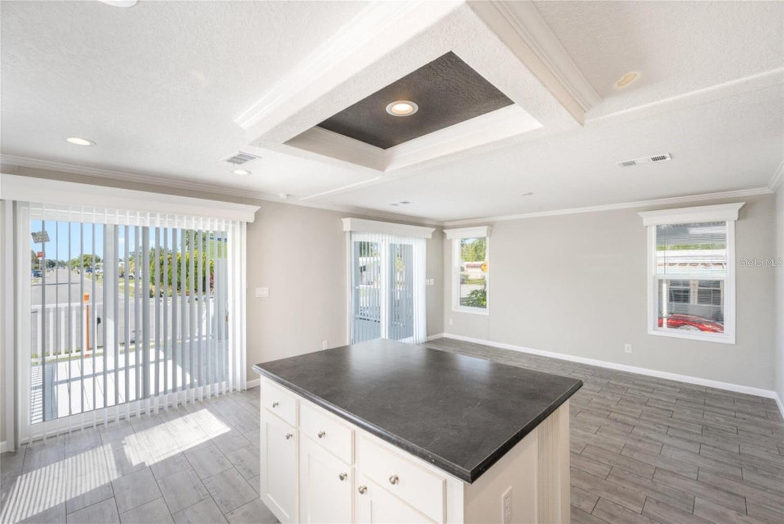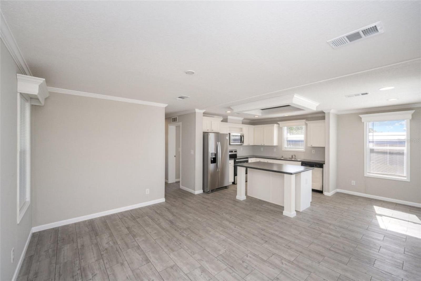 Own this beautiful newly constructed home located in Palm Bay Colony, a 55 and older community. This home has 2 bedrooms, 2 baths with spacious living room, kitchen with island, breakfast nook, laundry room with cabinets for storage and large walk in closet in primary bedroom. Beautiful details include crown moulding and luxury vinyl planked flooring throughout, recessed lighting and valances. Beautiful porch spans the width of the home where you can enjoy the outdoors. Community offers amenities and activities. Located close to major roadways, shopping, restaurants and medical facilities. HOA is voluntary. Member initial fee is $1500 and then $45 a month. Amenities include use of clubhouse with kitchen and pool table, in-ground pool, tennis courts and shuffle board.