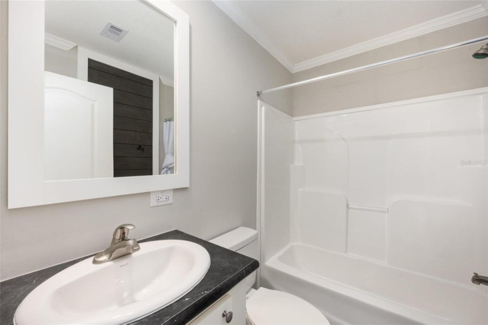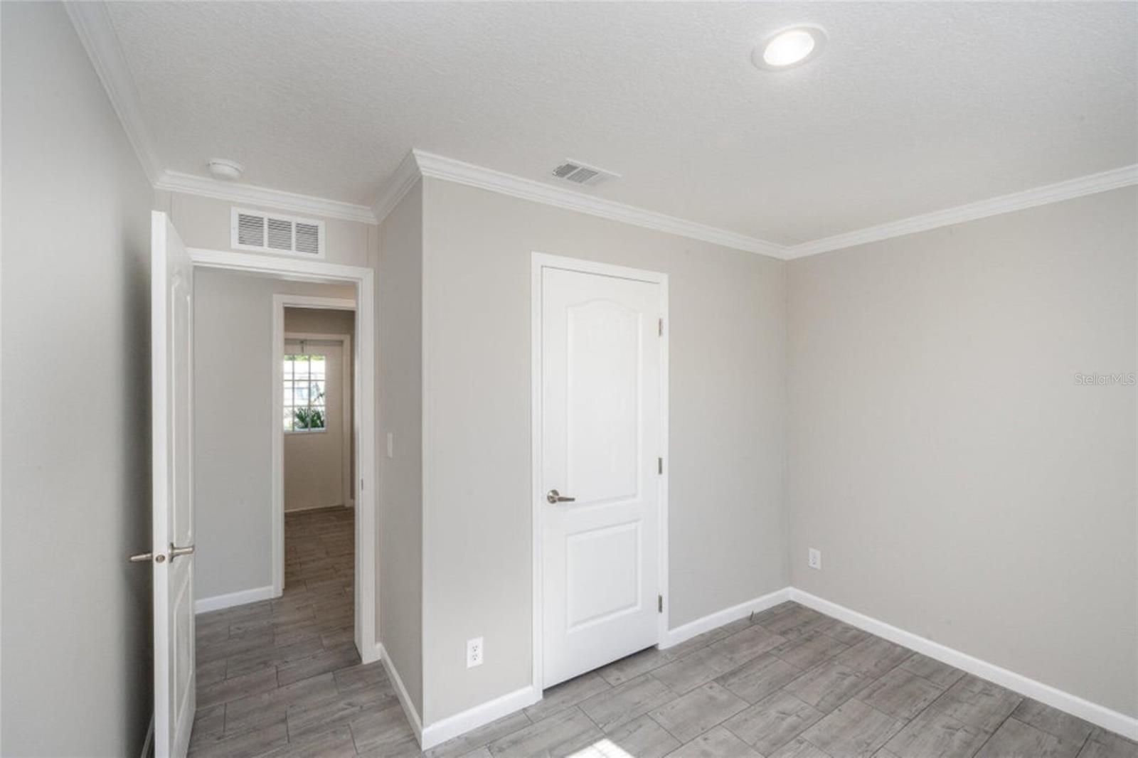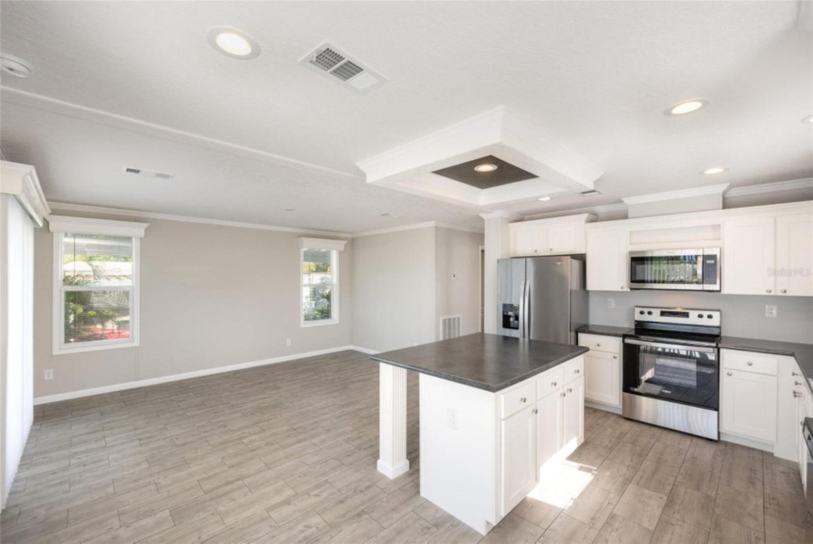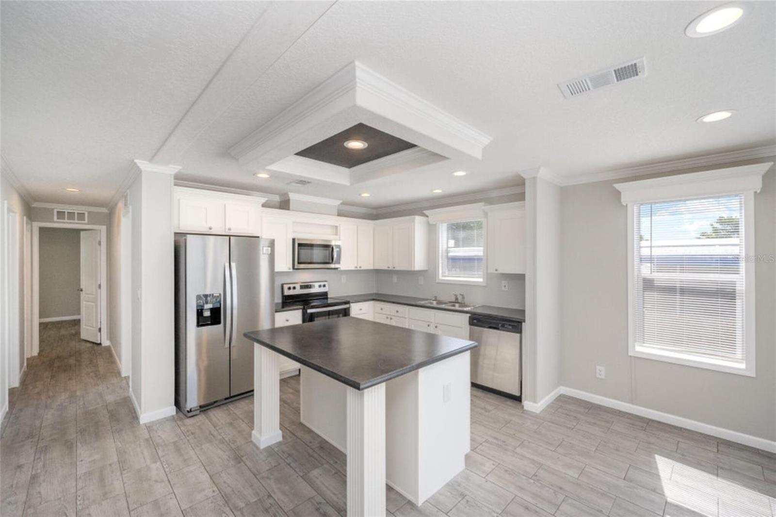 Own this beautiful newly constructed home located in Palm Bay Colony, a 55 and older community. This home has 2 bedrooms, 2 baths with spacious living room, kitchen with island, breakfast nook, laundry room with cabinets for storage and large walk in closet in primary bedroom. Beautiful details include crown moulding and luxury vinyl planked flooring throughout, recessed lighting and valances. Beautiful porch spans the width of the home where you can enjoy the outdoors. Community offers amenities and activities. Located close to major roadways, shopping, restaurants and medical facilities. HOA is voluntary. Member initial fee is $1500 and then $45 a month. Amenities include use of clubhouse with kitchen and pool table, in-ground pool, tennis courts and shuffle board.