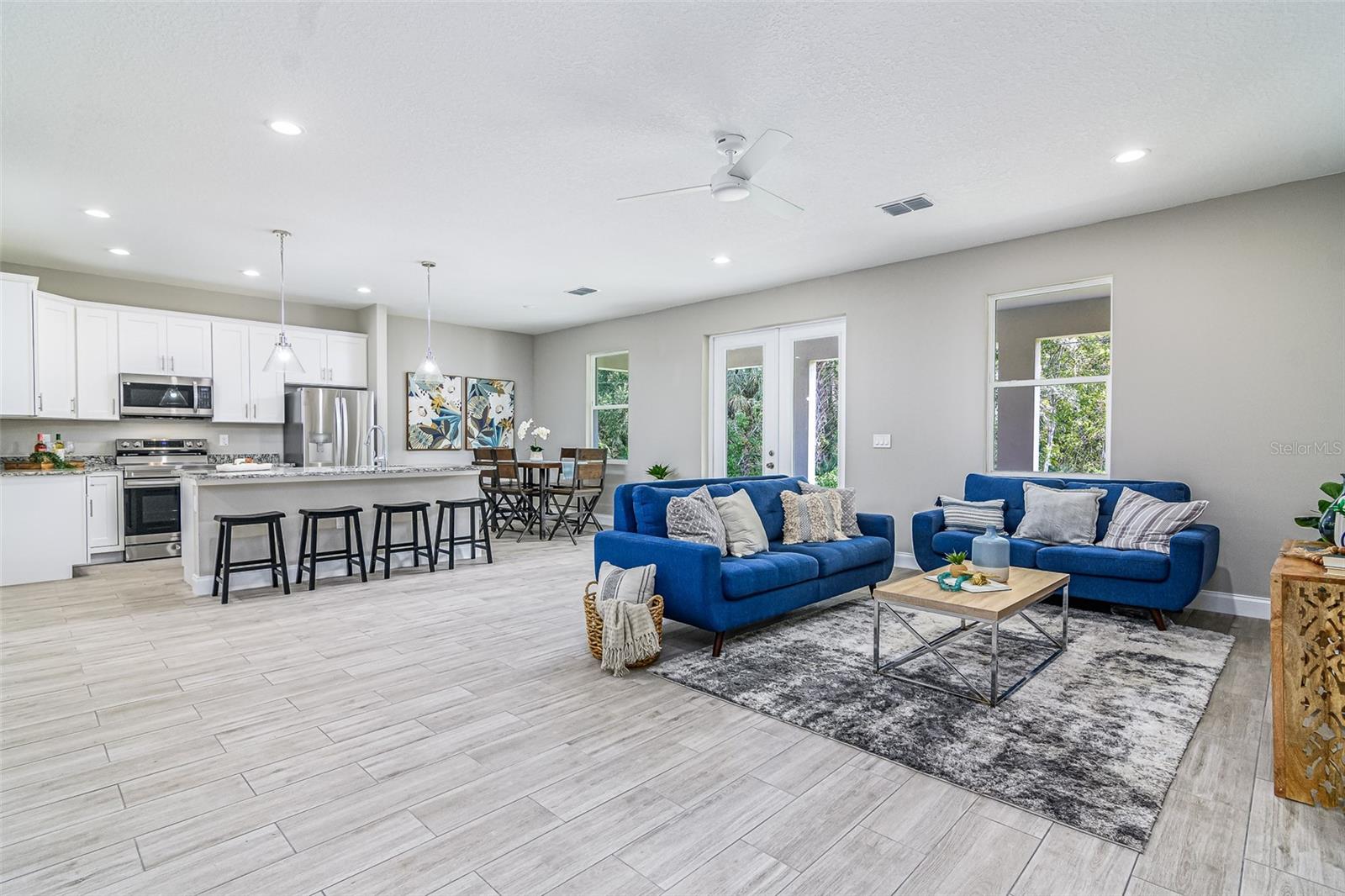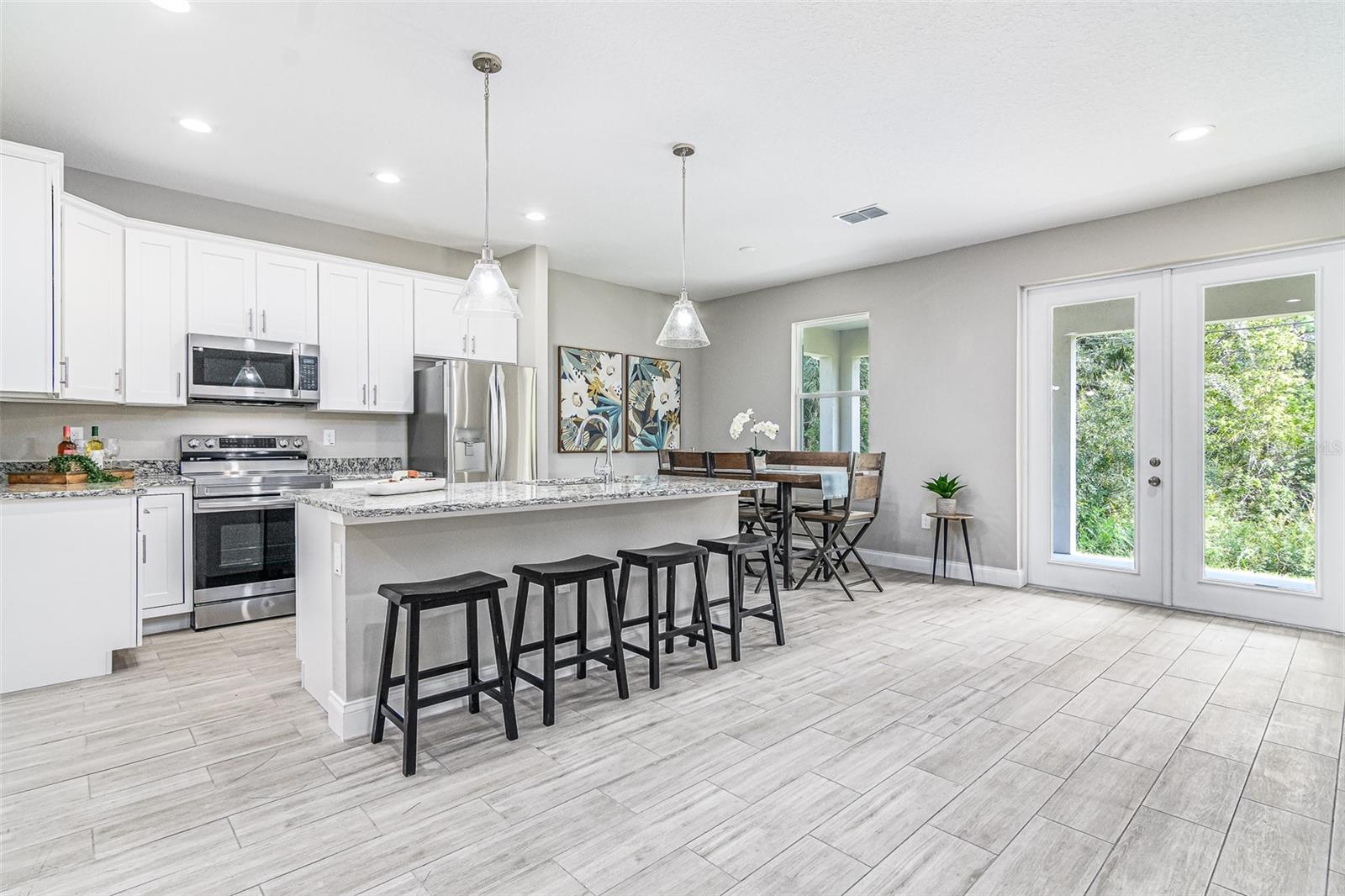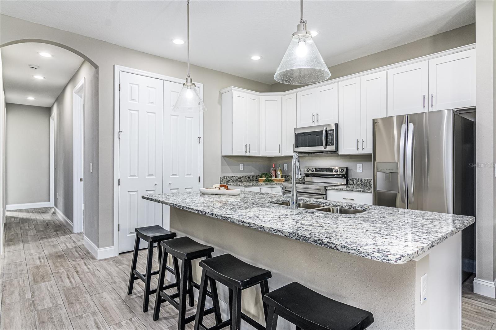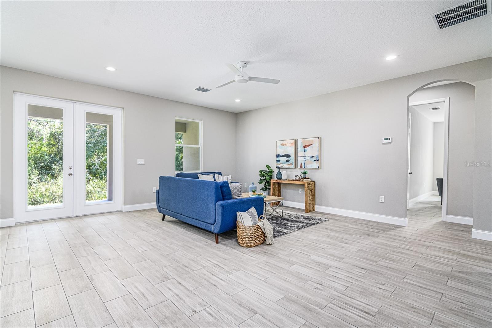 Step into a home that blends elegance, comfort, and practicality—imagine yourself living in this beautifully crafted stone-front residence conveniently located off Emerson Rd, on CITY WATER, and surrounded by new homes. Feel the luxury of this custom-designed space with 4 bedrooms, 2.5 baths, plus a versatile den. Every detail has been designed to impress, from the wood-look tile floors throughout to the 8ft doors, soaring ceilings, recessed lighting, and tall baseboards—features that create an open, airy feel and enhance the home’s high-end appeal. As you walk through the front door, experience the warmth and natural light flooding the expansive great room and casual dining area, making it the perfect setting for both relaxed evenings and lively gatherings. The chef’s kitchen is designed to inspire, featuring white cabinetry, granite counters, a large center island, stainless steel appliances, and a double-door pantry for ample storage. Picture yourself preparing meals effortlessly, with the large center island serving as the heart of the kitchen—a place where everyone naturally gathers. The seamless flow into the great room ensures that every interaction feels connected and inviting. Retreat to the owner’s suite, a private oasis designed for relaxation. With granite countertops, dual sinks, a dimmable backlit mirror, a floor-to-ceiling tiled shower, and a spacious walk-in closet, this space is crafted for both comfort and sophistication. The adjacent den or office provides a quiet retreat for work or leisure, perfectly positioned for convenience. The guest bath mirrors the home’s high-end style, featuring double sinks and modern finishes to ensure every guest feels pampered. Beyond the stunning interiors, step outside through French doors and envision your life unfolding on the oversized trussed porch—ideal for morning coffee, evening gatherings, or simply soaking in the Florida sunshine. The spacious backyard offers endless possibilities, and with the septic system thoughtfully placed, there's room for a future pool. The stone-front design enhances curb appeal, while the meticulously landscaped front yard and large driveway provide a warm welcome home. This property offers the best of both worlds—tranquility and convenience. Nestled in a peaceful part of Palm Bay yet just minutes from top-rated schools, shopping centers, dining options, and major roadways, you'll have everything you need within easy reach. As Palm Bay continues to thrive, investing in a home like this means securing your future in one of Brevard County’s most desirable areas. Designed with efficiency in mind, this home features modern appliances and updated systems, helping you enjoy lower utility costs while living comfortably. Plus, being on city water means reliable, high-quality water without the maintenance concerns that come with well systems—giving you peace of mind for years to come. Now is the time to make this home yours! Don’t miss this incredible opportunity—schedule your private showing today and experience firsthand what makes this Palm Bay gem truly special!