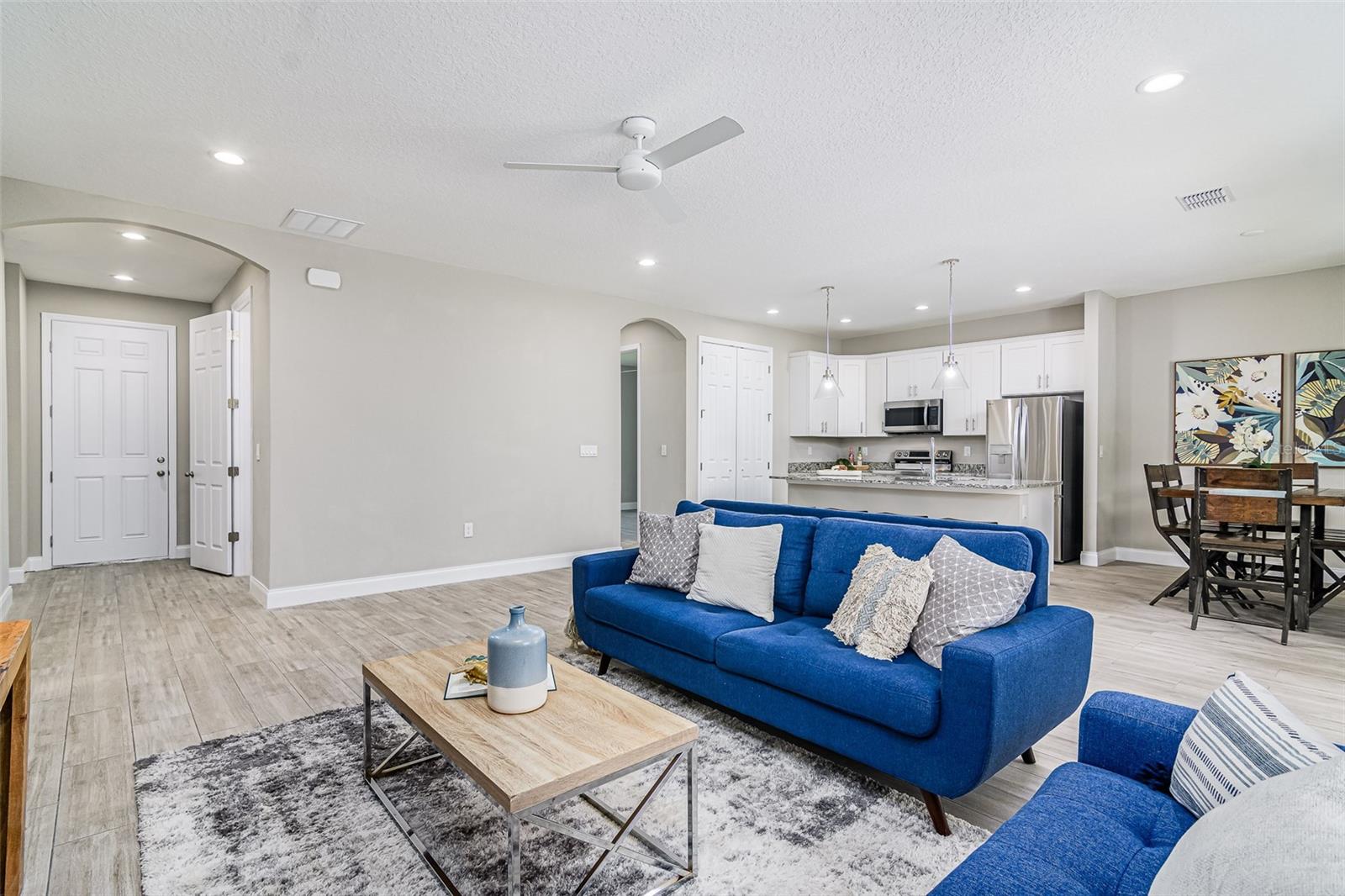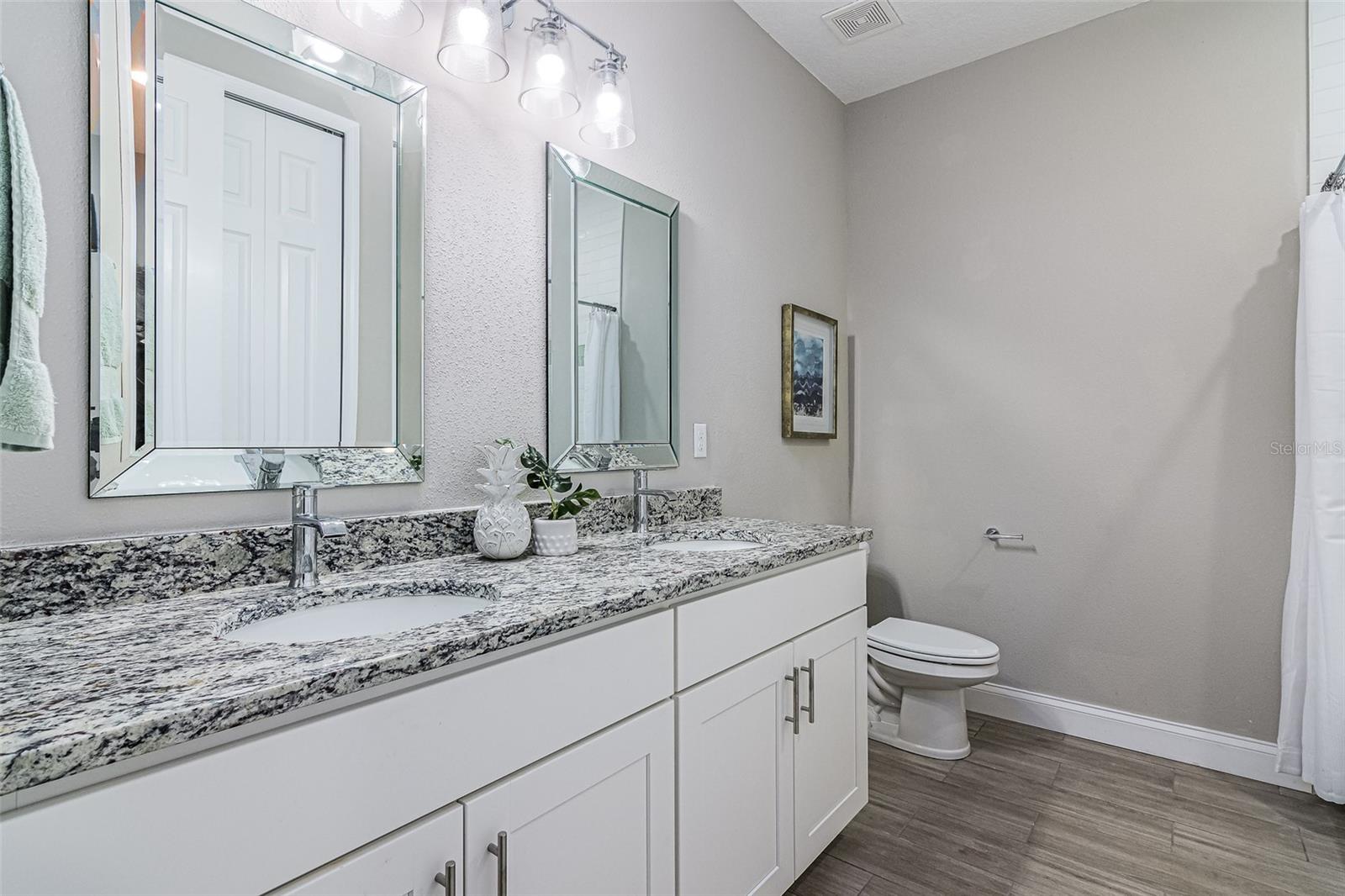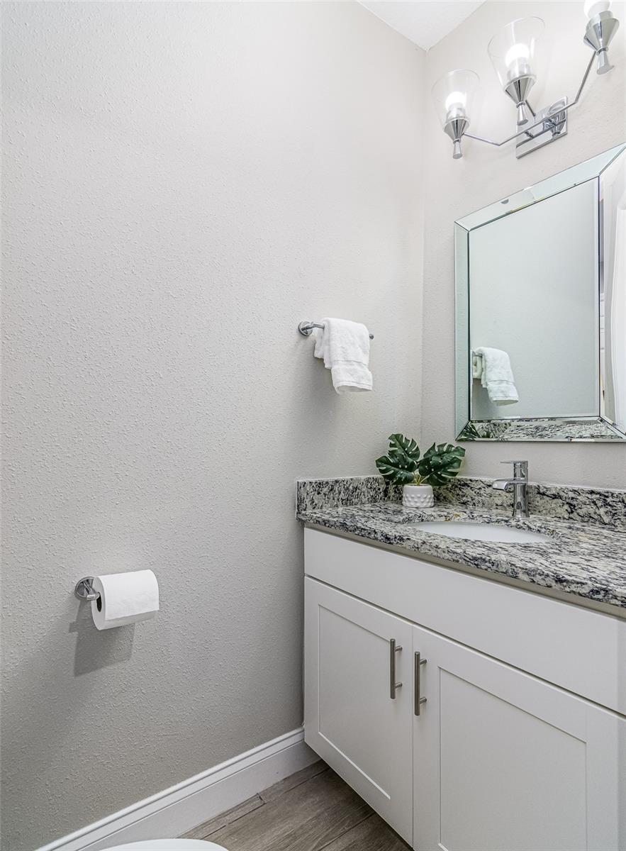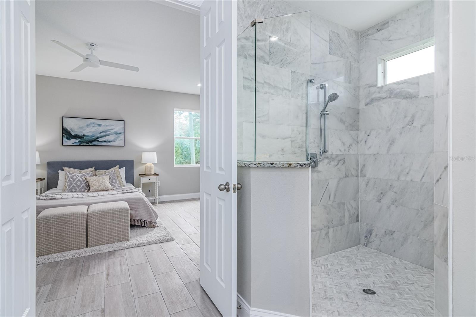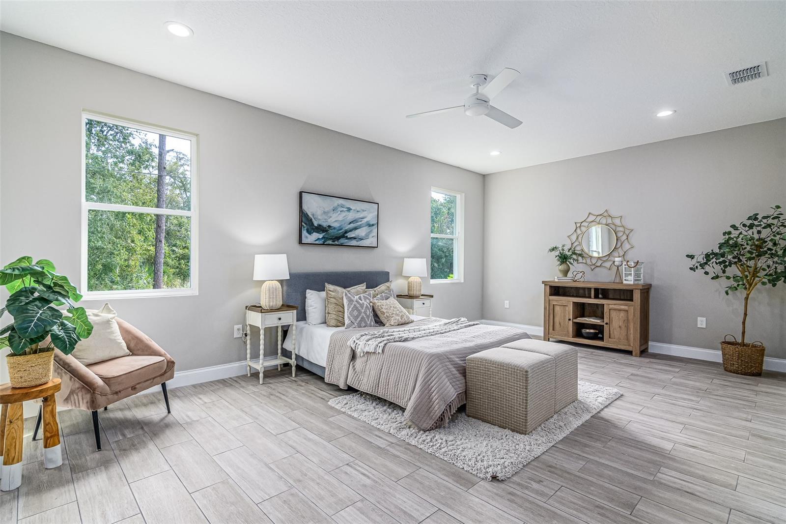 Step into a home that blends elegance, comfort, and practicality—imagine yourself living in this beautifully crafted stone-front residence conveniently located off Emerson Rd, on CITY WATER, and surrounded by new homes. Feel the luxury of this custom-designed space with 4 bedrooms, 2.5 baths, plus a versatile den. Every detail has been designed to impress, from the wood-look tile floors throughout to the 8ft doors, soaring ceilings, recessed lighting, and tall baseboards—features that create an open, airy feel and enhance the home’s high-end appeal. As you walk through the front door, experience the warmth and natural light flooding the expansive great room and casual dining area, making it the perfect setting for both relaxed evenings and lively gatherings. The chef’s kitchen is designed to inspire, featuring white cabinetry, granite counters, a large center island, stainless steel appliances, and a double-door pantry for ample storage. Picture yourself preparing meals effortlessly, with the large center island serving as the heart of the kitchen—a place where everyone naturally gathers. The seamless flow into the great room ensures that every interaction feels connected and inviting. Retreat to the owner’s suite, a private oasis designed for relaxation. With granite countertops, dual sinks, a dimmable backlit mirror, a floor-to-ceiling tiled shower, and a spacious walk-in closet, this space is crafted for both comfort and sophistication. The adjacent den or office provides a quiet retreat for work or leisure, perfectly positioned for convenience. The guest bath mirrors the home’s high-end style, featuring double sinks and modern finishes to ensure every guest feels pampered. Beyond the stunning interiors, step outside through French doors and envision your life unfolding on the oversized trussed porch—ideal for morning coffee, evening gatherings, or simply soaking in the Florida sunshine. The spacious backyard offers endless possibilities, and with the septic system thoughtfully placed, there's room for a future pool. The stone-front design enhances curb appeal, while the meticulously landscaped front yard and large driveway provide a warm welcome home. This property offers the best of both worlds—tranquility and convenience. Nestled in a peaceful part of Palm Bay yet just minutes from top-rated schools, shopping centers, dining options, and major roadways, you'll have everything you need within easy reach. As Palm Bay continues to thrive, investing in a home like this means securing your future in one of Brevard County’s most desirable areas. Designed with efficiency in mind, this home features modern appliances and updated systems, helping you enjoy lower utility costs while living comfortably. Plus, being on city water means reliable, high-quality water without the maintenance concerns that come with well systems—giving you peace of mind for years to come. Now is the time to make this home yours! Don’t miss this incredible opportunity—schedule your private showing today and experience firsthand what makes this Palm Bay gem truly special!