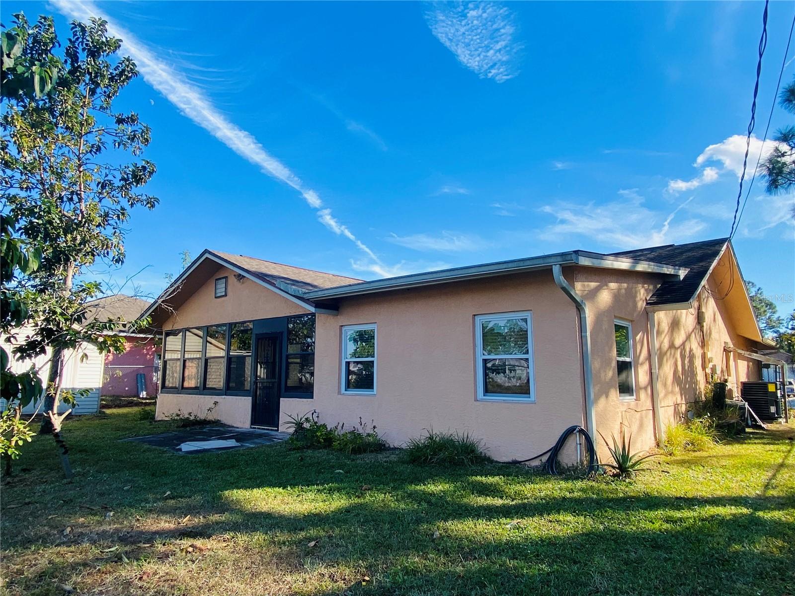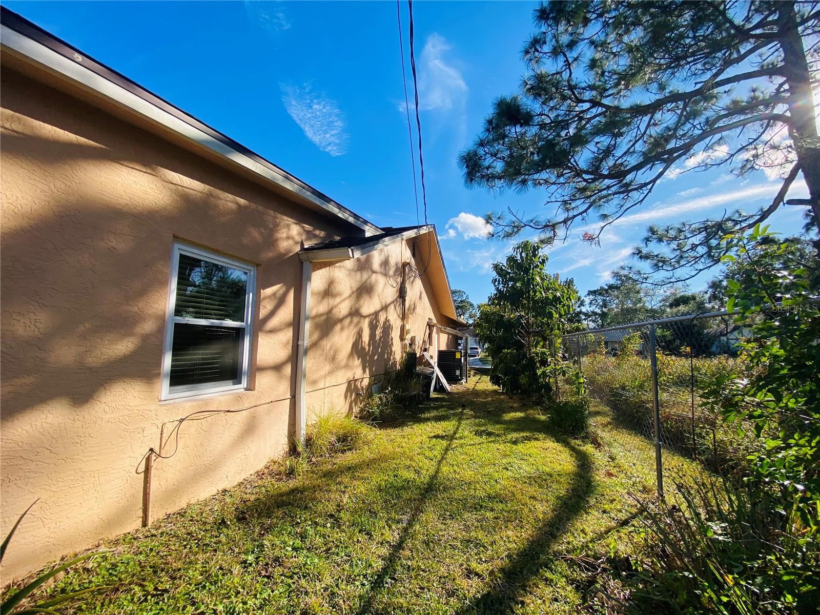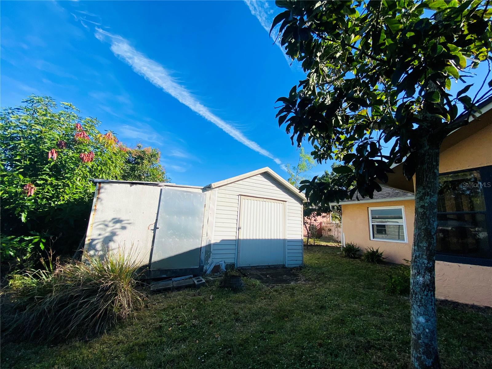 One or more photo(s) has been virtually staged. NEW ROOF WILL BE INSTALLED IN A FEW WEEKS! Wonderful opportunity to own a spacious home in Unit 50 of Palm Bay under $300,000! This is a concrete block home, lovingly maintained by the original owner. The yard is fully fenced, front and back. When you walk inside you'll appreciate the eat in kitchen, a large dining/living room combo, vaulted ceilings and an enclosed back porch. This is a split floor plan and the master bedroom has an adjoining fourth bedroom, perfect for office use, nursery or to workout. Air conditioner (2024), water heater (2023), and impact windows (2023). The backyard has a large shed and a canal for added privacy. There is a six zone sprinkler system.