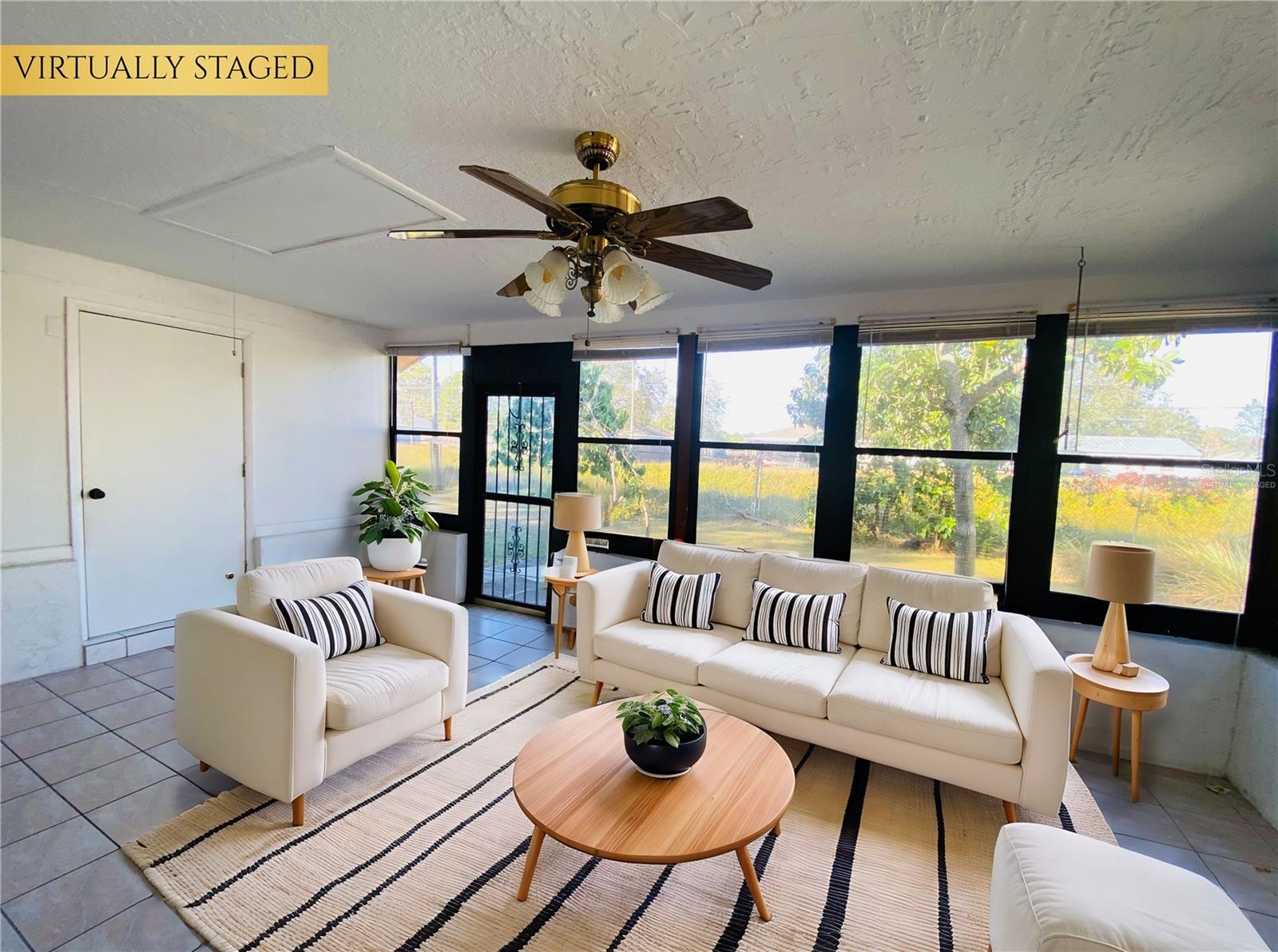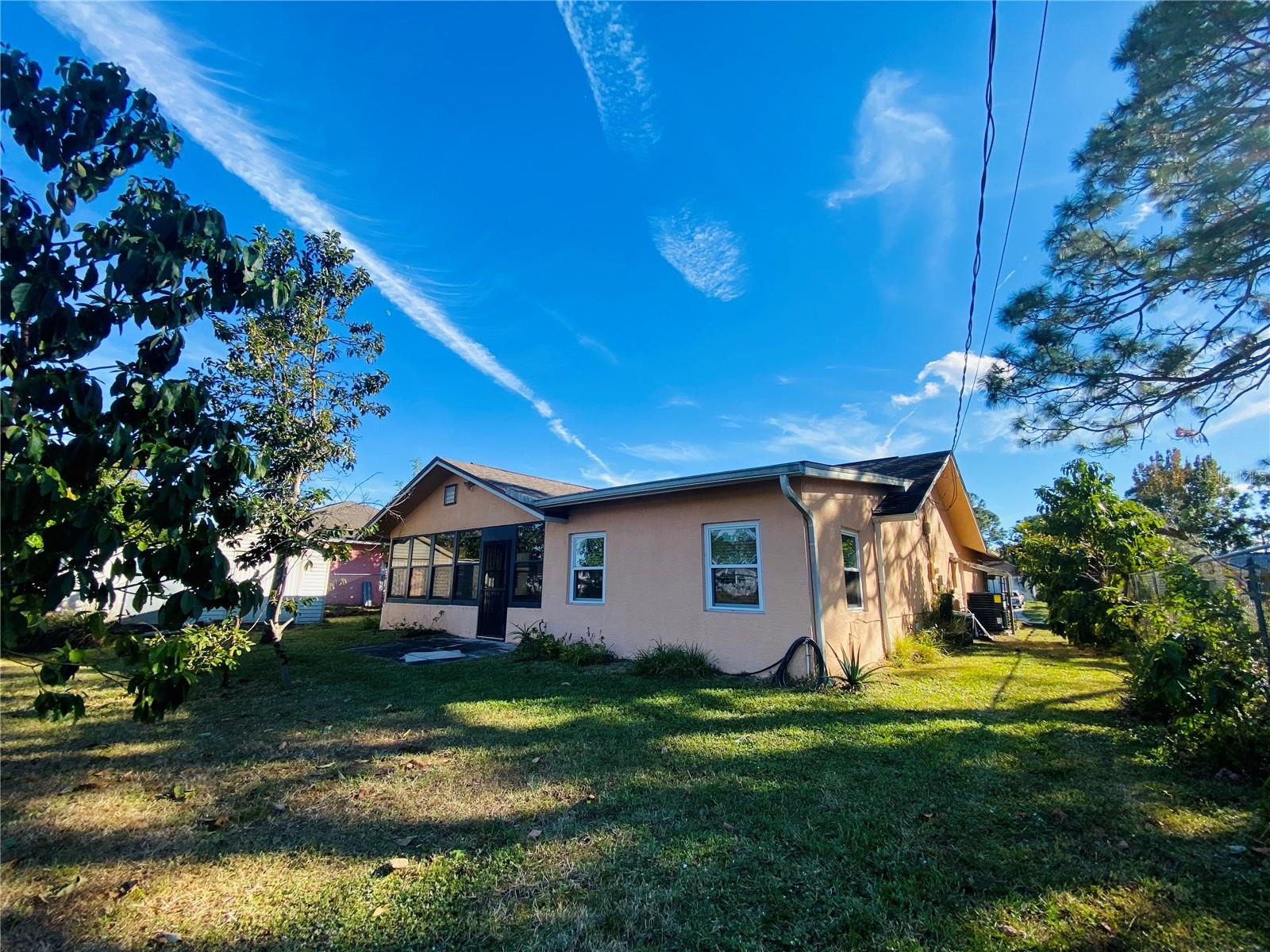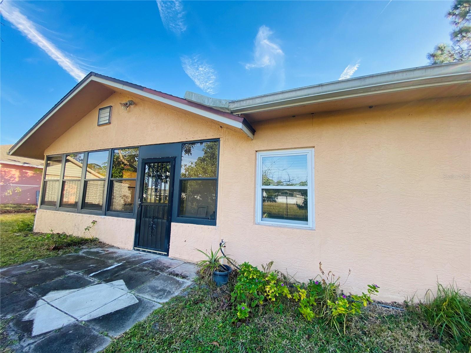 One or more photo(s) has been virtually staged. NEW ROOF WILL BE INSTALLED IN A FEW WEEKS! Wonderful opportunity to own a spacious home in Unit 50 of Palm Bay under $300,000! This is a concrete block home, lovingly maintained by the original owner. The yard is fully fenced, front and back. When you walk inside you'll appreciate the eat in kitchen, a large dining/living room combo, vaulted ceilings and an enclosed back porch. This is a split floor plan and the master bedroom has an adjoining fourth bedroom, perfect for office use, nursery or to workout. Air conditioner (2024), water heater (2023), and impact windows (2023). The backyard has a large shed and a canal for added privacy. There is a six zone sprinkler system.