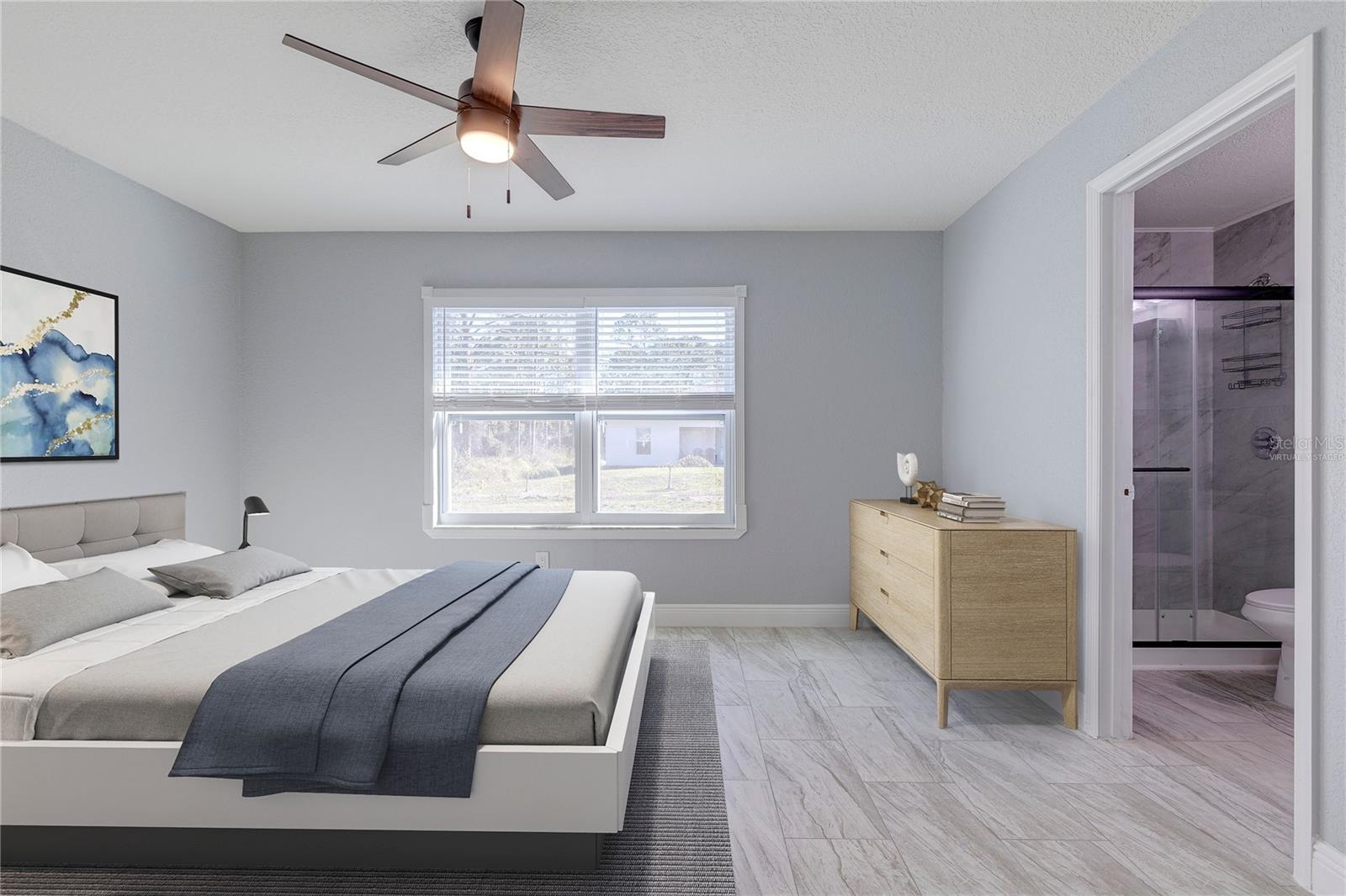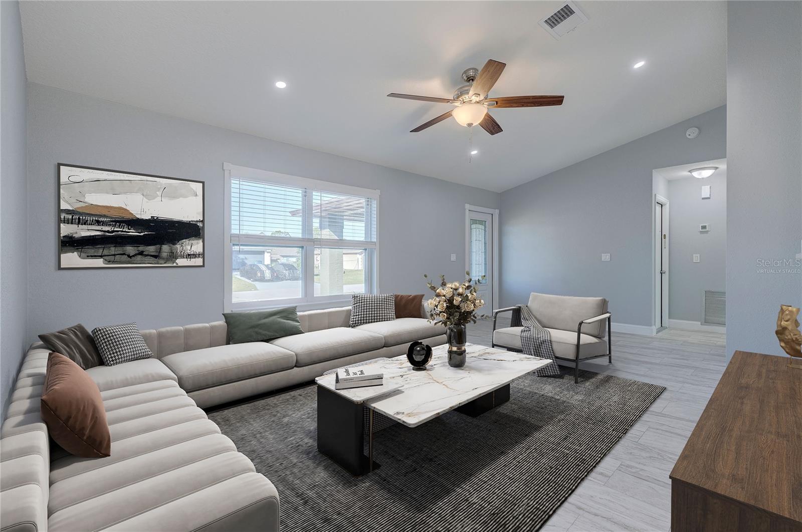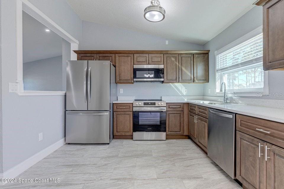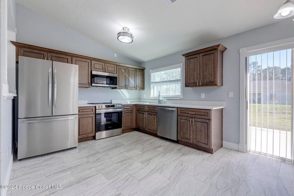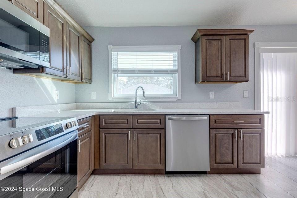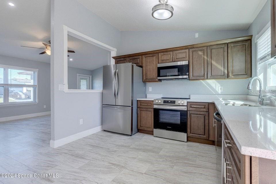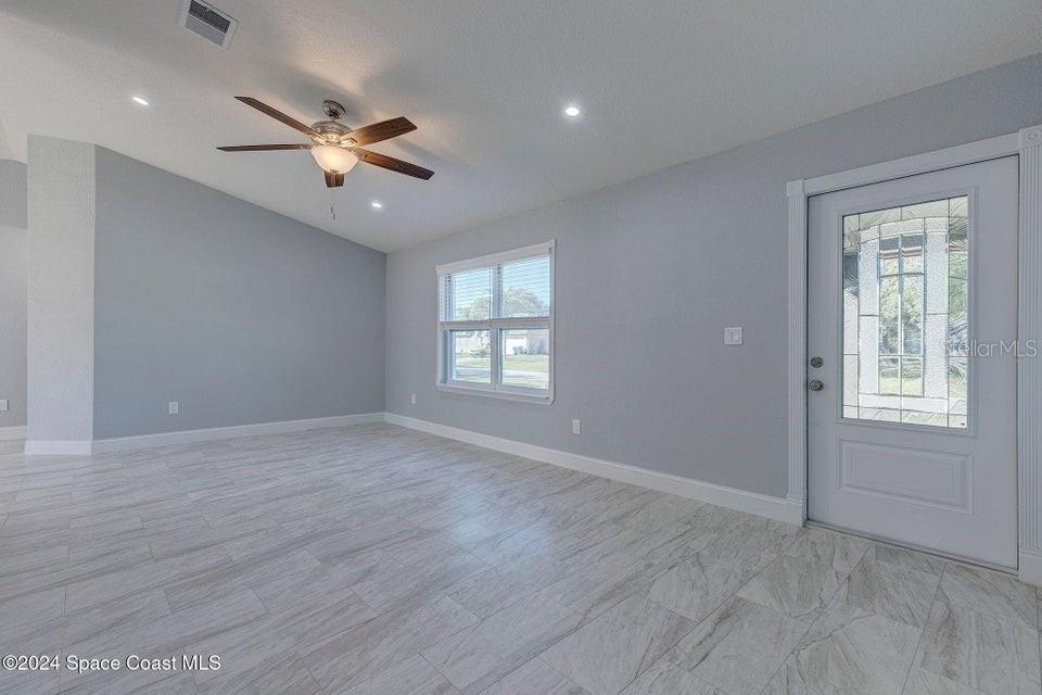 Some Photos have been virtually staged. NEW PRICE on this 'like-new' home, completely renovated and ready for you! This stunning 3-bedroom, 2-bath home boasts a host of brand-new features, starting from the top down: Exterior Upgrades: Brand-new roof, New gutters and Freshly painted Inside and out ,Hurricane-rated windows. Systems & Efficiency: New 4-ton Bryant A/C unit with updated ductwork, New hot water heater, New water softener. Interior Enhancements: Fresh knockdown ceiling texture, new ceramic tile flooring throughout, Brand-new stainless steel appliances, new 36'' mocha cabinets paired with quartz countertops, updated vanities and modern lighting fixtures, Faux wood blinds and new ceiling fans. Additional Features: Spacious backyard on nearly a quarter-acre lot and No HOA and No CDD! New Hurricane shutters convey with the property. Whether you're looking for modern comforts or a low-maintenance lifestyle, this move-in-ready home is for you! Located near Heritage Parkway, for ease of access to Hwy 95.
