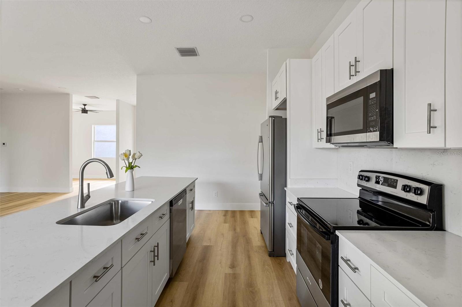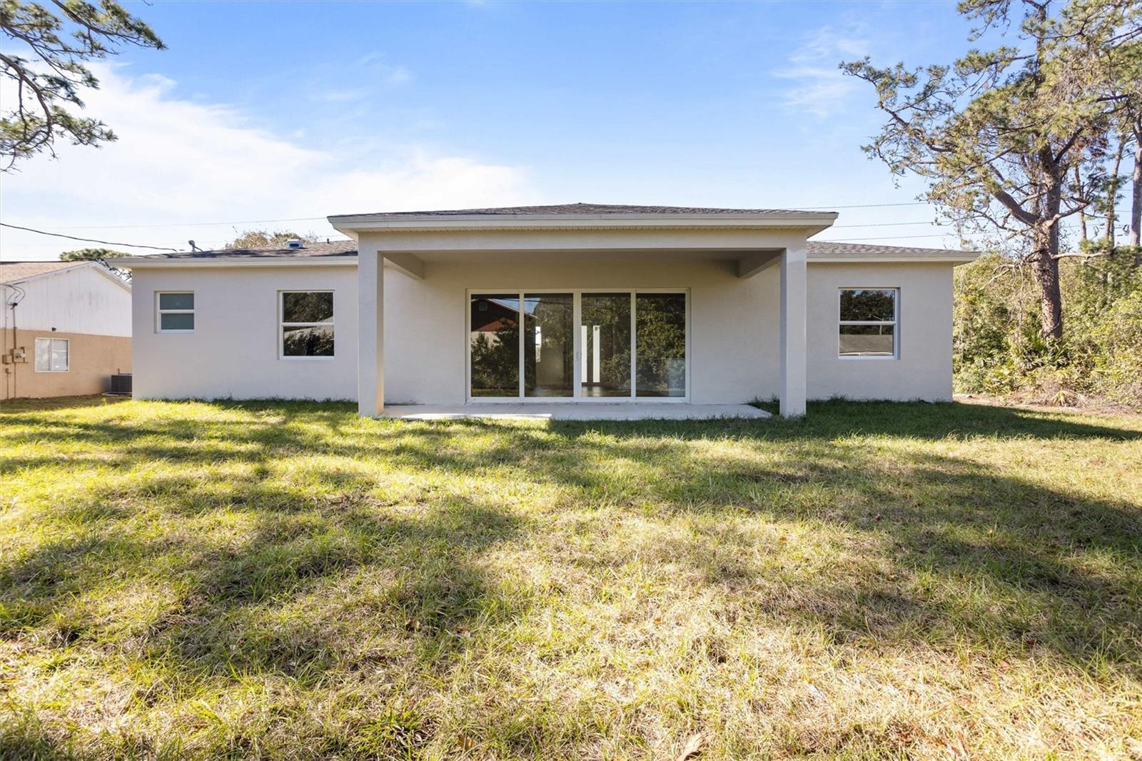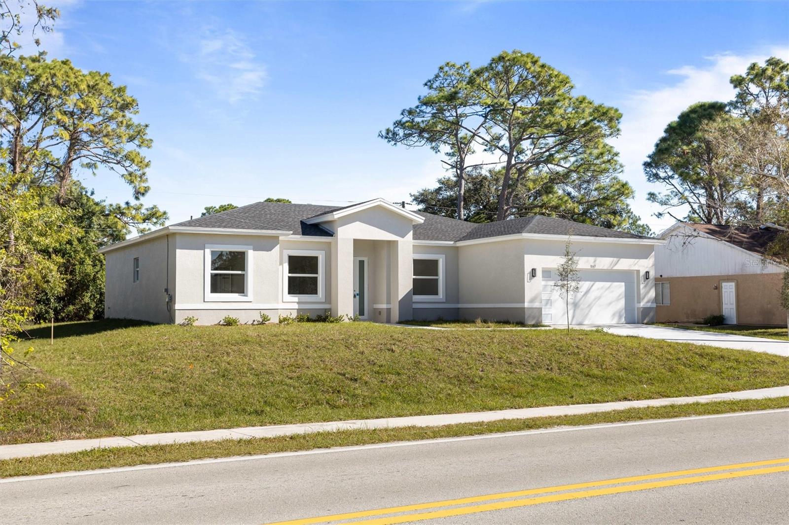 One or more photo(s) has been virtually staged. Welcome to modern living in sunny Palm Bay! This BRAND NEW one-story home boasts sleek lines and contemporary design.Step into the inviting foyer that leads you to the great room, perfect for entertaining or relaxing with family. The ample kitchen has generous counter space, chic cabinetry, electric stove, microwave, refrigerator and dishwasher.With 4 bedrooms and 2.5 bathrooms, there's plenty of space for everyone to unwind,plus the additional benefit of an office/den. The primary suite is complete with an ensuite bathroom featuring double sinks and a walk-in shower. Plus, enjoy the convenience of a walk-in closet.Additional highlights include a 2-car garage, a covered back porch for al fresco dining or lounging, laundry room and linen closet. Schedule your showing today!