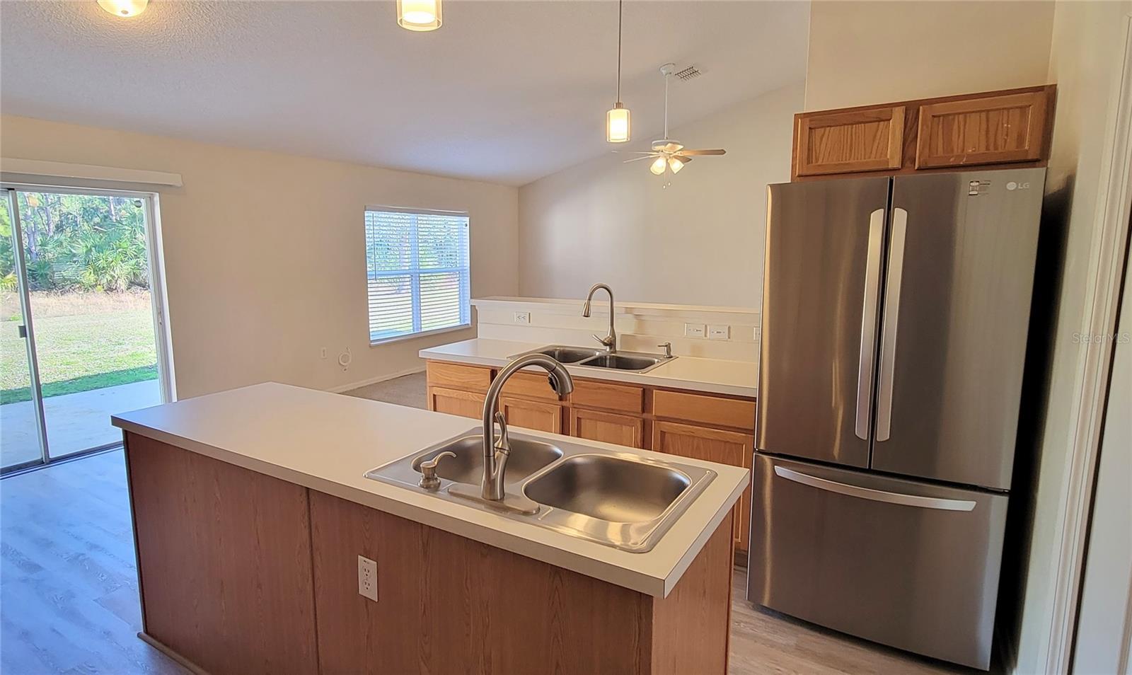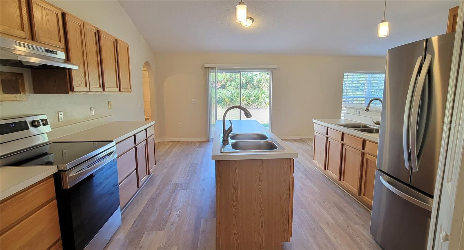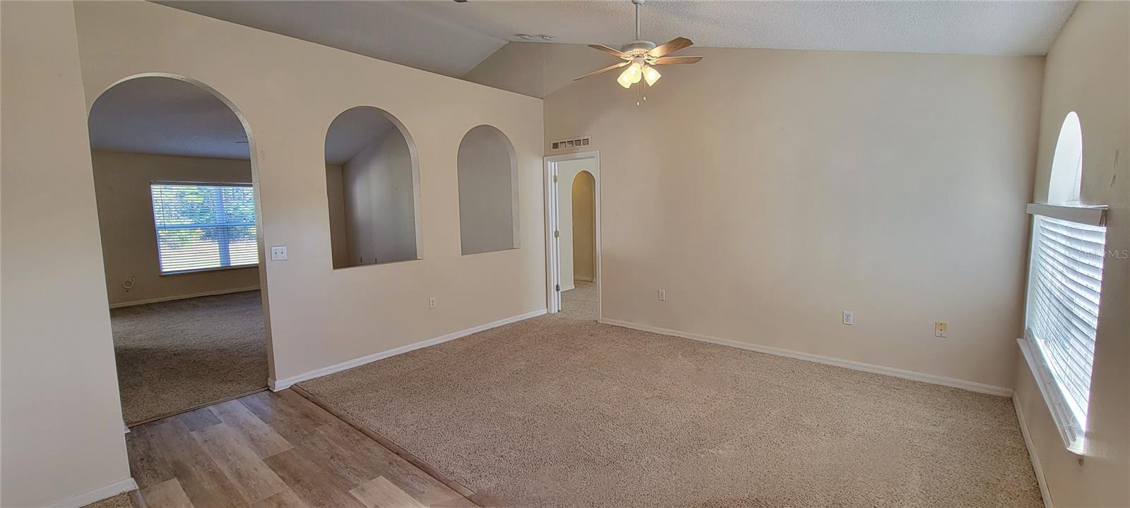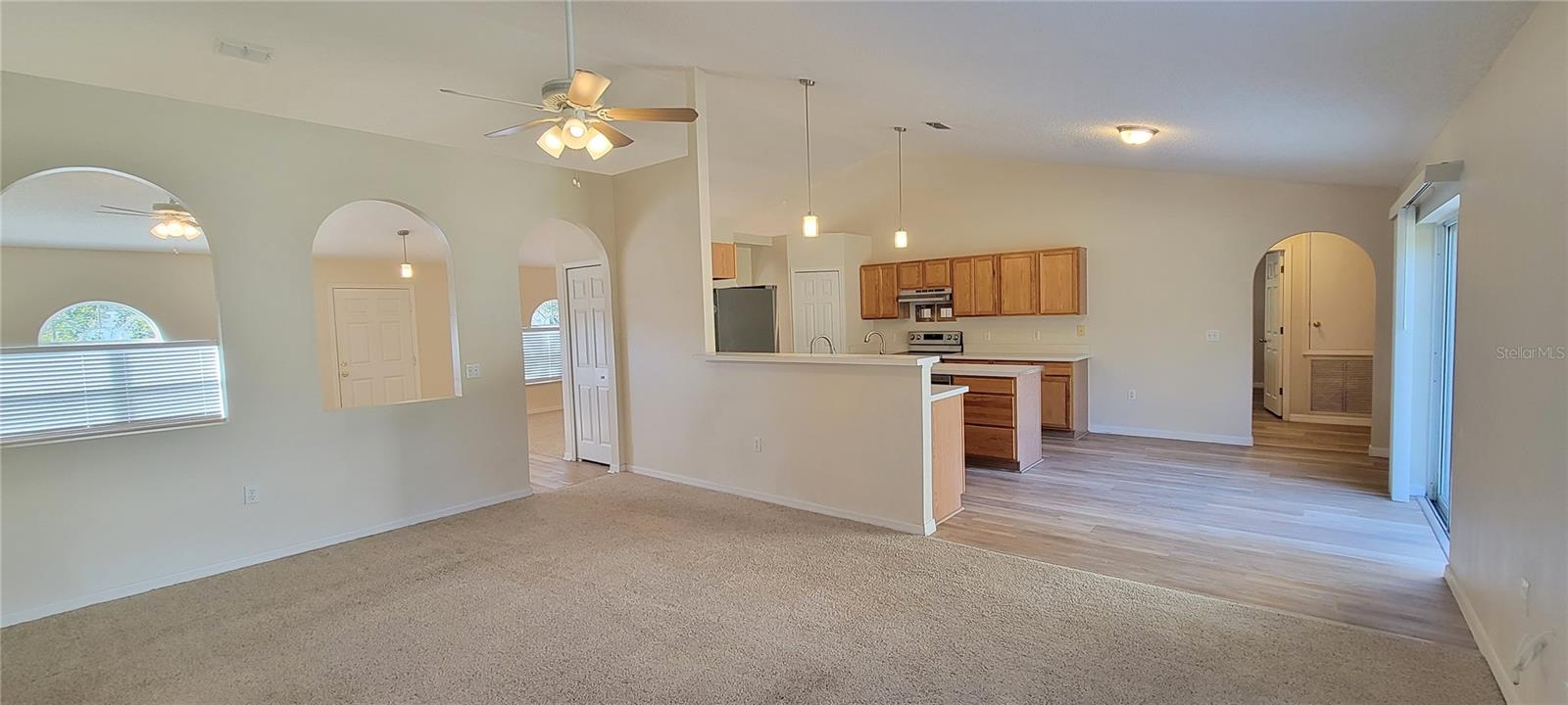 Amazing house with TONS of space. This 3 bed, 2 bath home has a huge family room and kitchen, and includes 2 more large rooms that can be used as formal dining and formal living room or as your family needs. Built in 2006 with many recent upgrades, the home has an open living concept with tall, vaulted ceilings and ceiling fans in almost every room. The two large, open bonus rooms are at the front, separated by partial wall with Architectual arched openings from the expansive family room and huge kitchen. The kitchen boosts 2 full sinks, one in the island by the dishwasher and one on the side by the breakfast bar facing the family room. plenty of cabinets and lots of counter space to work with, great sized pantry closets and eat-in dinette area with slider door to the back patio. The Primary bedroom is 14x16 with vaulted ceiling and ceiling fan. Decorative arched opening into the bath suite with walk in closets on either side. The primary bath has a separate garden tub from the Walkin shower stall, vanity with make-up on cultured marble counter, and separate toilet room. On the other side of the home are bedrooms 2 and 3. The laundry room is next to the 2-car garage. The back patio is tucked in the corner of the home and faces back to a nice natural undeveloped land buffered also with drainage ditch. East side of the home has a neighbor home. West side is still trees and very wooded also never developed. Nice to be close to a little nature. The home has had many important system upgrades and ready to move in and wait your final touches if you choose. In the past 3 years, installed NEW 6 inch gutters, New well pump system, a couple new fixtures, new water heater, New vinyl wood plank design flooring throughout kitchen, baths, hall, and side bedrooms, new kitchen faucets and primary bath sink, carpet is a few years old but very rarely used. Septic rarely used and cleaned, new window blinds and screens in last year, toilets replaced in 2022, Roof replaced in 2022, new appliances in 2022 and AC installed in 2009 but in great working condition. The home also has hurricane plugs to easily board up the house to help keep safe. All information is deemed reliable but not guaranteed.