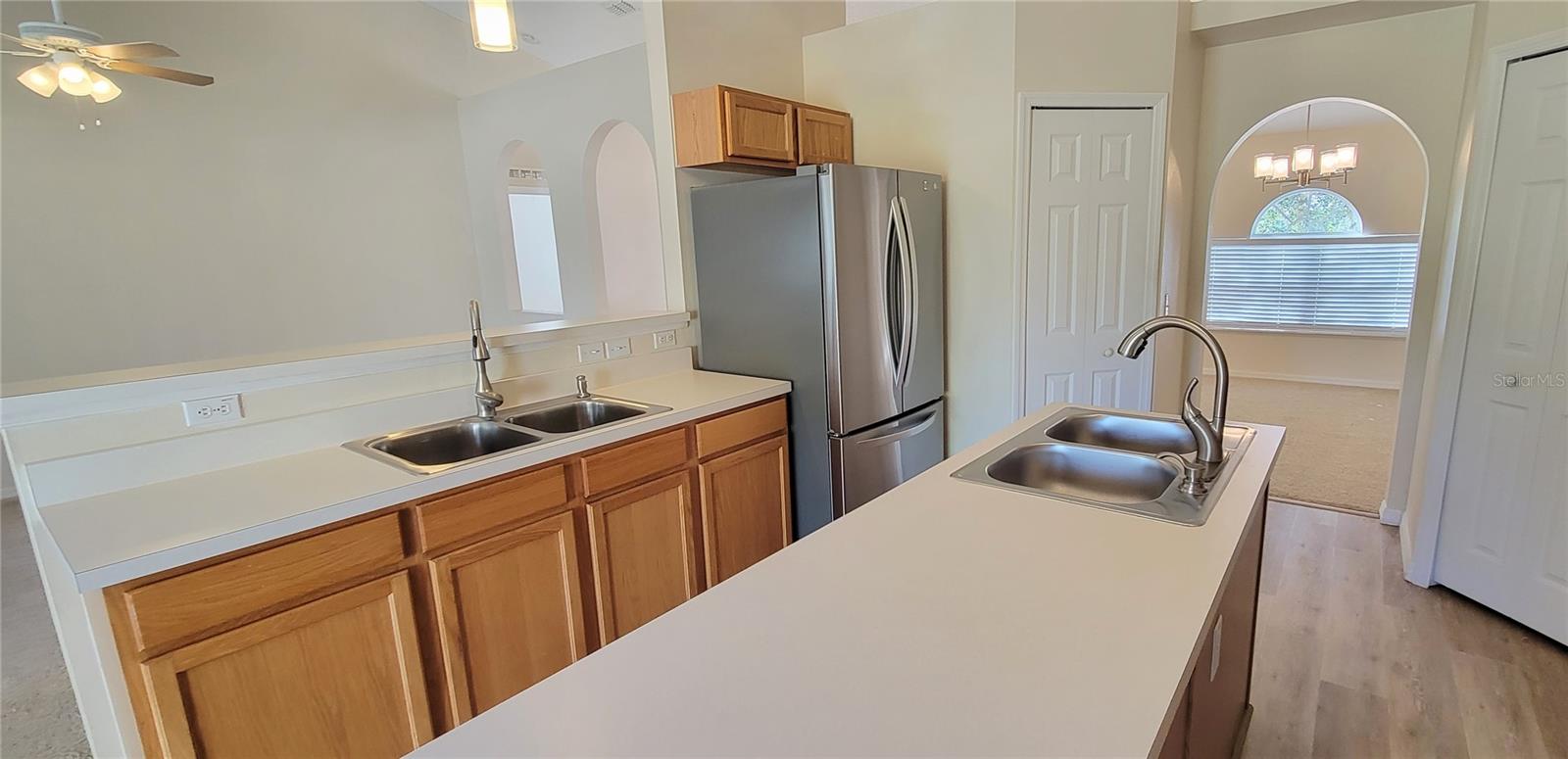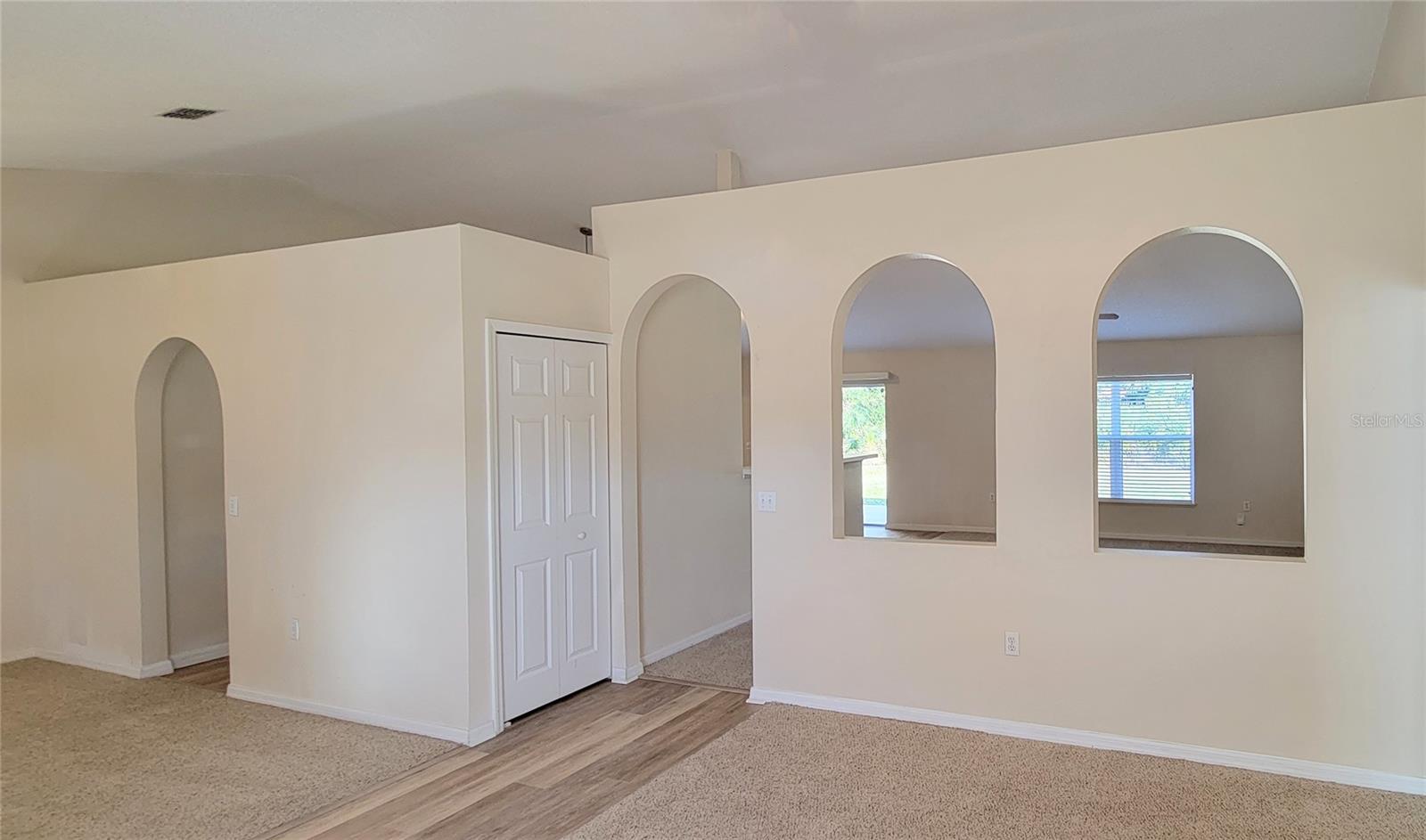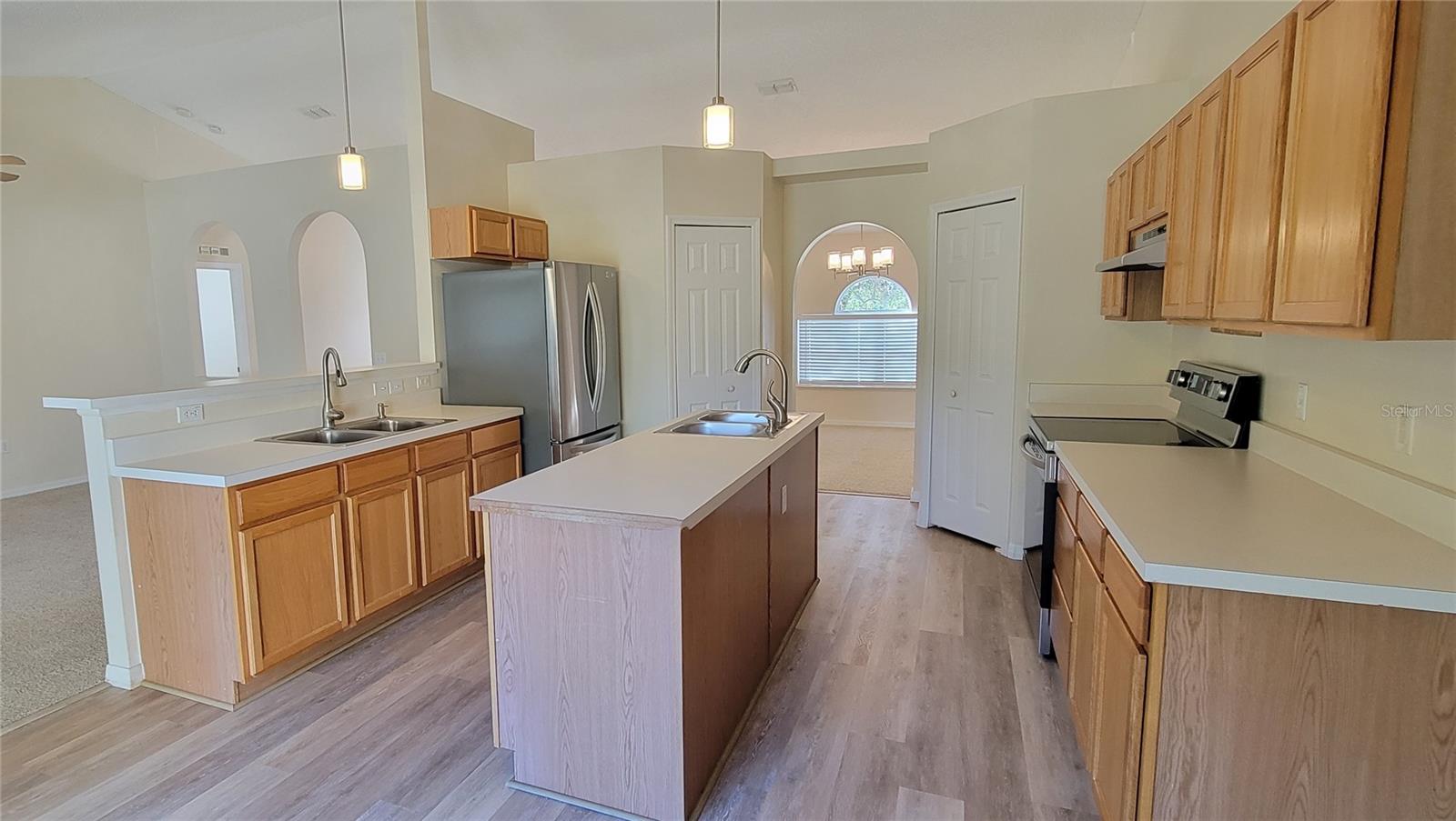 Amazing house with TONS of space. This 3 bed, 2 bath home has a huge family room and kitchen, and includes 2 more large rooms that can be used as formal dining and formal living room or as your family needs. Built in 2006 with many recent upgrades, the home has an open living concept with tall, vaulted ceilings and ceiling fans in almost every room. The two large, open bonus rooms are at the front, separated by partial wall with Architectual arched openings from the expansive family room and huge kitchen. The kitchen boosts 2 full sinks, one in the island by the dishwasher and one on the side by the breakfast bar facing the family room. plenty of cabinets and lots of counter space to work with, great sized pantry closets and eat-in dinette area with slider door to the back patio. The Primary bedroom is 14x16 with vaulted ceiling and ceiling fan. Decorative arched opening into the bath suite with walk in closets on either side. The primary bath has a separate garden tub from the Walkin shower stall, vanity with make-up on cultured marble counter, and separate toilet room. On the other side of the home are bedrooms 2 and 3. The laundry room is next to the 2-car garage. The back patio is tucked in the corner of the home and faces back to a nice natural undeveloped land buffered also with drainage ditch. East side of the home has a neighbor home. West side is still trees and very wooded also never developed. Nice to be close to a little nature. The home has had many important system upgrades and ready to move in and wait your final touches if you choose. In the past 3 years, installed NEW 6 inch gutters, New well pump system, a couple new fixtures, new water heater, New vinyl wood plank design flooring throughout kitchen, baths, hall, and side bedrooms, new kitchen faucets and primary bath sink, carpet is a few years old but very rarely used. Septic rarely used and cleaned, new window blinds and screens in last year, toilets replaced in 2022, Roof replaced in 2022, new appliances in 2022 and AC installed in 2009 but in great working condition. The home also has hurricane plugs to easily board up the house to help keep safe. All information is deemed reliable but not guaranteed.