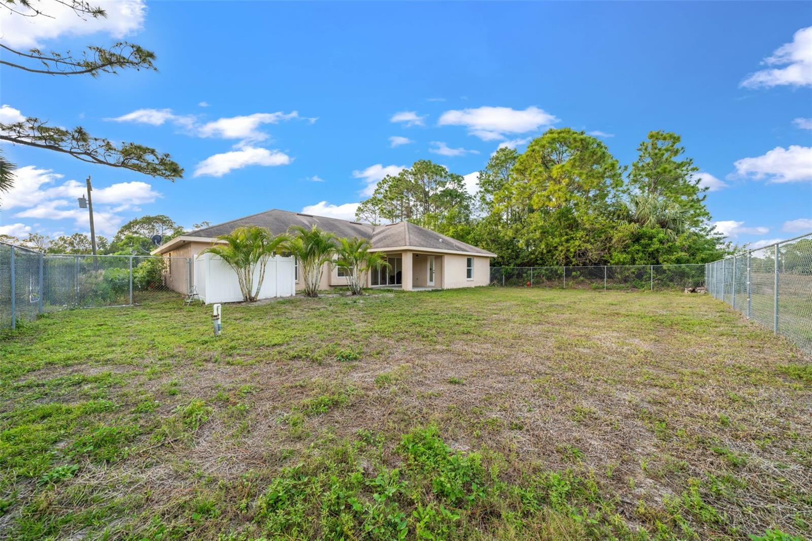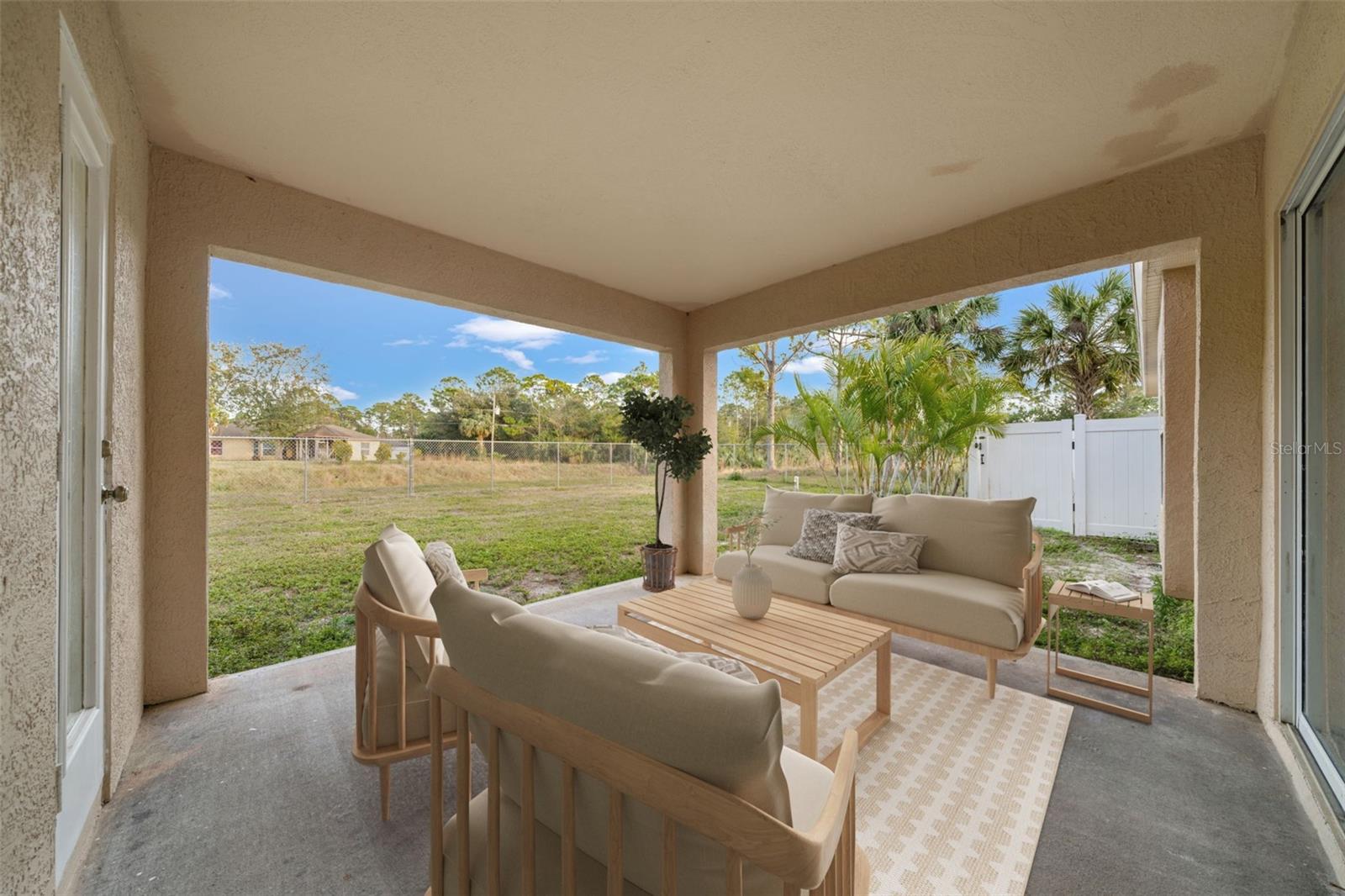 This 3-bedroom, 3-bathroom home is a more that meets the eye! Now with a brand-new roof being installed, so you're covered in more ways than one. Along with the three bedrooms, you'll find two bonus rooms perfect for a home office, gym, playroom, or flex space tailored to your needs. It's nestled on a private lot with no neighbors to the left or behind, offering peace and seclusion. The open floor plan is designed for easy living, while the split layout is ideal for hosting guests or providing extra privacy. The spacious kitchen includes all appliances, a breakfast bar, and plenty of counter space for everything from casual pancakes to fancy dinner parties. With NO carpet, a newer AC, and a hot water heater, this home is low-maintenance and move-in ready. The fully fenced backyard offers endless possibilities, and the open lanai is perfect for relaxing or entertaining. With a brand-new roof going up, this home is literally raising the roof and making sure it stays in top shape!