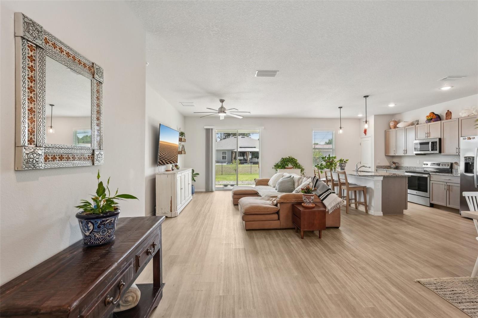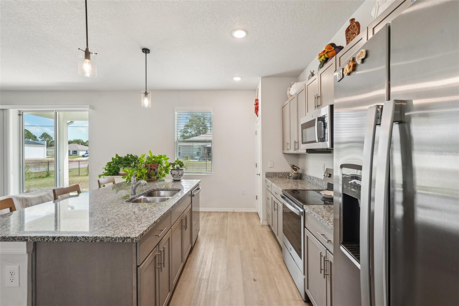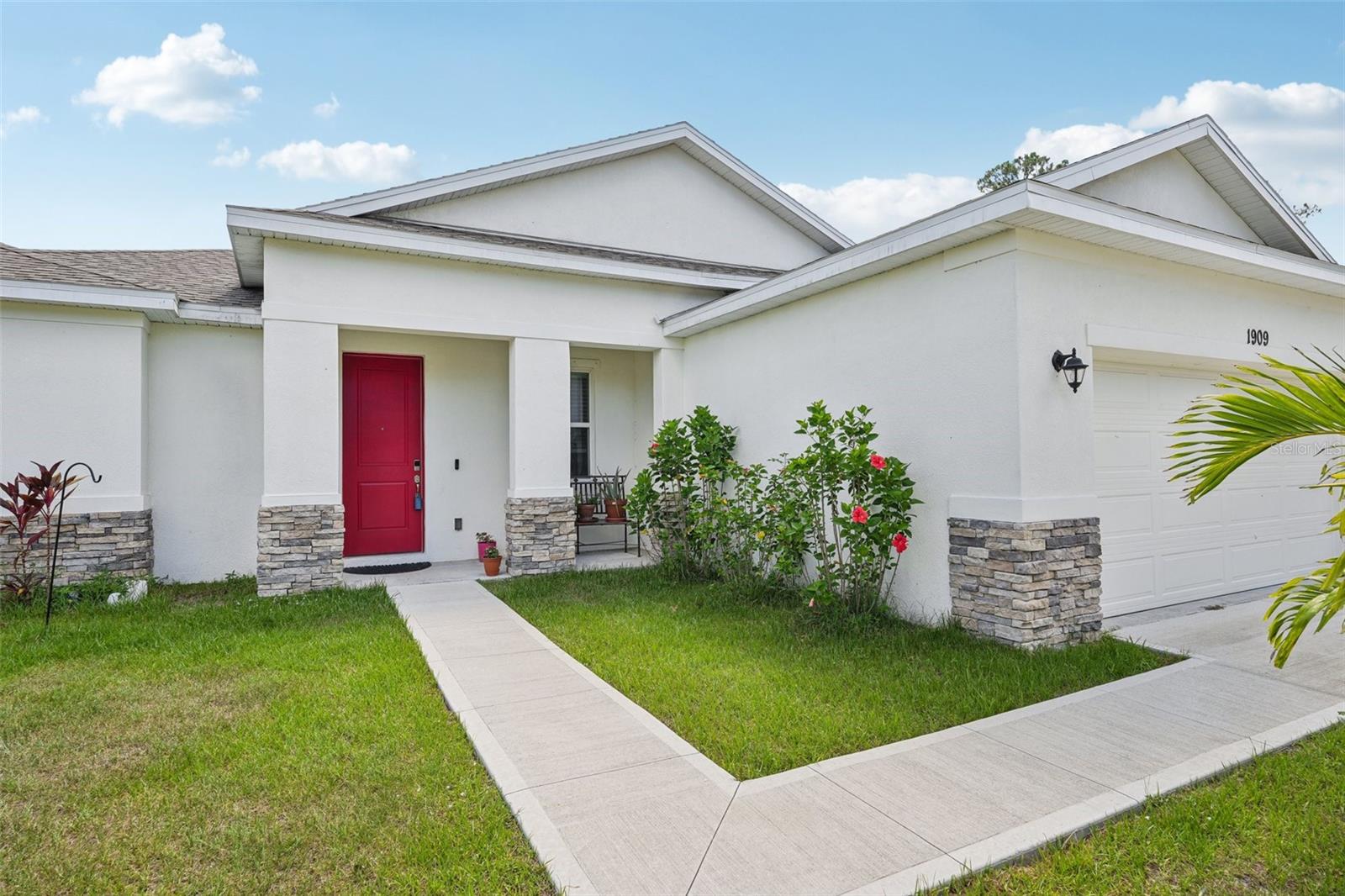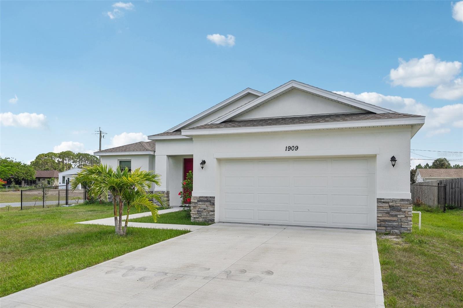 "Bundled service pricing available for buyers. Connect with the listing agent for details." BUILDER INSTALLED & 100% PAID SOLAR PANELS—Enjoy Huge Energy Savings! This stunning 2023-built home offers 3 bedrooms, 2 bathrooms, and 1,541 sq. ft. of air-conditioned living space, all set on a spacious 0.24-acre corner lot. Designed with sustainability and style in mind, the home comes equipped with fully paid-off solar panels—providing low-cost electricity that keeps your bill under $30 most of the year, and around $50 during the summer months, while reducing your carbon footprint. Step inside to a thoughtfully designed split floor plan that ensures privacy and functionality. The bright, open-concept living and kitchen area is perfect for both entertaining and everyday living, featuring 10-foot ceilings, luxury vinyl plank flooring, and abundant natural light. The gourmet kitchen impresses with soft-close cabinets and drawers, granite countertops, and a modern layout that seamlessly connects to the living space. The primary suite is a true retreat with dual sinks, a walk-in shower, and an oversized walk-in closet for ample storage. Outside, the private fenced backyard is ideal for al fresco dining and grilling under the open sky. The home’s striking curb appeal is enhanced by decorative stone veneer exterior accents, and the corner lot offers plenty of outdoor space to make your own. Don’t miss your opportunity to own this energy-efficient gem that blends luxury, comfort, and long-term savings!