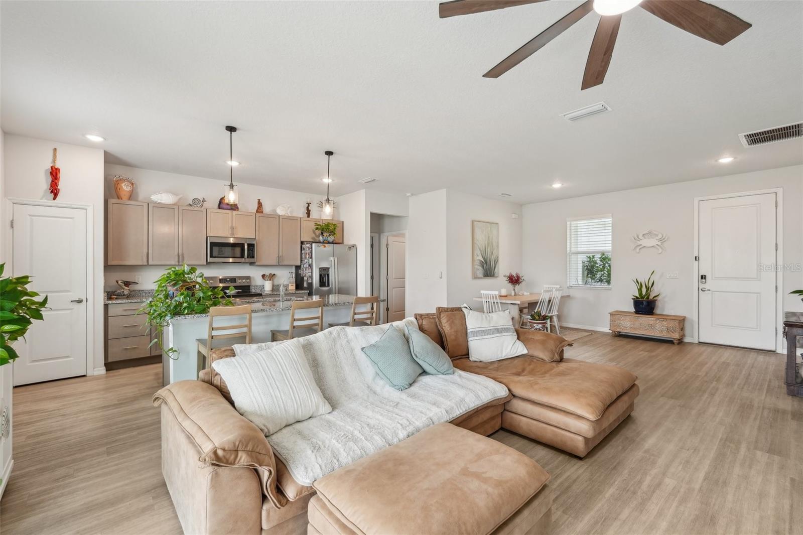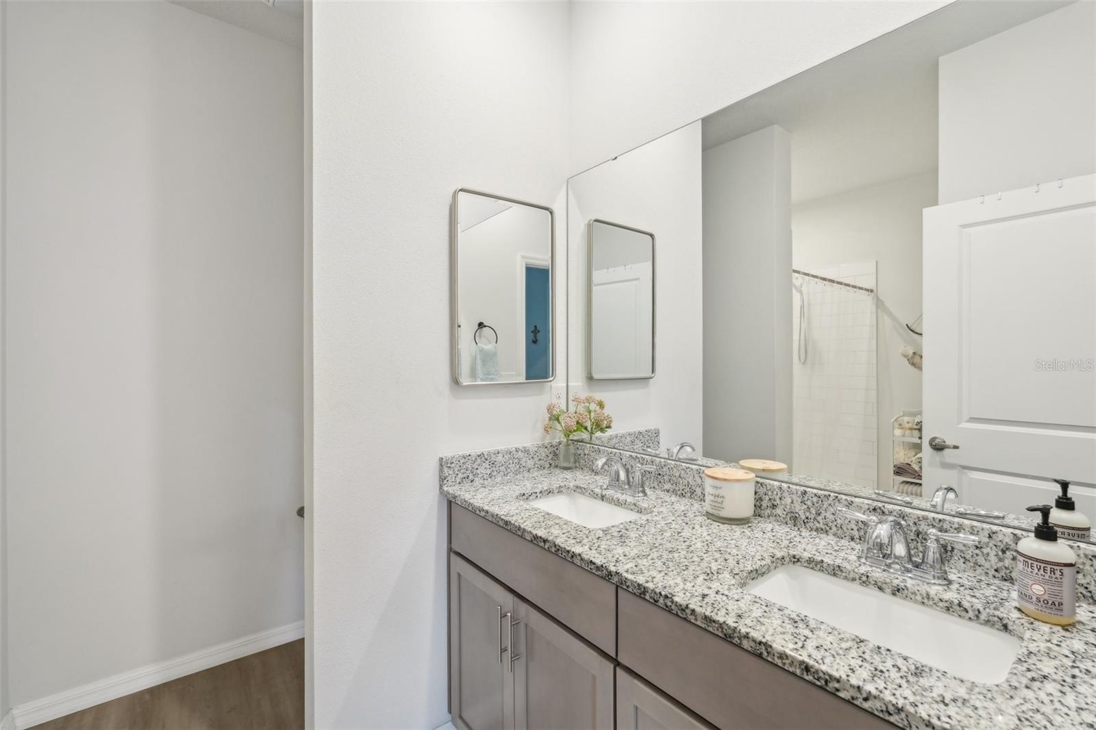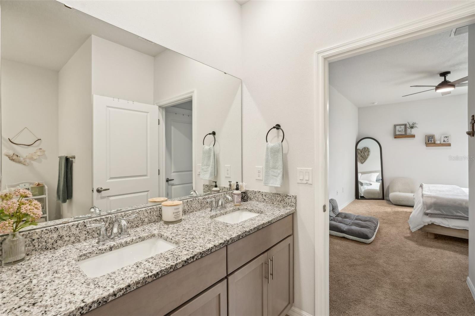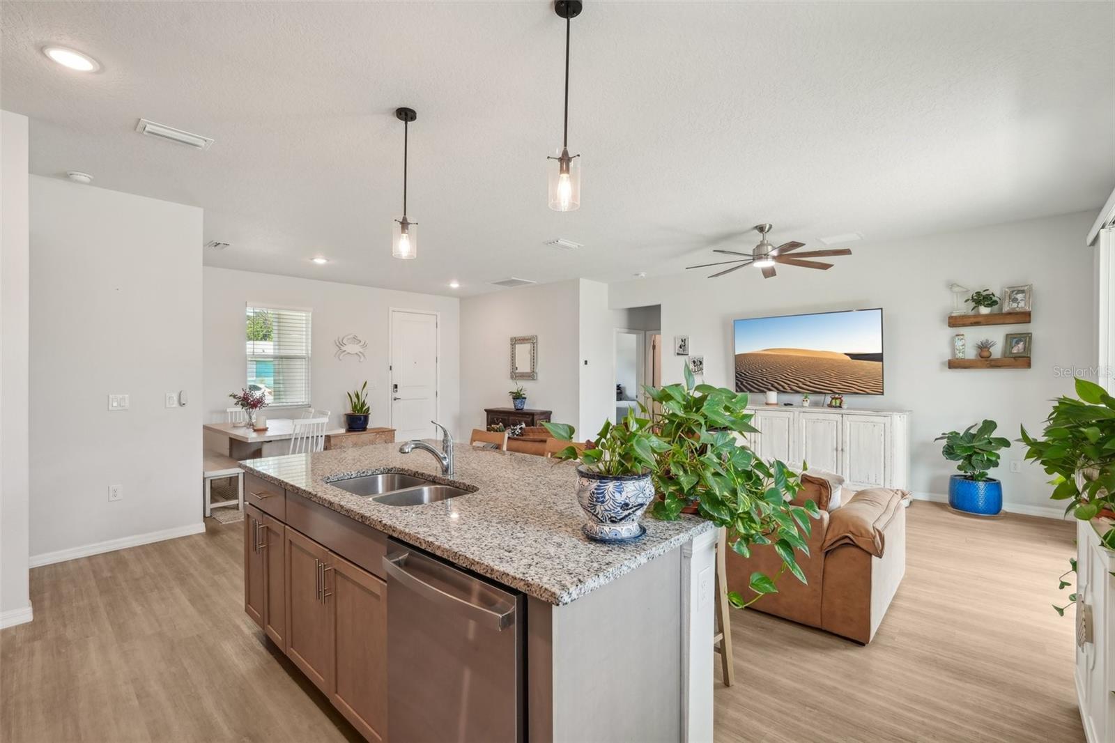"Bundled service pricing available for buyers. Connect with the listing agent for details." BUILDER INSTALLED & 100% PAID SOLAR PANELS—Enjoy Huge Energy Savings! This stunning 2023-built home offers 3 bedrooms, 2 bathrooms, and 1,541 sq. ft. of air-conditioned living space, all set on a spacious 0.24-acre corner lot. Designed with sustainability and style in mind, the home comes equipped with fully paid-off solar panels—providing low-cost electricity that keeps your bill under $30 most of the year, and around $50 during the summer months, while reducing your carbon footprint. Step inside to a thoughtfully designed split floor plan that ensures privacy and functionality. The bright, open-concept living and kitchen area is perfect for both entertaining and everyday living, featuring 10-foot ceilings, luxury vinyl plank flooring, and abundant natural light. The gourmet kitchen impresses with soft-close cabinets and drawers, granite countertops, and a modern layout that seamlessly connects to the living space. The primary suite is a true retreat with dual sinks, a walk-in shower, and an oversized walk-in closet for ample storage. Outside, the private fenced backyard is ideal for al fresco dining and grilling under the open sky. The home’s striking curb appeal is enhanced by decorative stone veneer exterior accents, and the corner lot offers plenty of outdoor space to make your own. Don’t miss your opportunity to own this energy-efficient gem that blends luxury, comfort, and long-term savings!