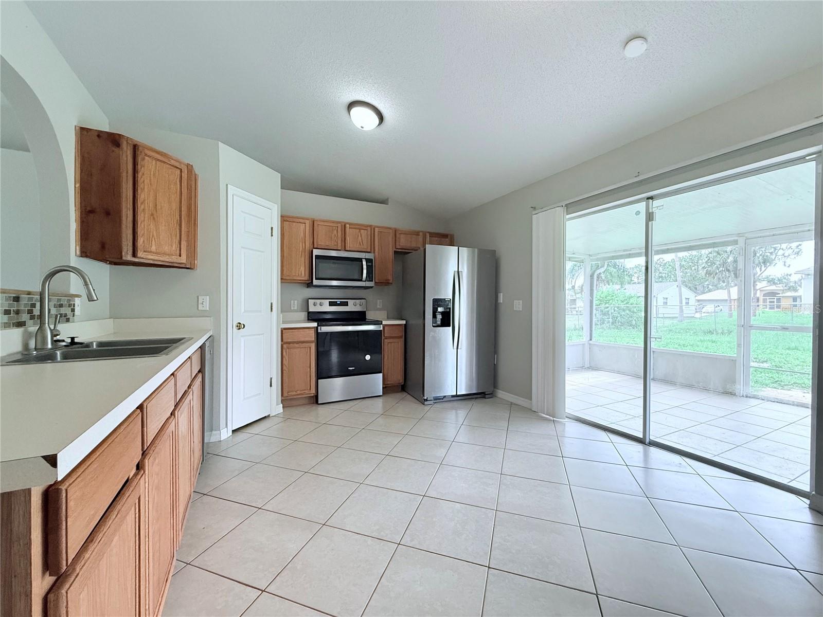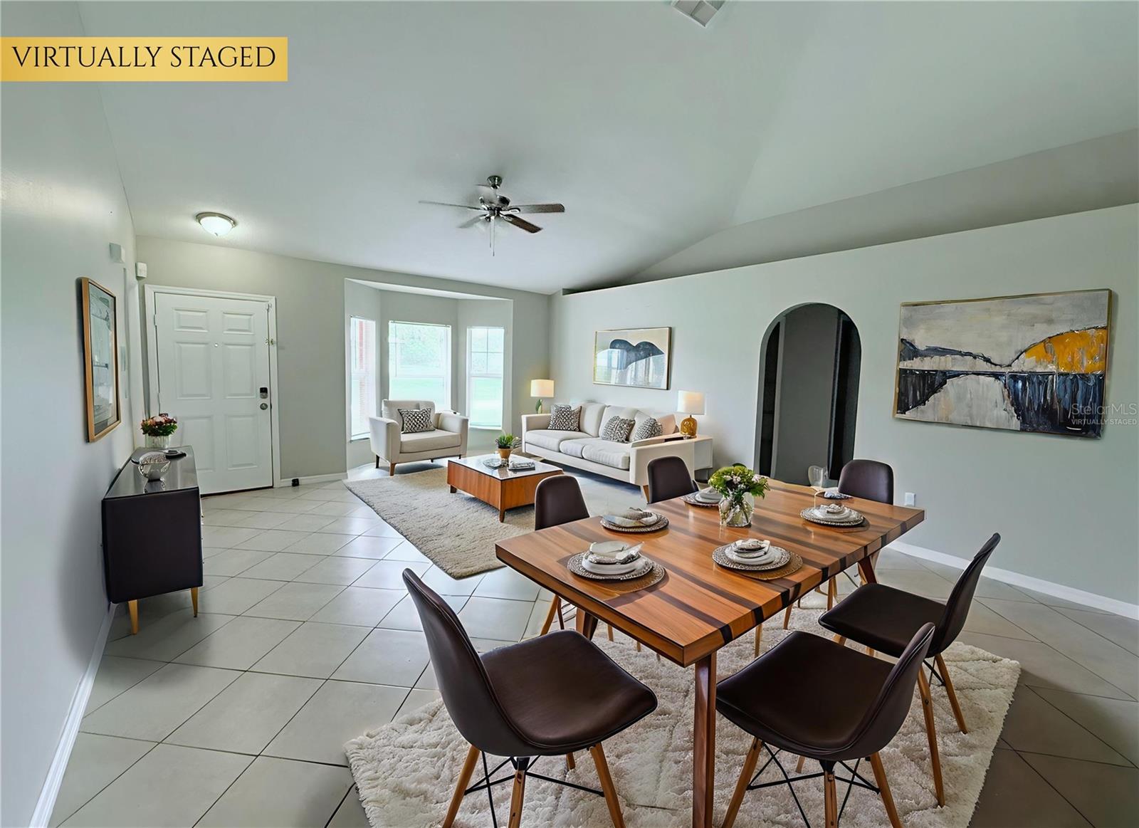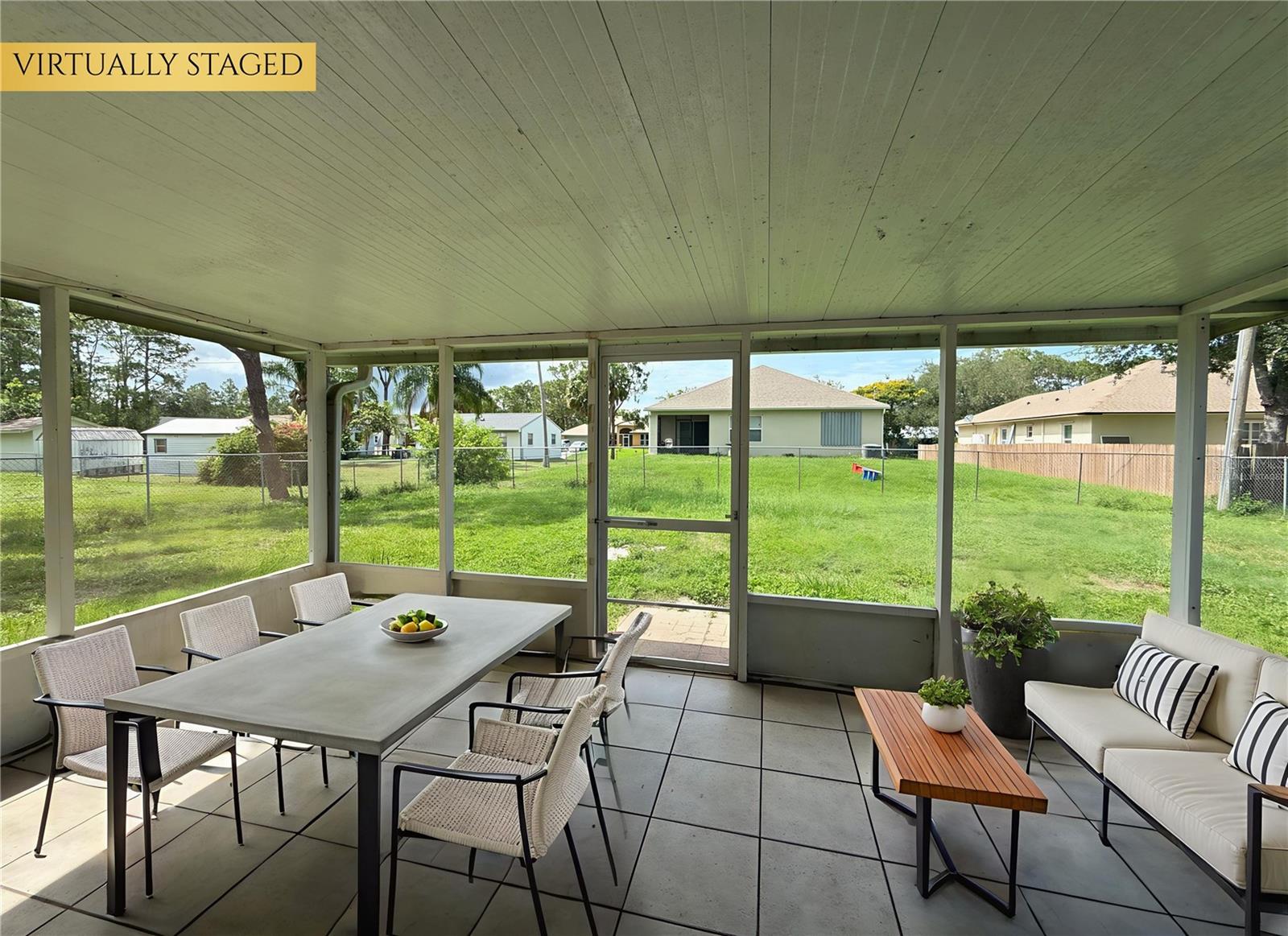 One or more photo(s) has been virtually staged. CONCRETE BLOCK home you'll love to call Home Sweet Home! This home features ceramic tile in the main living areas and wood laminate flooring in the bedrooms. Enjoy an open floor plan with vaulted ceilings and open ledges for all of your decor. The eat-in kitchen is spacious with newer stainless steel appliances, a pantry and lots of cabinetry. There's an indoor washer and dryer area off the hallway. THE ROOF WAS INSTALLED IN 2024! There are ceiling fans and window treatments throughout. In the garage you'll find a water treatment system and storm shutters. You'll love the spacious screened porch overlooking the fenced yard. The water heater is 2005 and in working condition. The air conditioner is 2018. Nicely priced in a quiet street and close to major shops and restaurants. Don't miss an opportunity to buy this move in ready home!