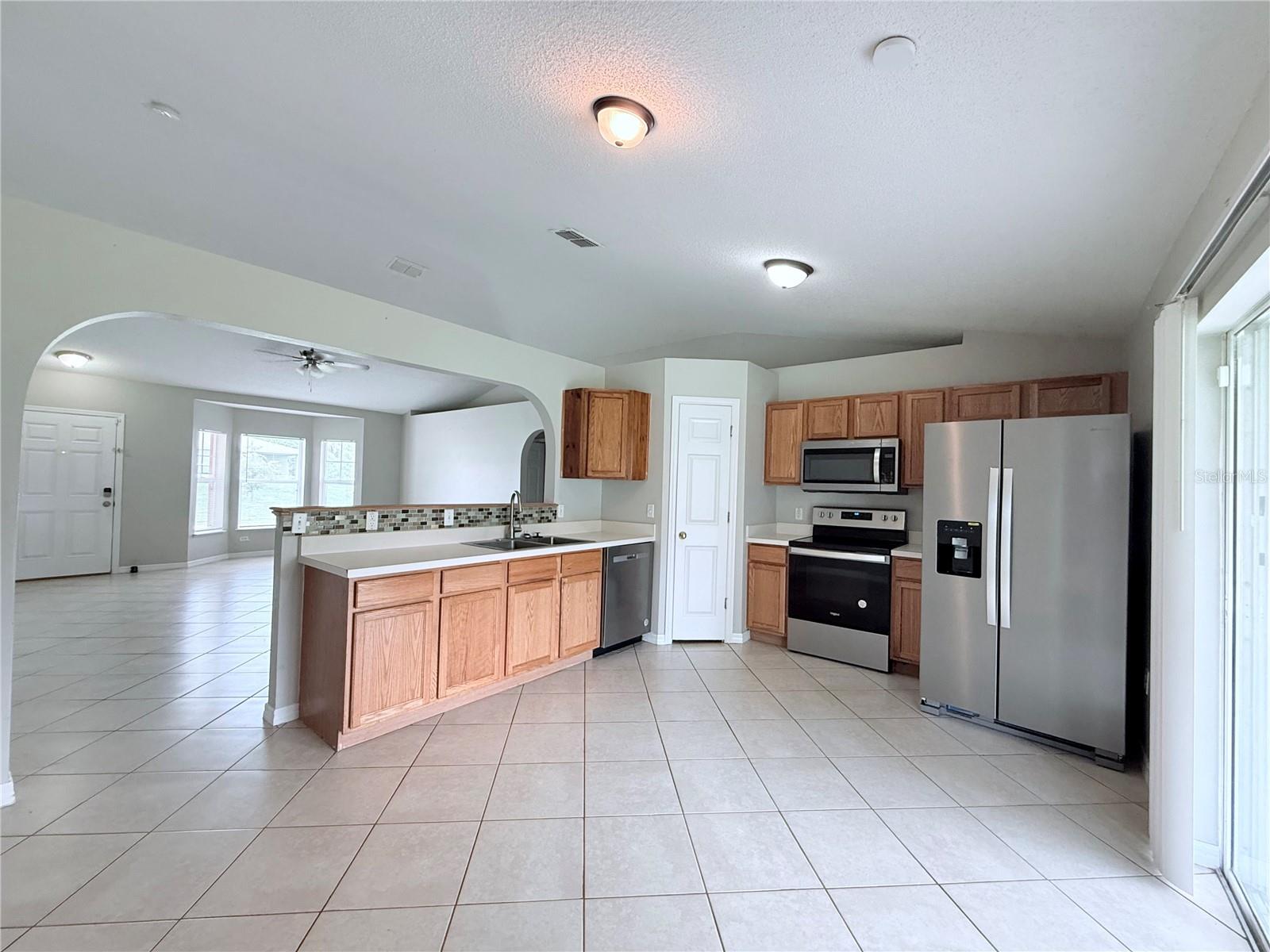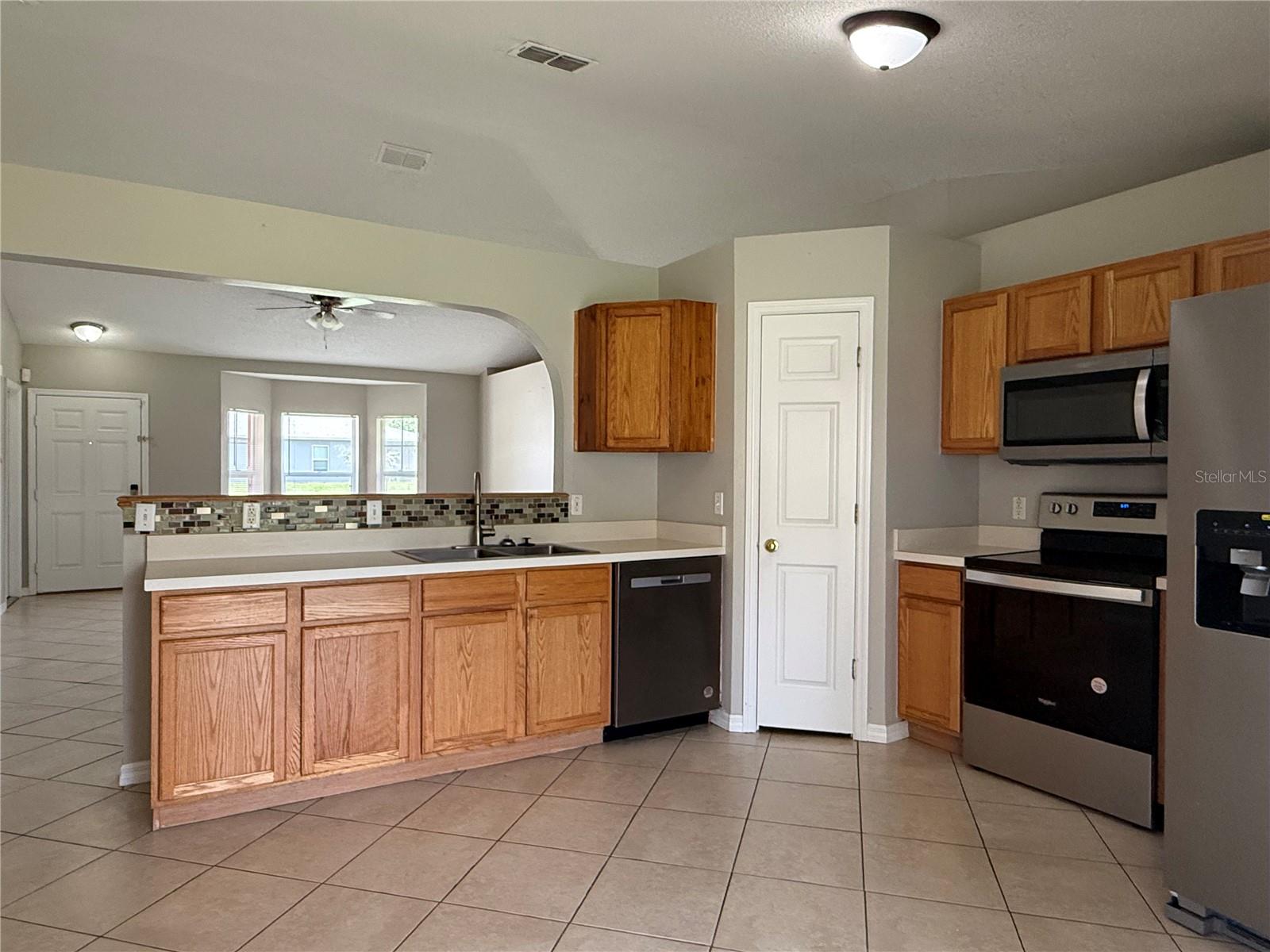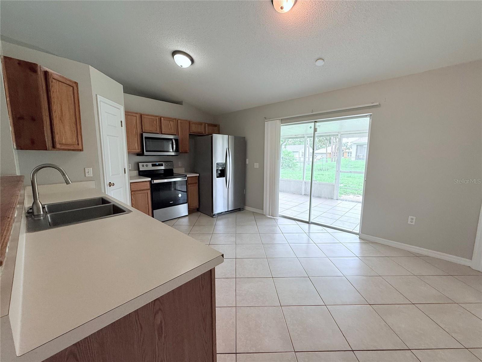 One or more photo(s) has been virtually staged. CONCRETE BLOCK home you'll love to call Home Sweet Home! This home features ceramic tile in the main living areas and wood laminate flooring in the bedrooms. Enjoy an open floor plan with vaulted ceilings and open ledges for all of your decor. The eat-in kitchen is spacious with newer stainless steel appliances, a pantry and lots of cabinetry. There's an indoor washer and dryer area off the hallway. THE ROOF WAS INSTALLED IN 2024! There are ceiling fans and window treatments throughout. In the garage you'll find a water treatment system and storm shutters. You'll love the spacious screened porch overlooking the fenced yard. The water heater is 2005 and in working condition. The air conditioner is 2018. Nicely priced in a quiet street and close to major shops and restaurants. Don't miss an opportunity to buy this move in ready home!