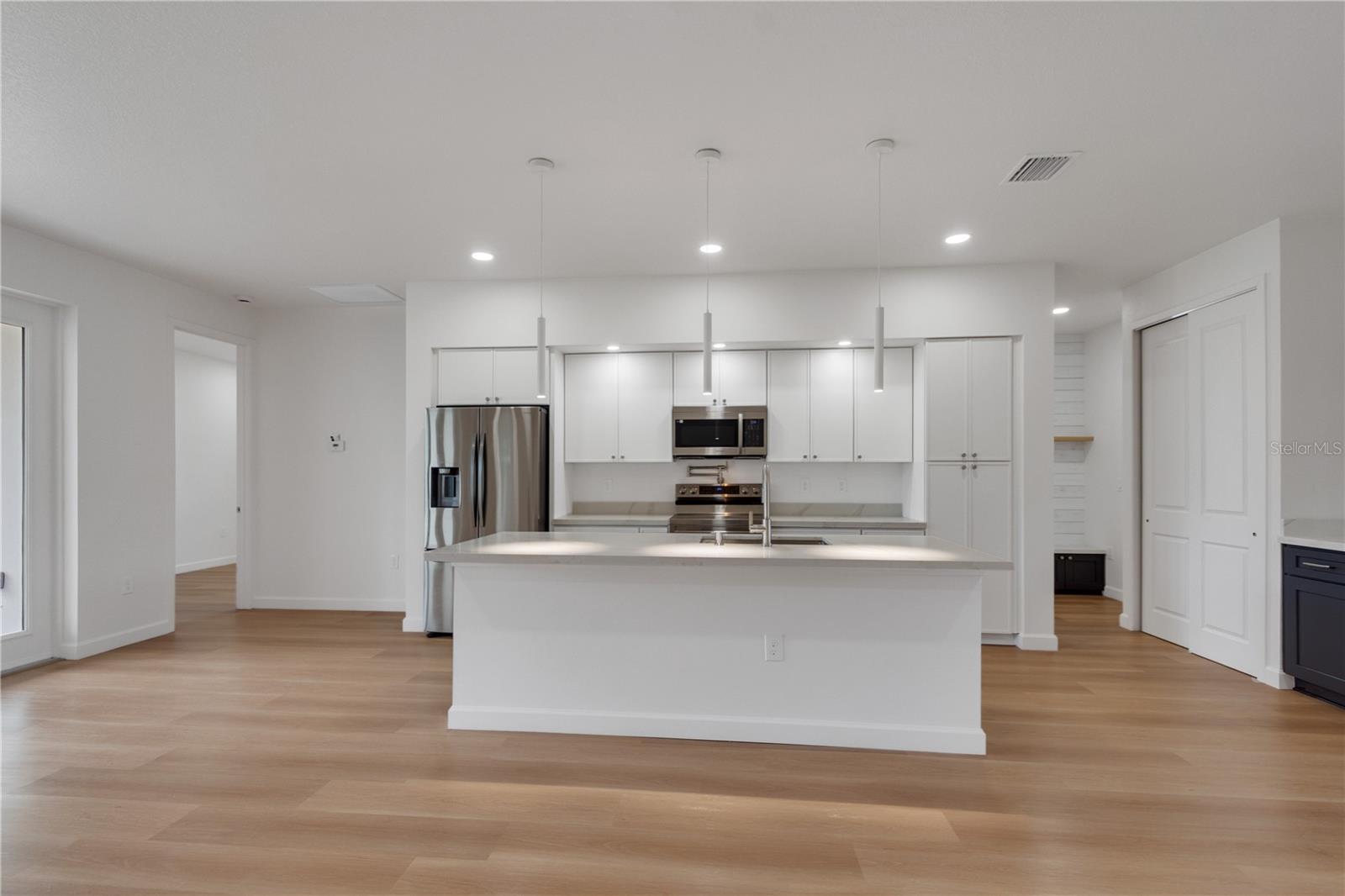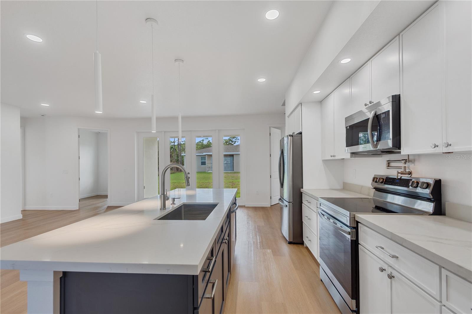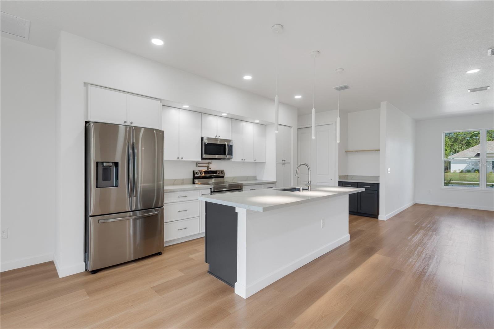 Discover your dream home in this stunning, brand-new modern single-family residence, where cutting-edge design seamlessly blends with practical, everyday living. Boasting 4 generously sized bedrooms, a dedicated private office, and 3 luxurious full bathrooms, it's an ideal haven for growing families, remote workers, or anyone craving expansive, light-filled spaces.Step inside to an inviting open-concept floor plan that effortlessly flows between the gourmet kitchen, elegant dining area, and cozy living room—making it a entertainer's paradise. The chef-inspired kitchen shines with premium quartz countertops, sleek contemporary cabinetry, and high-end stainless steel fixtures, ready for your culinary adventures.On the exterior, bold architectural elements and a striking two-tone facade create instant curb appeal. The expansive driveway, complete with a convenient vehicle turning pad, provides plenty of parking and smooth access to the attached 2-car garage.Key highlights include: *A welcoming covered front entry that greets you with style and shelter *Energy-efficient windows and superior construction for lower utility bills and year-round comfort *Effortless low-maintenance landscaping, so you can spend more time enjoying your home *Nestled in a vibrant, family-oriented neighborhood with room to grow Where modern elegance meets functional brilliance—seize the opportunity to make this exceptional new-construction gem your own!