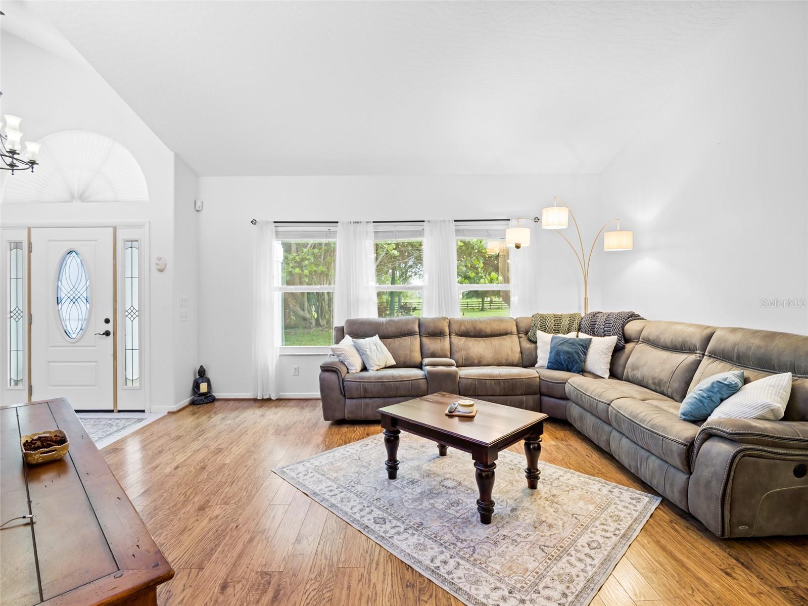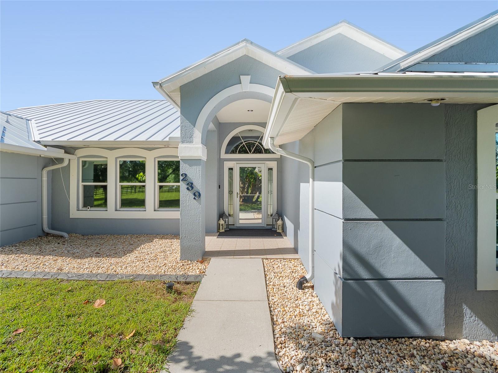 Step into the perfect combination of comfort and countryside living with this beautifully updated ranch-style home, located in a peaceful equestrian community. Recent upgrades include a brand-new metal roof (2024), fully owned solar panels (no contract), a whole-house propane generator, hurricane-impact windows, and a new HVAC system—major updates have already been taken care of! Inside, you'll find both a formal living room and a cozy family room with a stone wood-burning fireplace. The kitchen features a brand-new gourmet range and updated appliances, while the exterior of the home was freshly painted in 2024. For those who love outdoor living, enjoy the Florida lifestyle with a screened-in pool and a spacious, covered back porch perfect for relaxing or entertaining. The 576 sq. ft. barn with a lean-to offers plenty of room for horses, extra storage, or additional garage parking. A private pond adds to the tranquility, and the partially fenced yard provides a secure space for pets. This highly sought-after equestrian community offers top-notch amenities, including an arena, round pen, clubhouse, and courts for tennis, basketball, and pickleball. There are also miles of scenic riding trails for you to explore. Horse ownership is optional, and the very low HOA fee of just $230 annually covers all these fantastic perks. For those working or streaming from home, Spectrum fiber internet (up to 1000 mbps) is now available!