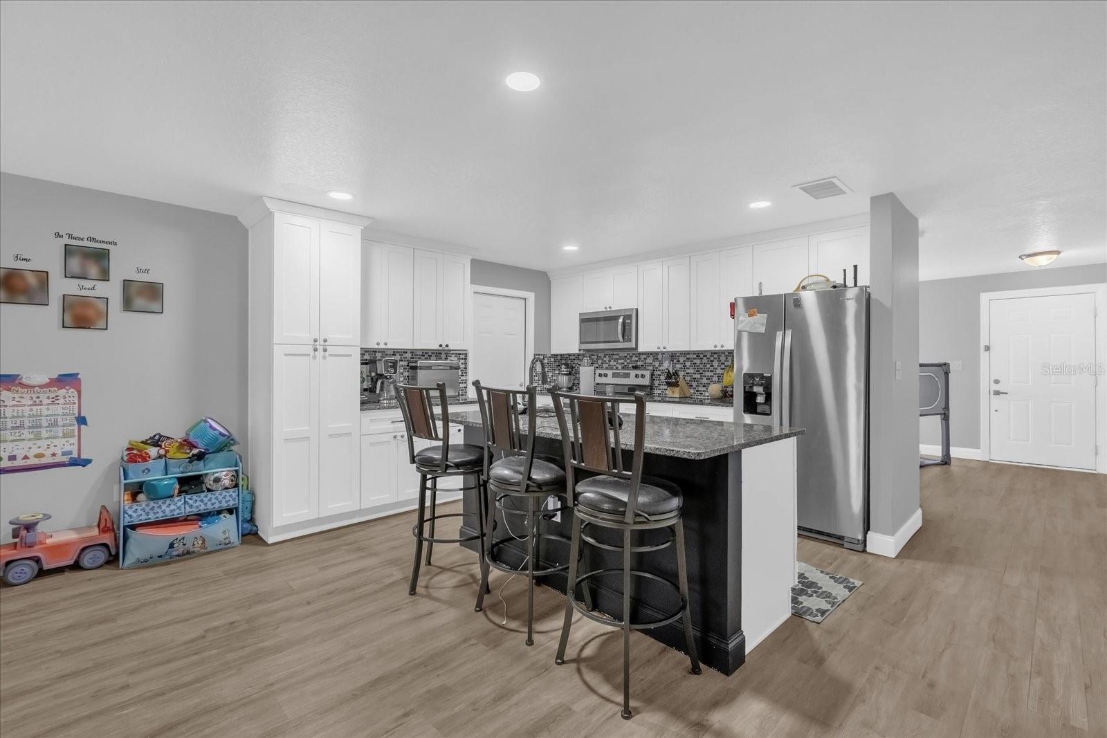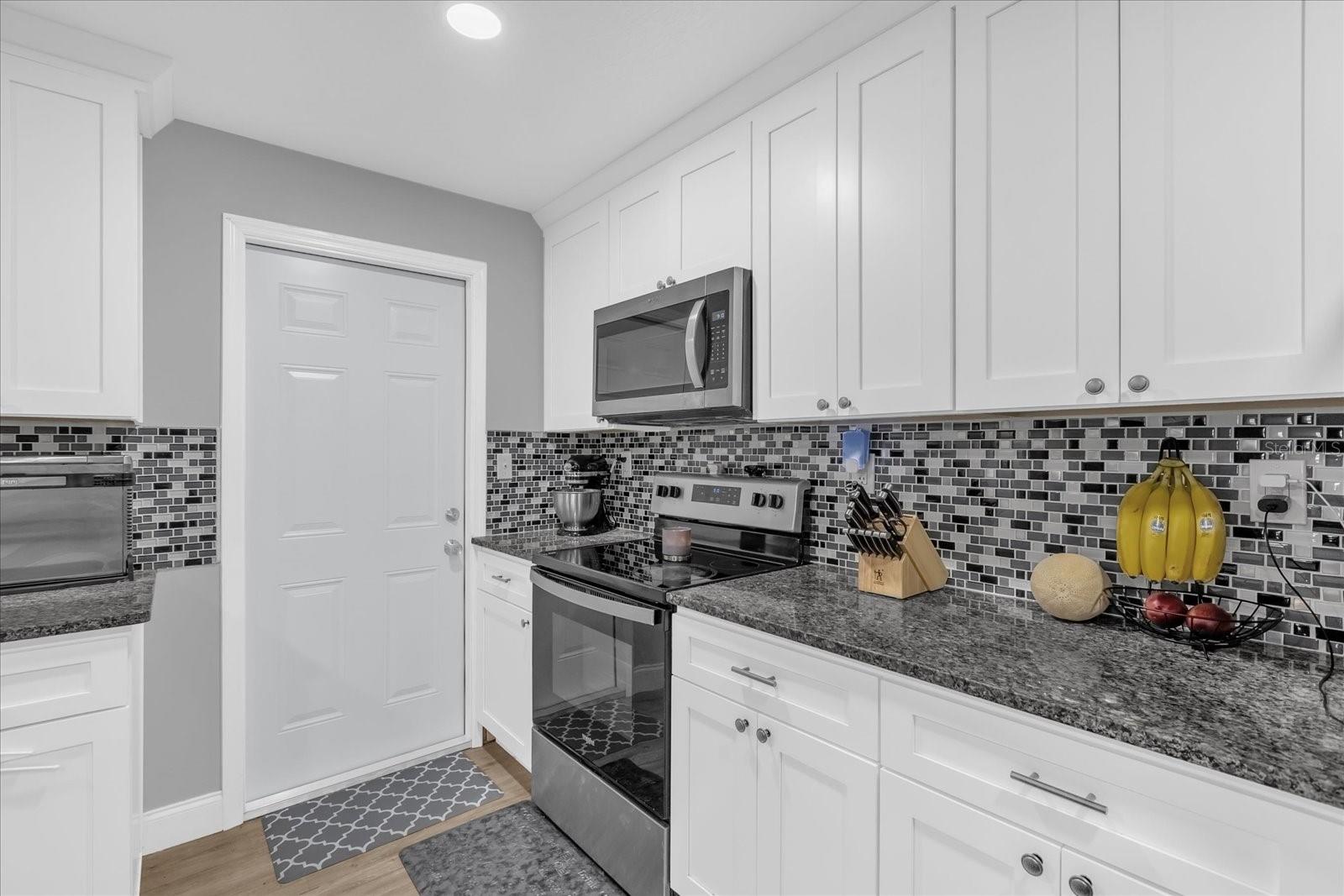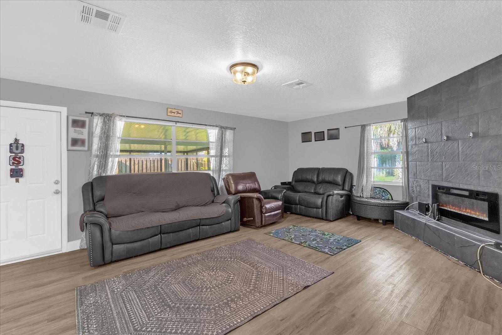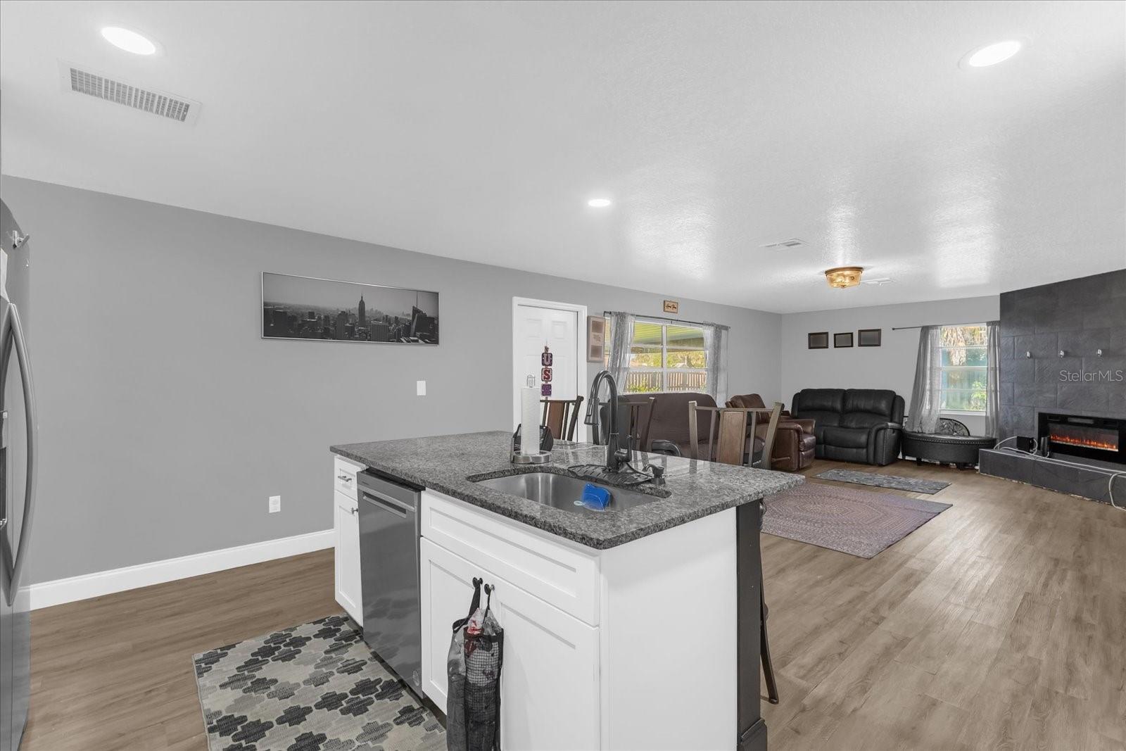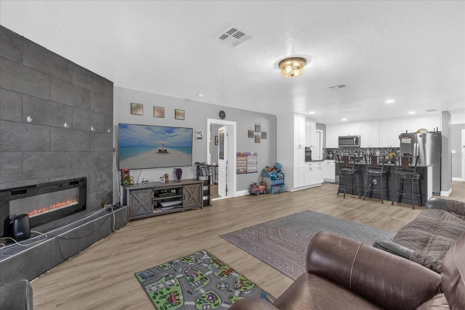 Welcome to 588 Audubon Ave NE, a beautifully updated 4-bedroom, 2-bath Palm Bay home offering comfort & style. Step inside to a bright, open floor plan connecting the living, dining, & kitchen areas, with a cozy fireplace in the family room. The kitchen features white shaker cabinets, granite countertops, a kitchen island, stainless steel appliances, a pantry, breakfast bar, & stylish backsplash. Enjoy meals indoors or on the expansive screened porch, providing over 500 sq ft of bonus entertaining space. Newer flooring, paint, & fixtures add a modern touch, while the bathrooms offer a tiled shower in the owner's suite & a tub/shower combo in the guest bath. Outdoors, the large fenced backyard offers privacy & room to relax along with fruit trees (loquat, lemon, lime, banana, avocado and pineapple). Updates include a newer roof, electrical panel, kitchen, & baths, ac & gutters (2024) providing peace of mind. Located close to shopping, dining, & parks, this move-in-ready home is ready for you to enjoy Florida living at its best. Schedule your showing today!