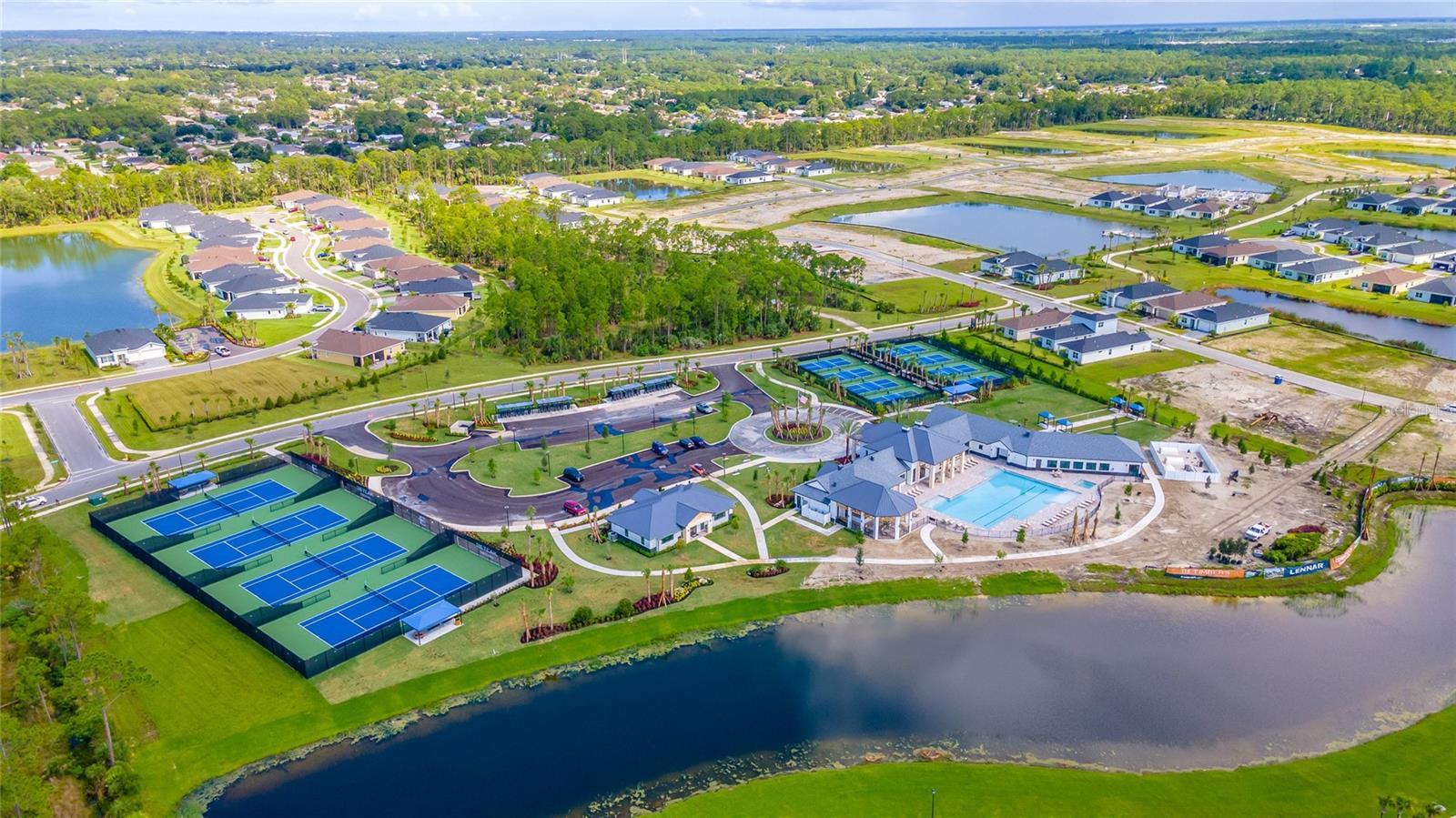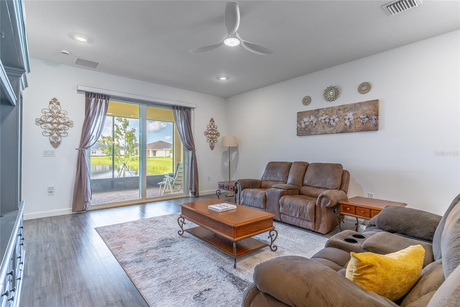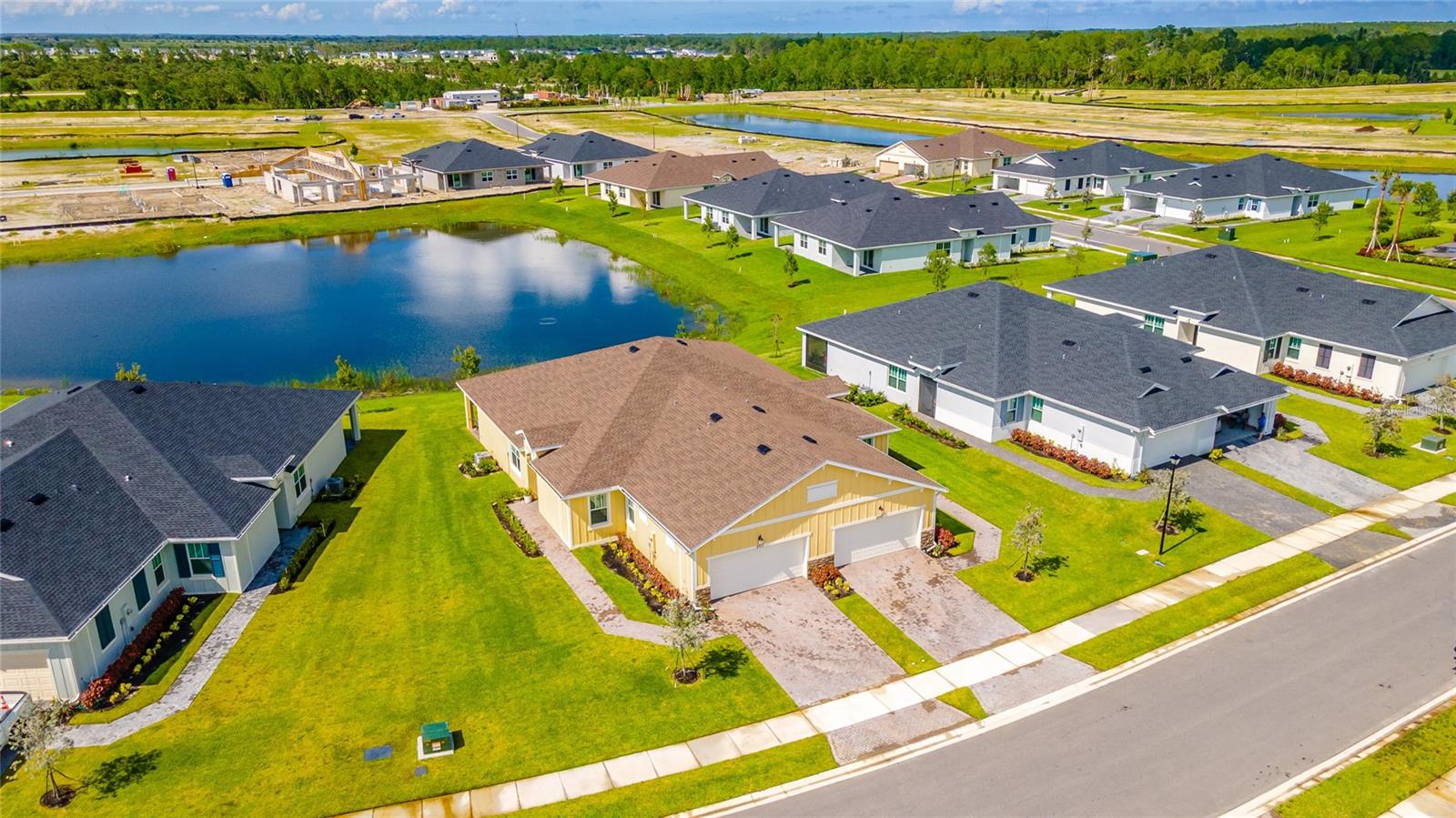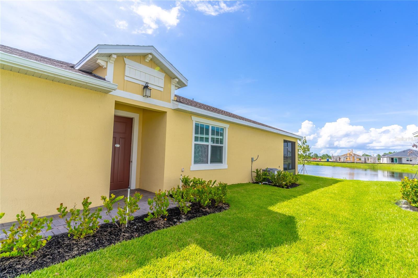 MOVE-IN NOW! This Azalea floorplan by Lennar is a stylishly UPGRADED Resale Home - Save Time, Money, and Hassle! This less than one-year-old home features luxury vinyl floors and a screened rear patio with beautiful water views. Enjoy the peaceful, no-through street and lawn care included in this active community featuring resort-style amenities. Amenities include a clubhouse, pool, movie theater, dog park, tennis & pickleball courts, putting green, walking/golf cart paths, fishing ponds & more. Step inside for a modern take on a classic design, featuring an open floor plan that seamlessly connects a modern kitchen, dining area & great room for easy living.A stylish kitchen with backsplash, new hardware, modern ceiling fans, impact windows and slider, and concrete block construction. The split layout and a flex-space are perfect for an office, pet room, or storage. Discover how luxurious life can be