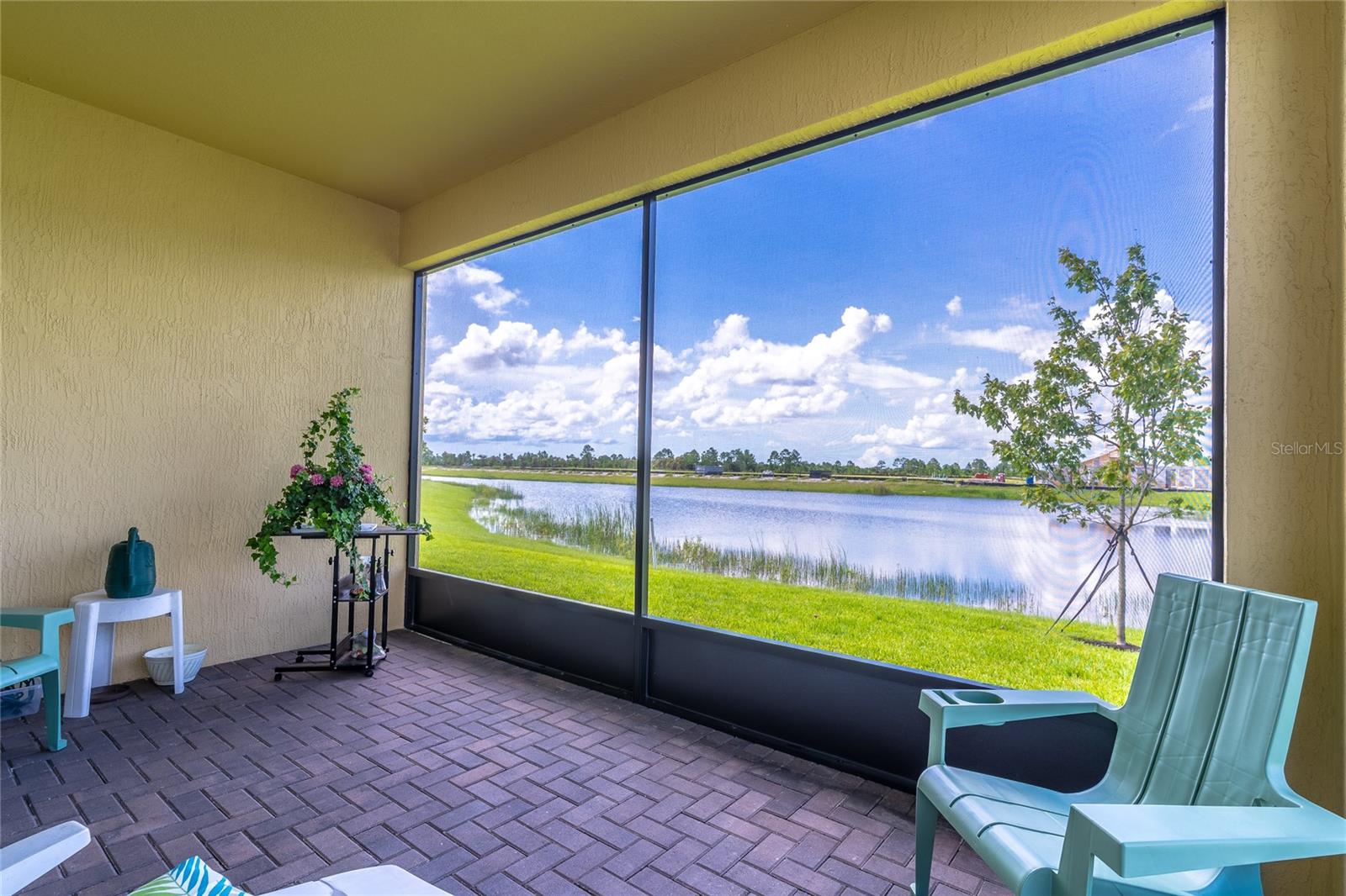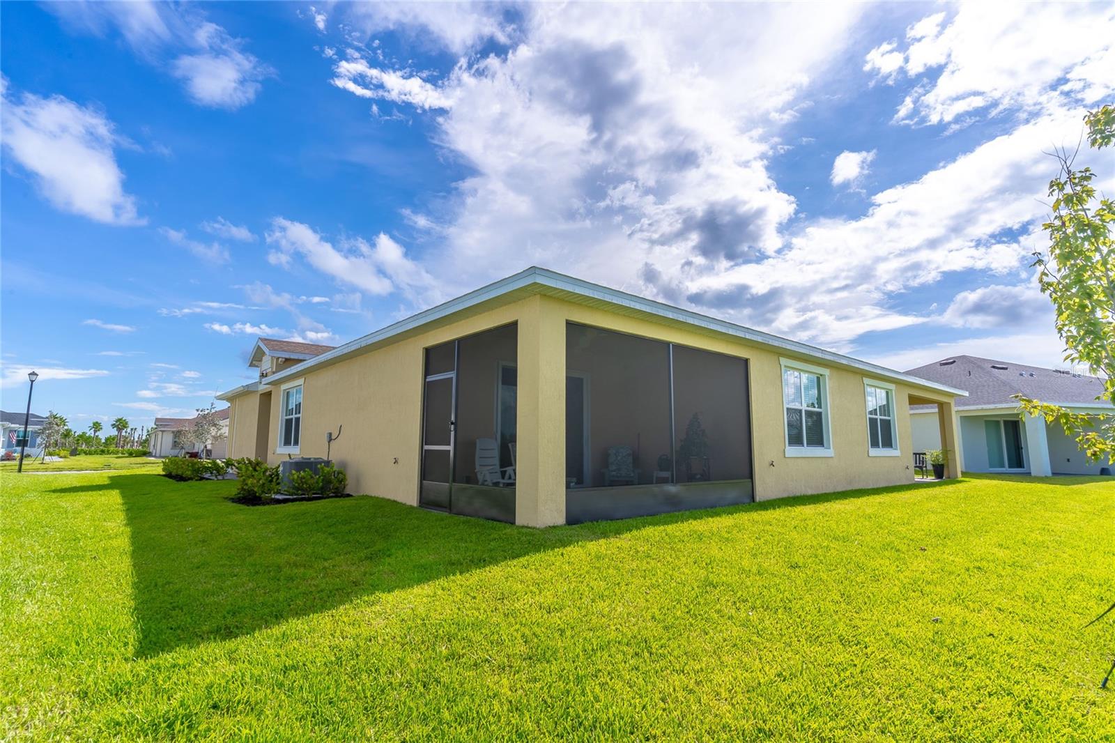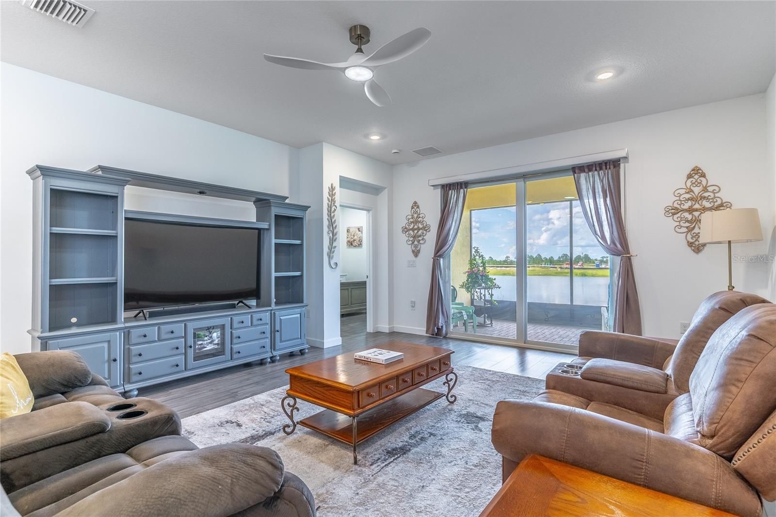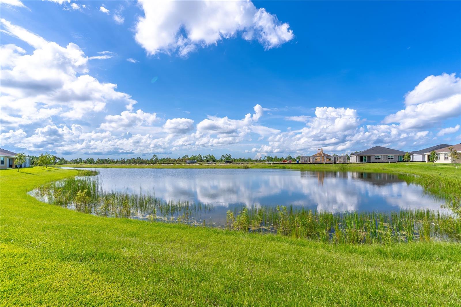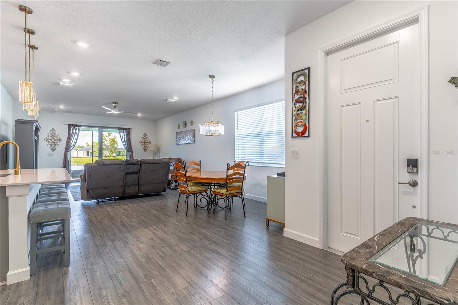 MOVE-IN NOW! This Azalea floorplan by Lennar is a stylishly UPGRADED Resale Home - Save Time, Money, and Hassle! This less than one-year-old home features luxury vinyl floors and a screened rear patio with beautiful water views. Enjoy the peaceful, no-through street and lawn care included in this active community featuring resort-style amenities. Amenities include a clubhouse, pool, movie theater, dog park, tennis & pickleball courts, putting green, walking/golf cart paths, fishing ponds & more. Step inside for a modern take on a classic design, featuring an open floor plan that seamlessly connects a modern kitchen, dining area & great room for easy living.A stylish kitchen with backsplash, new hardware, modern ceiling fans, impact windows and slider, and concrete block construction. The split layout and a flex-space are perfect for an office, pet room, or storage. Discover how luxurious life can be