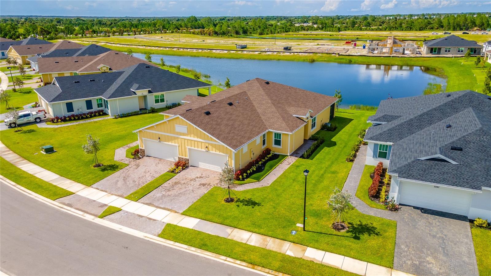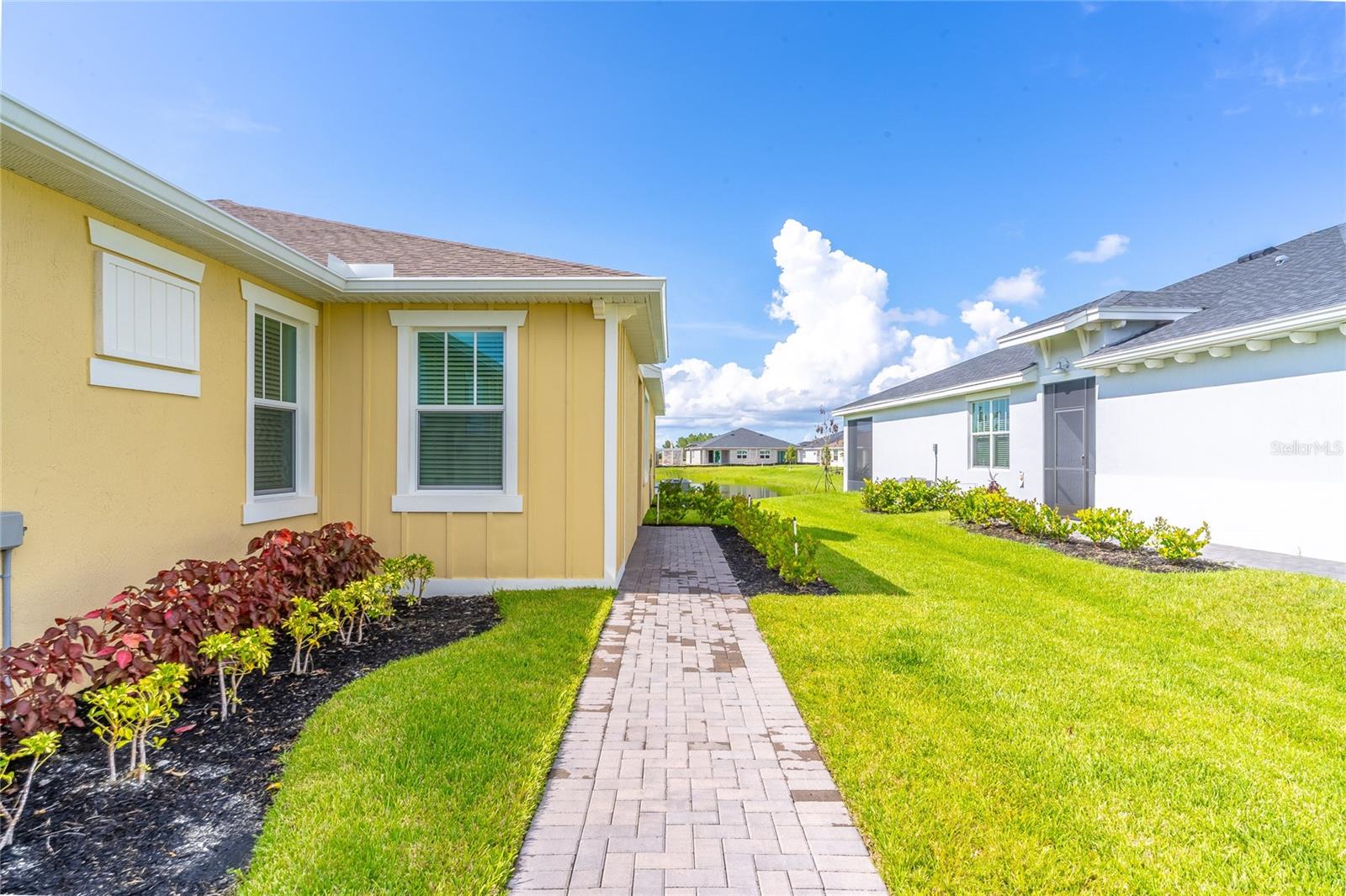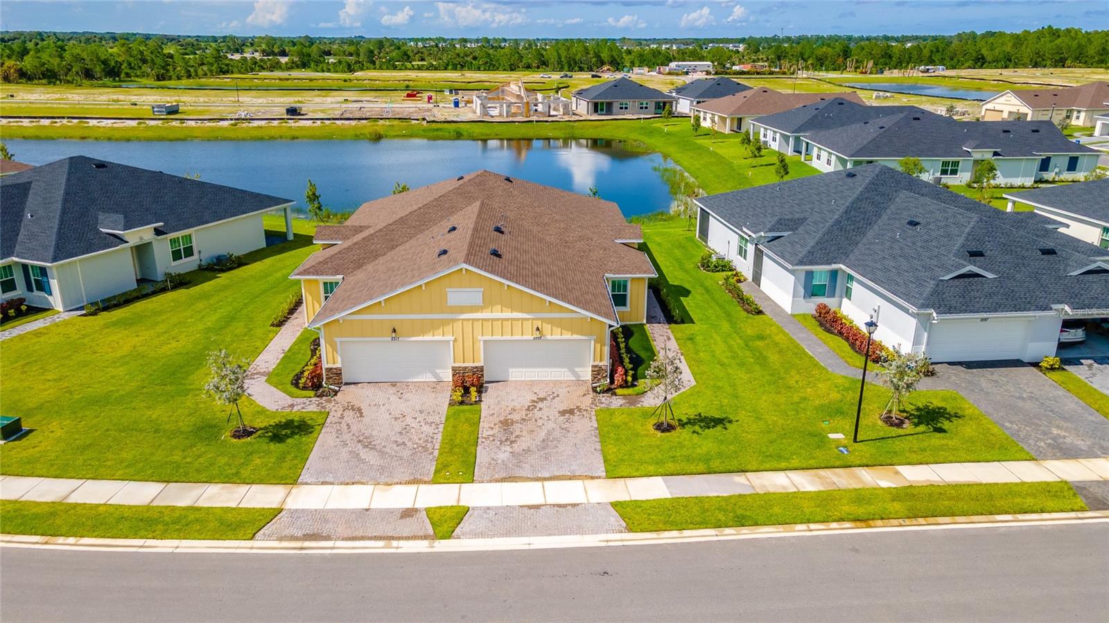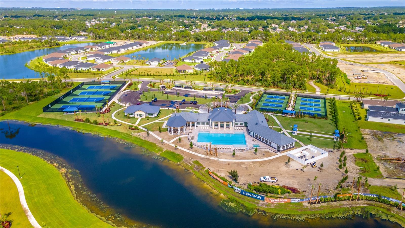 MOVE-IN NOW! This Azalea floorplan by Lennar is a stylishly UPGRADED Resale Home - Save Time, Money, and Hassle! This less than one-year-old home features luxury vinyl floors and a screened rear patio with beautiful water views. Enjoy the peaceful, no-through street and lawn care included in this active community featuring resort-style amenities. Amenities include a clubhouse, pool, movie theater, dog park, tennis & pickleball courts, putting green, walking/golf cart paths, fishing ponds & more. Step inside for a modern take on a classic design, featuring an open floor plan that seamlessly connects a modern kitchen, dining area & great room for easy living.A stylish kitchen with backsplash, new hardware, modern ceiling fans, impact windows and slider, and concrete block construction. The split layout and a flex-space are perfect for an office, pet room, or storage. Discover how luxurious life can be