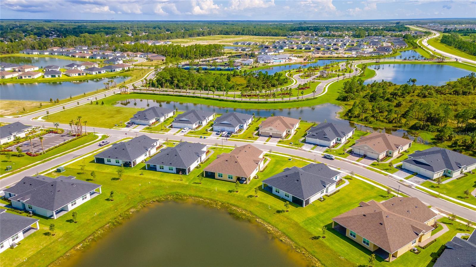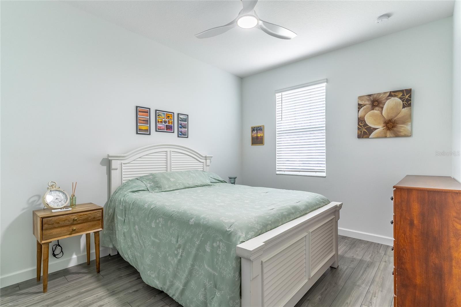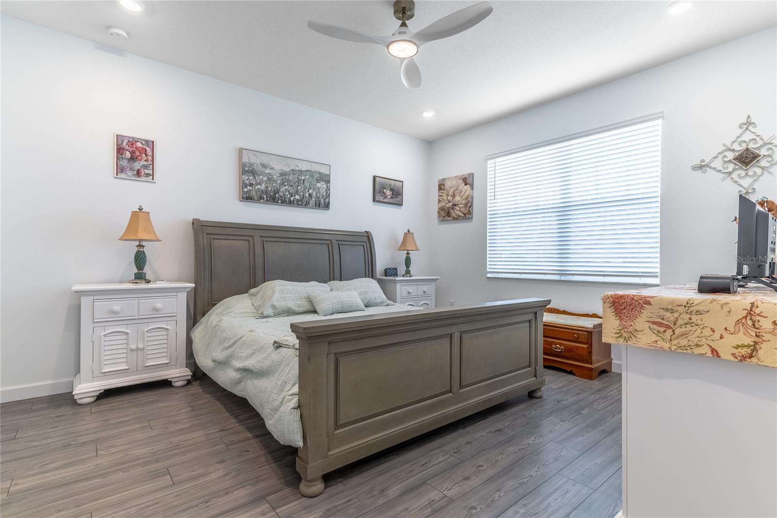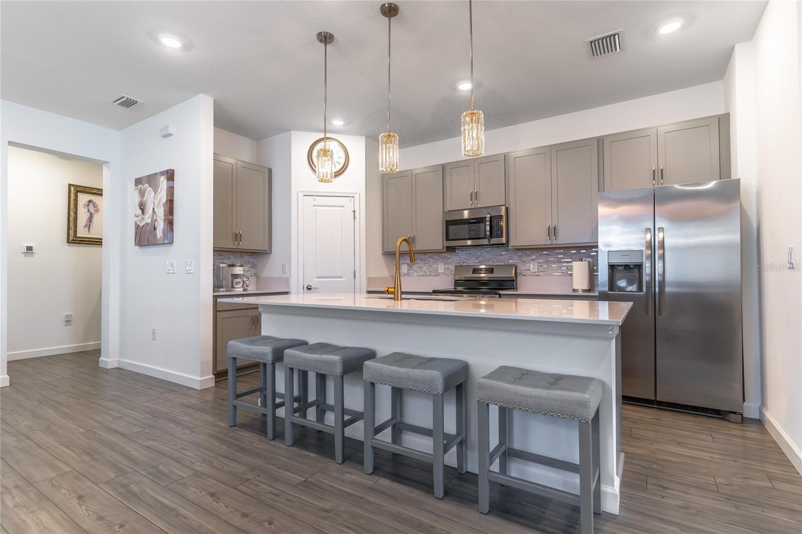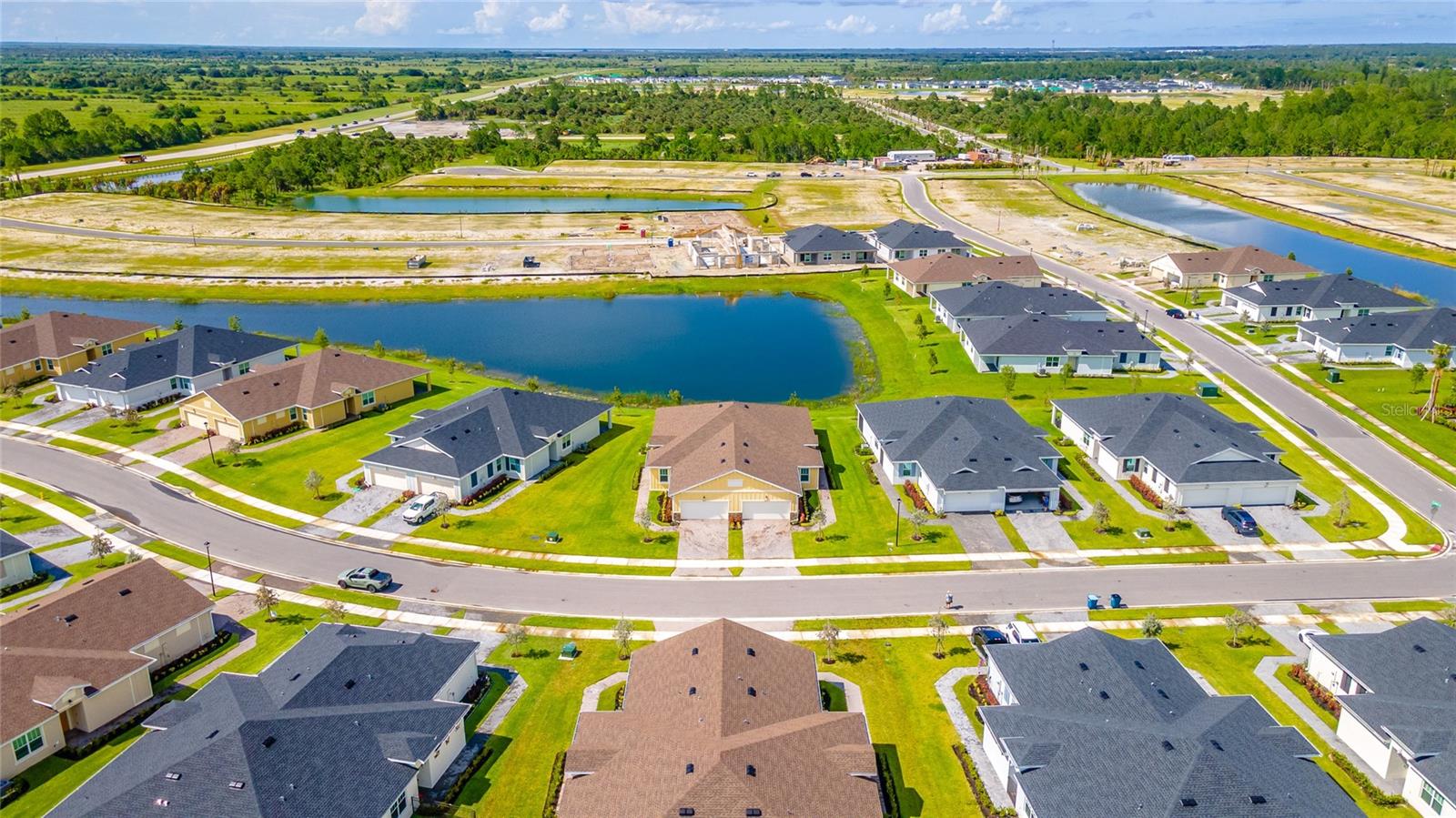 MOVE-IN NOW! This Azalea floorplan by Lennar is a stylishly UPGRADED Resale Home - Save Time, Money, and Hassle! This less than one-year-old home features luxury vinyl floors and a screened rear patio with beautiful water views. Enjoy the peaceful, no-through street and lawn care included in this active community featuring resort-style amenities. Amenities include a clubhouse, pool, movie theater, dog park, tennis & pickleball courts, putting green, walking/golf cart paths, fishing ponds & more. Step inside for a modern take on a classic design, featuring an open floor plan that seamlessly connects a modern kitchen, dining area & great room for easy living.A stylish kitchen with backsplash, new hardware, modern ceiling fans, impact windows and slider, and concrete block construction. The split layout and a flex-space are perfect for an office, pet room, or storage. Discover how luxurious life can be