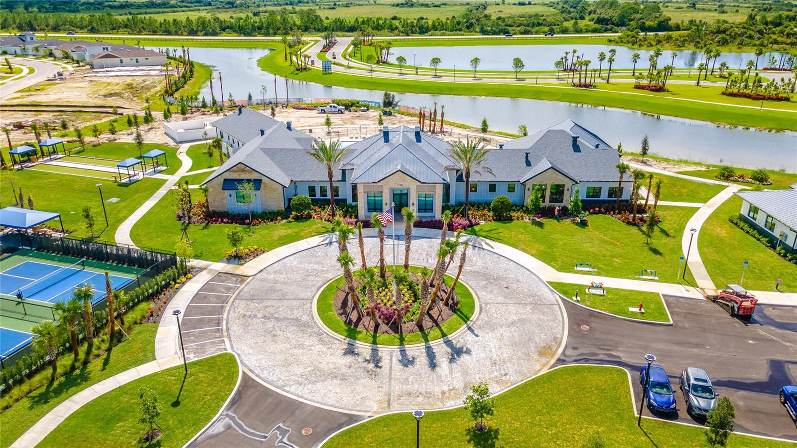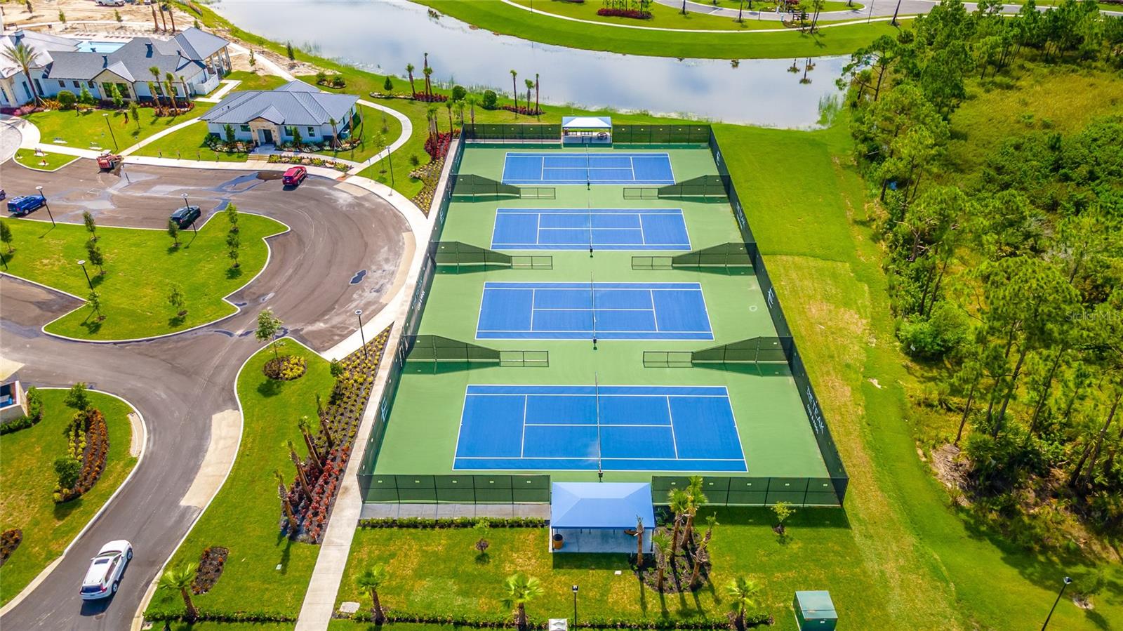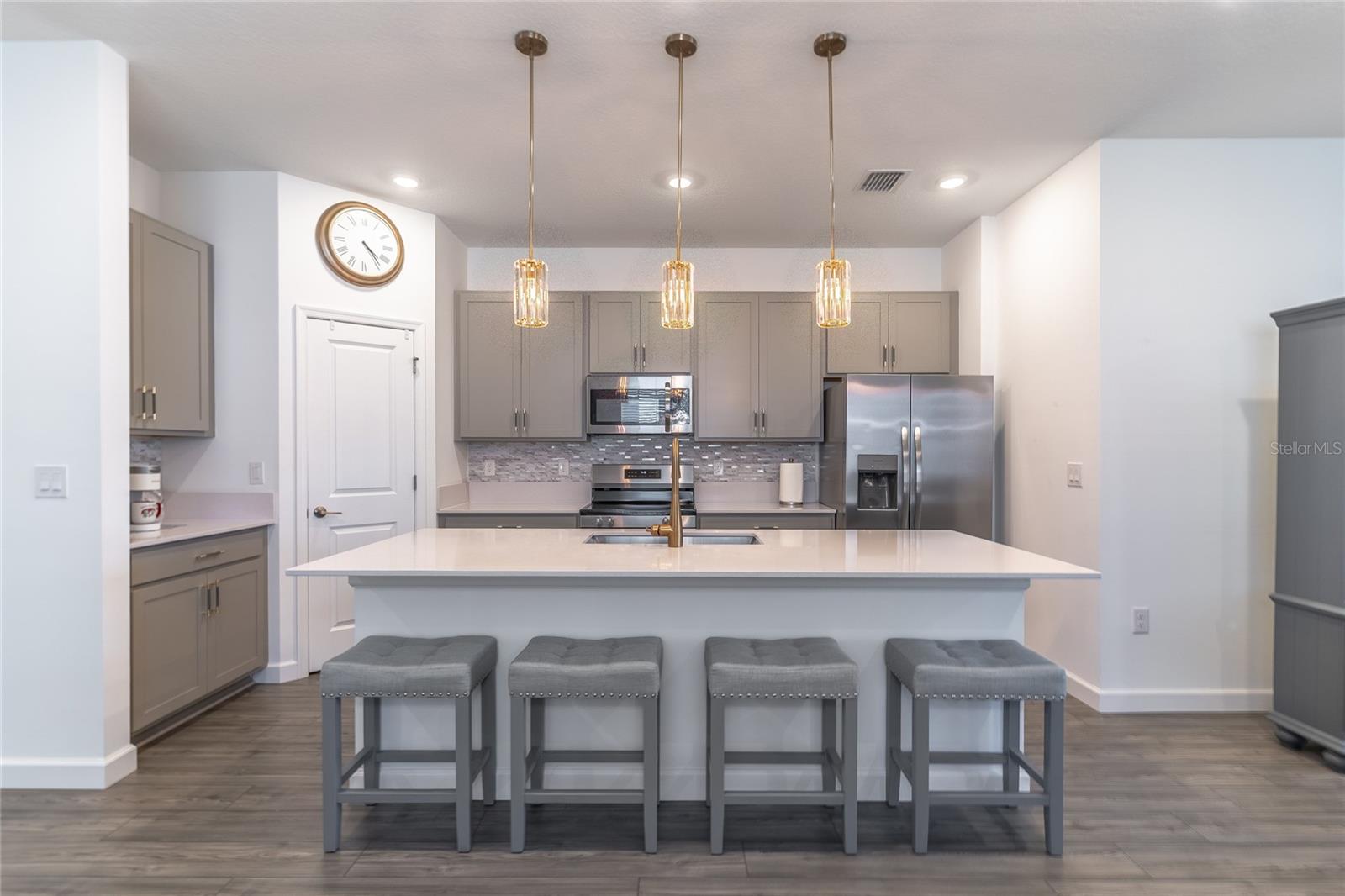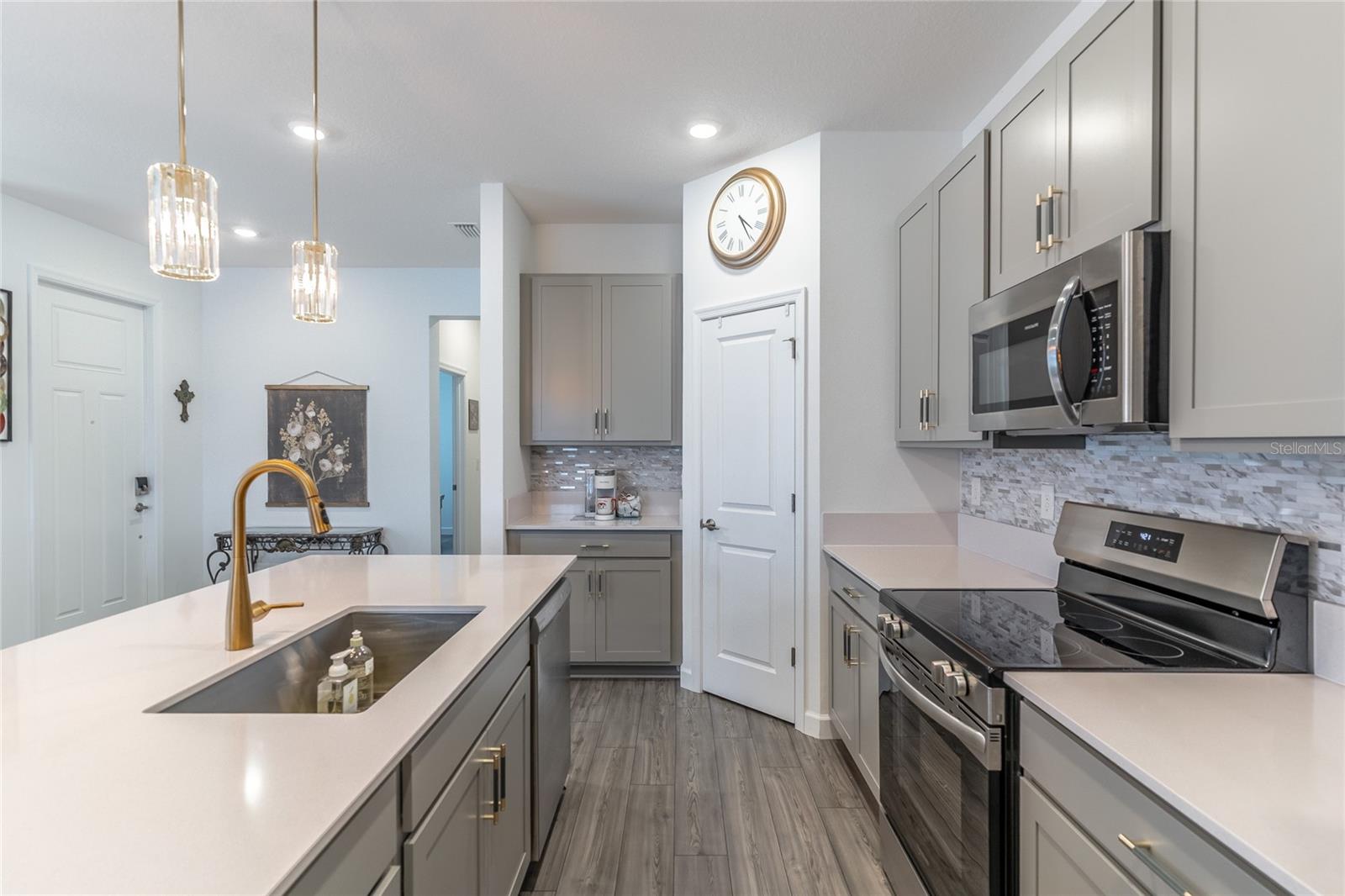 MOVE-IN NOW! This Azalea floorplan by Lennar is a stylishly UPGRADED Resale Home - Save Time, Money, and Hassle! This less than one-year-old home features luxury vinyl floors and a screened rear patio with beautiful water views. Enjoy the peaceful, no-through street and lawn care included in this active community featuring resort-style amenities. Amenities include a clubhouse, pool, movie theater, dog park, tennis & pickleball courts, putting green, walking/golf cart paths, fishing ponds & more. Step inside for a modern take on a classic design, featuring an open floor plan that seamlessly connects a modern kitchen, dining area & great room for easy living.A stylish kitchen with backsplash, new hardware, modern ceiling fans, impact windows and slider, and concrete block construction. The split layout and a flex-space are perfect for an office, pet room, or storage. Discover how luxurious life can be