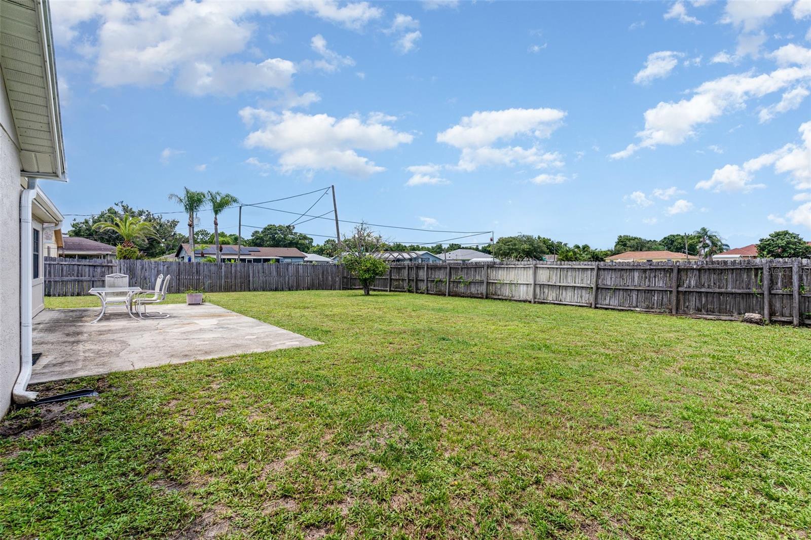 Fall in Love with Comfort, Style, and Space in Port Malabar! Welcome home to this beautifully maintained 3-bedroom, 2-bathroom retreat, perfectly combining comfort, modern updates, and everyday charm. Nestled on a fenced-in corner lot that spans nearly 1/3 acre, this property offers plenty of room to relax, garden, or entertain under Florida’s sunny skies. Step inside to discover cathedral ceilings that create an open, airy feel, complemented by fresh flooring and baseboards throughout. Thoughtful upgrades include a new A/C (2025) and roof (2021) for peace of mind, along with a remodeled guest bath and modern appliances—plus a washer and dryer included, so you can move right in and start enjoying your new home. Enjoy your mornings with coffee on the private back patio, or gather with friends for weekend BBQs in the oversized, fenced yard—a perfect space for kids, pets, or simply soaking up the sunshine. Tucked away in a quiet, welcoming neighborhood yet close to all the conveniences of Port Malabar, this home offers the perfect blend of privacy, comfort, and convenience. Come see it today and fall in love with the lifestyle it offers!
