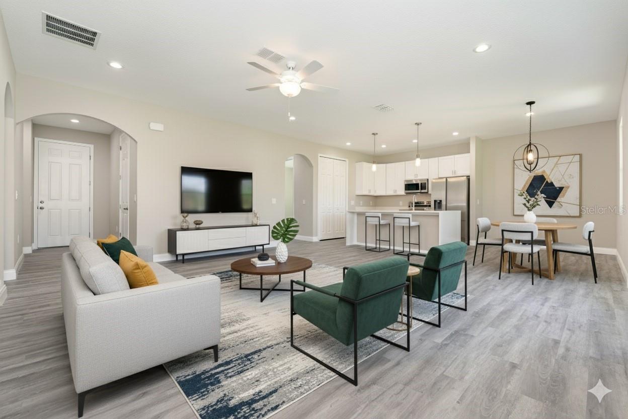 Under Construction. SPECIAL INTEREST RATES AVAILABLE, FLEX CASH OR NO CLOSING COST LOANS AVAILABLE. One or more photo(s) has been virtually staged—New Construction. This Luxurious 4-bedroom, 2.5 Bath Property is exquisitely built with all of the upgrades nestled in the heart of Palm Bay. Inside you will find a wonderfully open floor plan perfect for gatherings and entertaining. The capacious Chef's Kitchen is stylishly equipped with an island, solid wood cabinets, stainless steel appliances and ample storage. The contemporary living space is bursting with natural light and a flowing layout that is inviting and relaxing. Luxuriate in the vast Primary Suite that offers a collection of modern conveniences. This beautiful house is full of INCLUDED upgrades: solid wood soft close cabinets in the kitchen and in the bathrooms, luxury vinyl plank flooring (no carpet), and floor-to-ceiling tiles in the showers, bathroom niches, granite countertops in the kitchen and baths, 9'4'' ceilings, 8-foot doors, luxury handles, and an electric garage.