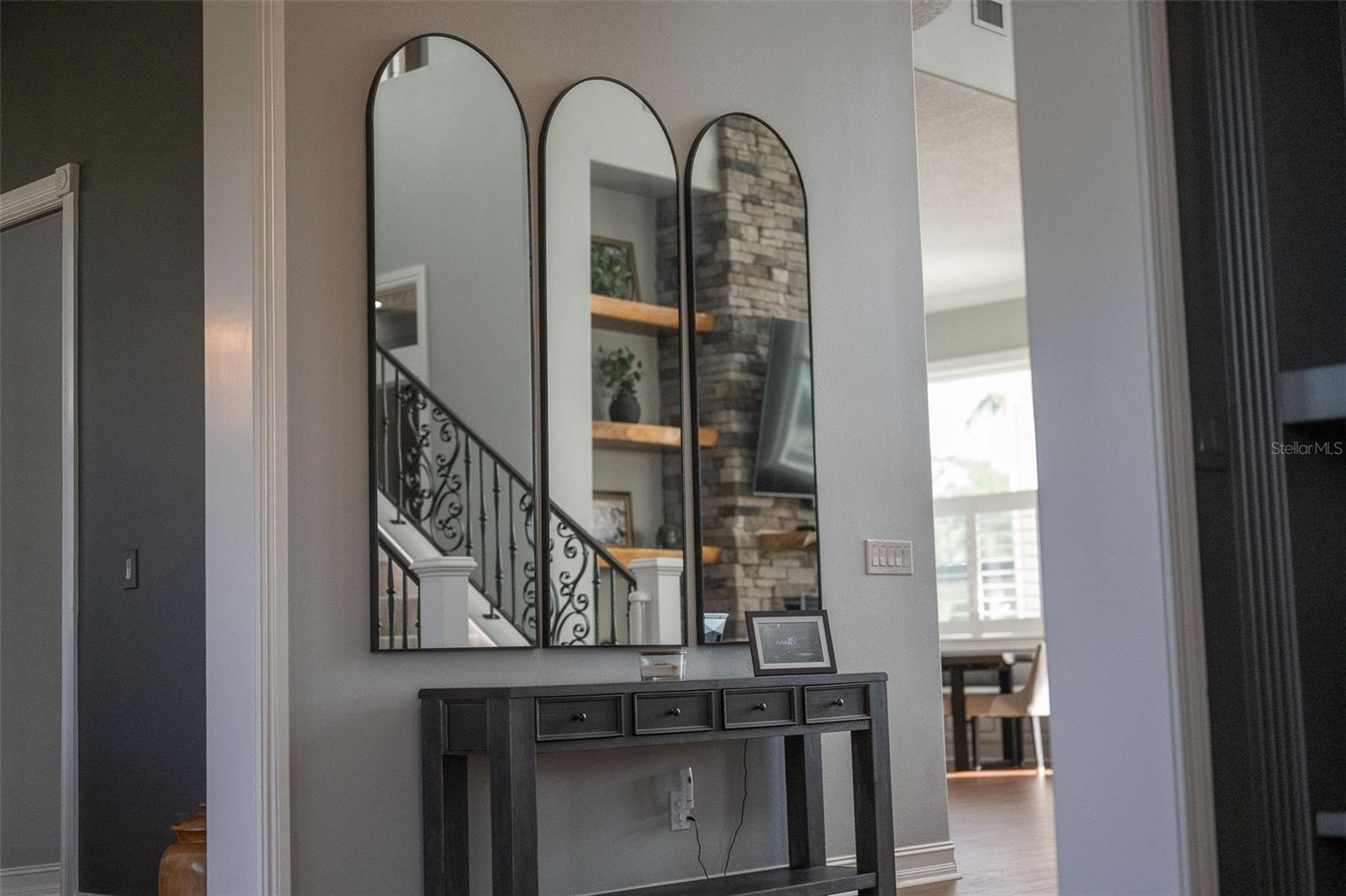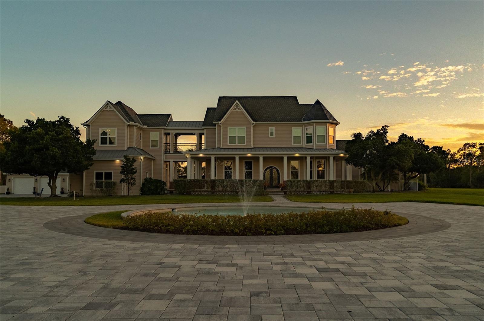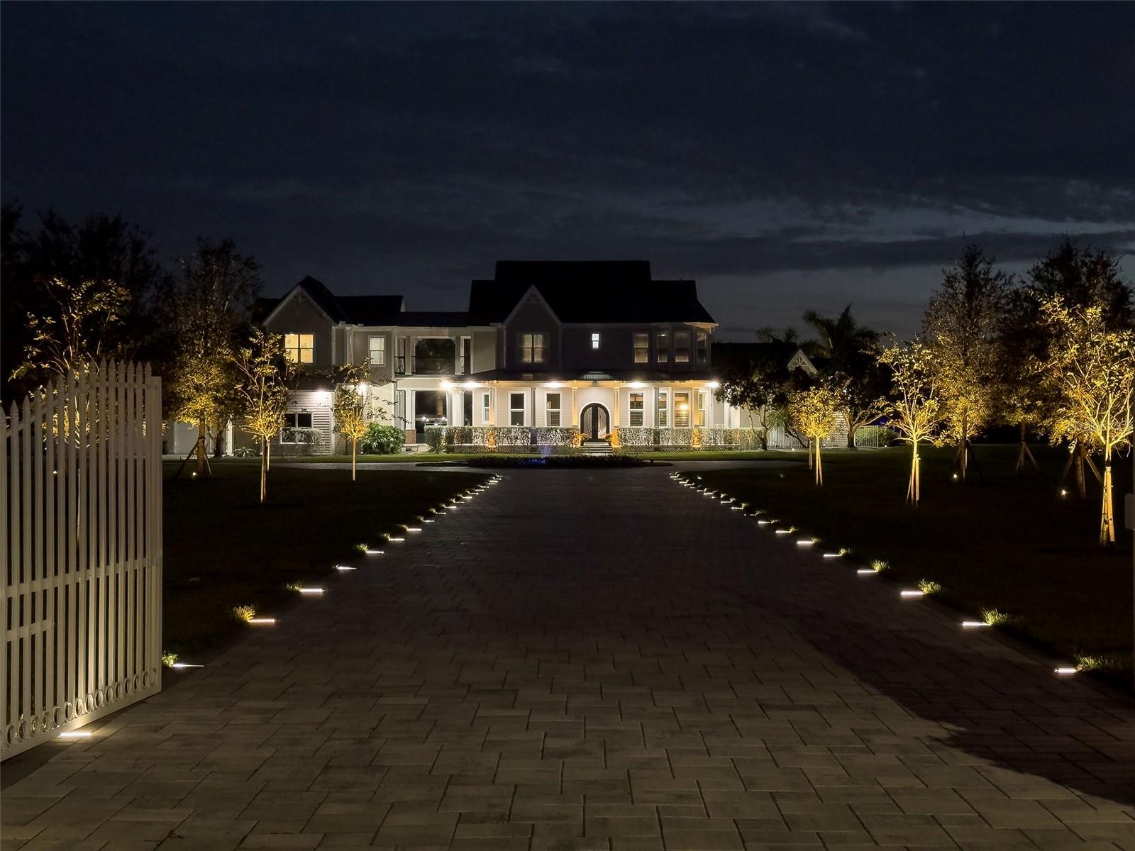 Overlooking the pool as well is a massive billiards and entertainment wing, outfitted with a full kitchen, bath, and lounge space perfect for game days, parties, and gatherings. Outside is where this estate becomes truly unforgettable. The world-famous pool shaped like Mickey Mouse offers resort features including sunken dry seating areas, beach entry, hot tub, swim-up bar, and multiple water features. The expansive patio includes a covered bar and outdoor kitchen, a fire pit, and two swinging daybeds beside a custom fireplace, all positioned to take in the spectacular sunsets over the lake. With 18 fully fenced and gated acres of gently rolling land, this property is a dream for outdoor enthusiasts. Ideal for horses, ATVs, side-by-sides, paddleboards, jet skis, and more, the estate even includes a paved go-kart track tucked away at the back of the property. You also can enjoy pickleball and basketball on the lighted court! And with two separate three-car garages, there's no shortage of space for all your toys. Finished with mature landscaping and custom exterior lighting, this property transforms beautifully at night, becoming a glowing private oasis. This is a one-of-a-kind estate that must be seen to be fully appreciated, an entertainer's paradise, a family retreat, and a luxury escape all in one. This property is also approved for short-term rentals, so if you're looking for an income producing investment, the options are limitless here.