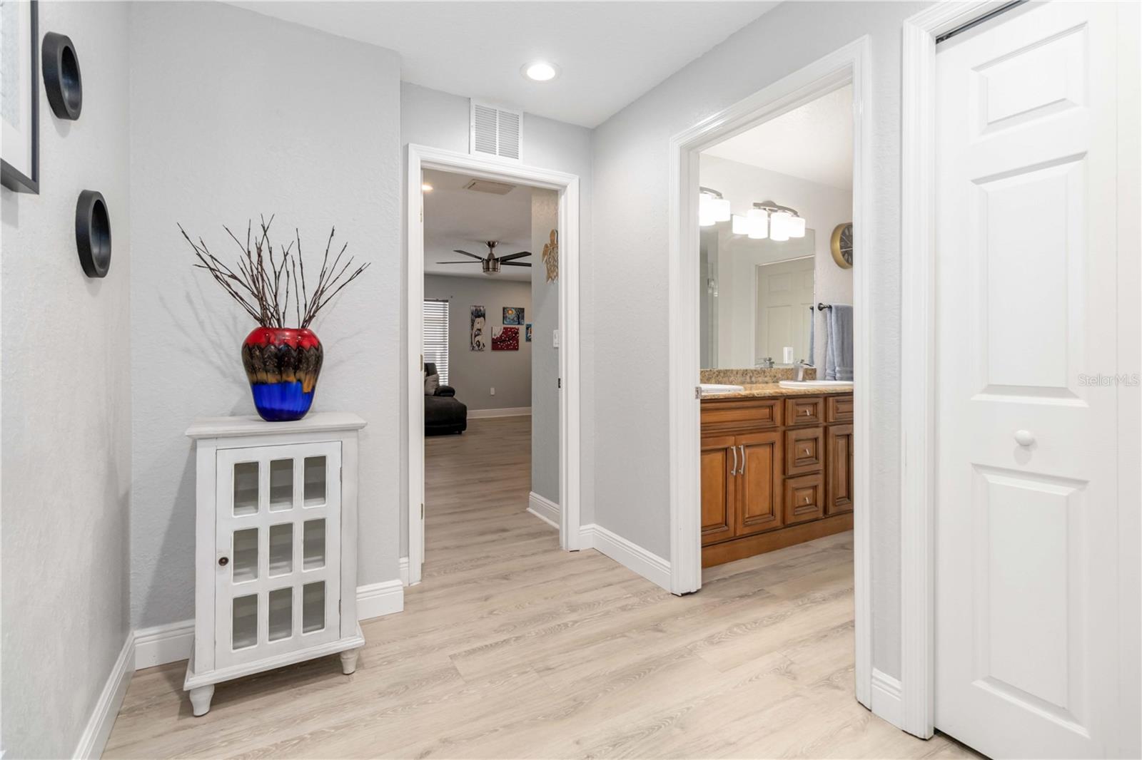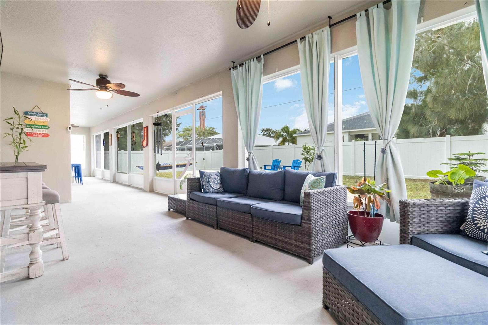 Welcome home! This move-in ready home is centrally located in Palm Bay, and fully updated offering comfort & convenience. The roof was redone in 2021, septic was redone a few years ago, new stove and refrigerator in 2025, new fire pit in 2025 & new fence in 2022, make this home truly turnkey. Enjoy screened front and back porches (added in 2022) which are perfect for entertaining or relaxing with family & friends, bug-free. Large kitchen is a chef's dream & the heart of the home with stainless appliances & granite countertops. The first-floor owner's suite features a spa tub and tiled walk-in shower. Upstairs you’ll find two oversized bedrooms & a guest bath with double vanity & a walk-in tiled shower. Luxury vinyl plank flooring throughout the entire home, no carpet. Plenty of storage PLUS a laundry room off the patio. 2 car garage. No HOA! Centrally located near shopping, dining, 5 min to Turkey Creek where you can walk the boardwalk & enjoy nature & wildlife, 2 min to Goode Park where you can launch kayaks & 20 min to the beach!
