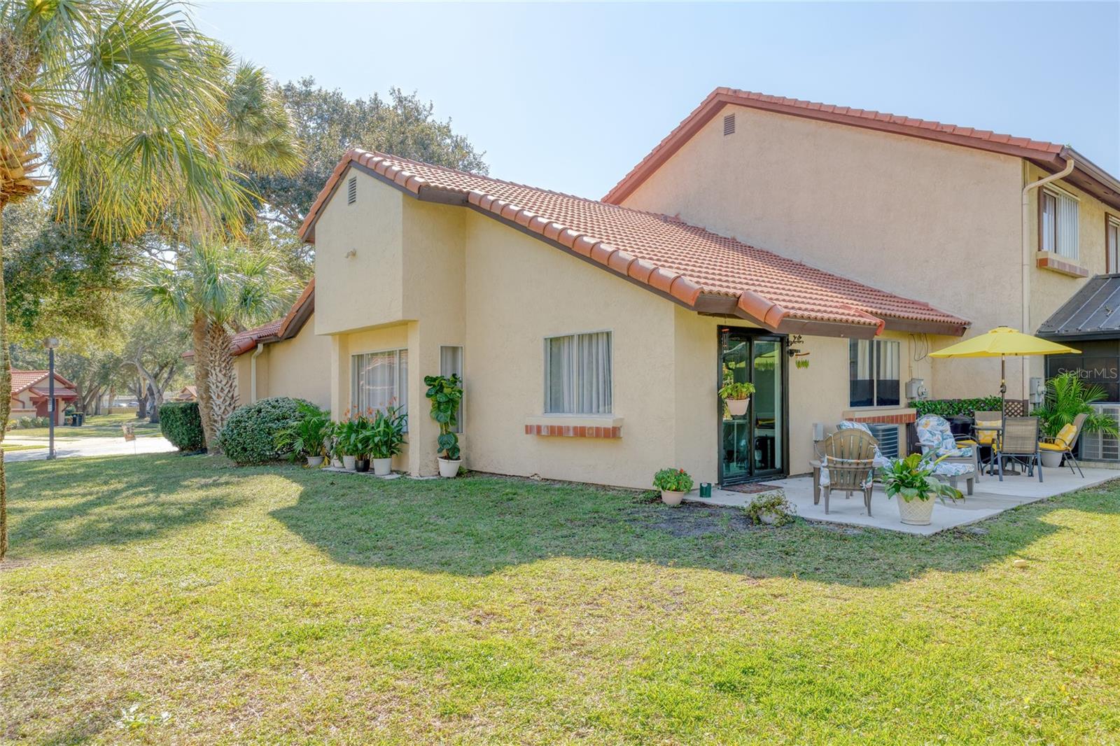 Roof 2024, Impact Slider 2021, New Panel & Breakers 2020, AC 2020, Water Heater 2025. Welcome to this beautifully maintained end-unit townhouse in a sought-after, resort-style community! Enjoy multiple recent upgrades including new washer & dryer, kitchen sink and refrigerator, garage door keypad, reverse osmosis filtration system, fresh interior paint, and a newly added back patio perfect for outdoor relaxation. This end unit offers extra privacy with a large grassy area between neighboring homes and sits along tree-lined streets that create a peaceful atmosphere. Conveniently located near shopping, hospitals, restaurants and easy access to I-95 for commuters. The community features fantastic amenities including a heated pool, tennis court, shuffleboard, and clubhouse. Move-in ready and easy to love!