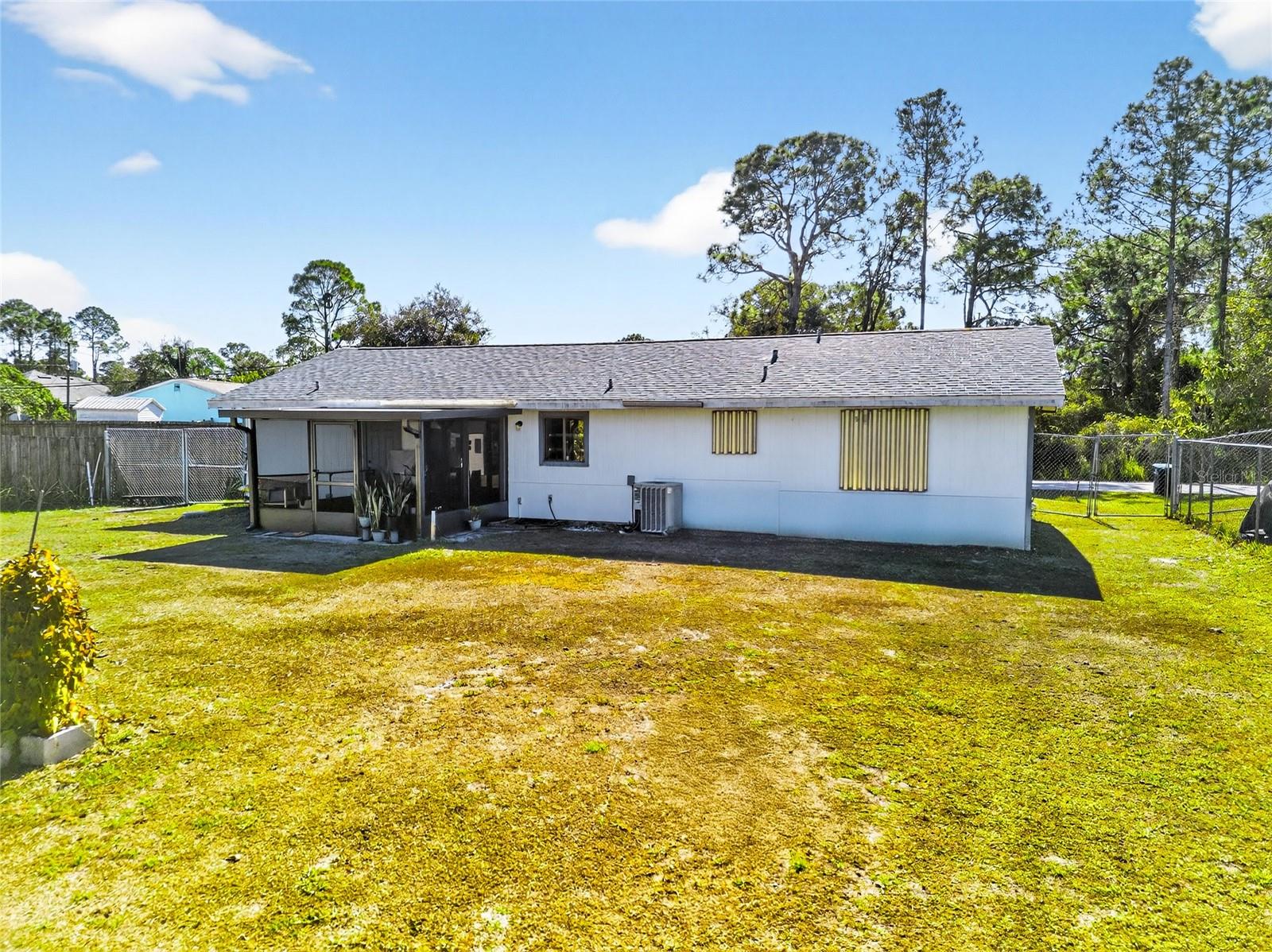 Welcome to this well-maintained 3-bedroom, 1-bath single-family home offering 1,025 sq ft of living space on a spacious 0.27-acre lot. Built in 1982, this home features an asphalt shingle roof and an attached one-car garage. Major systems, including the roof, HVAC, electrical, and plumbing, are in good condition, providing the next owner with peace of mind. Recent updates include fresh interior paint and a newly added screened porch, perfect for enjoying Florida living. The fenced backyard offers ample space for outdoor activities, pets, or entertaining. Conveniently located in Southeast Palm Bay near major roadways, shopping, and daily amenities.