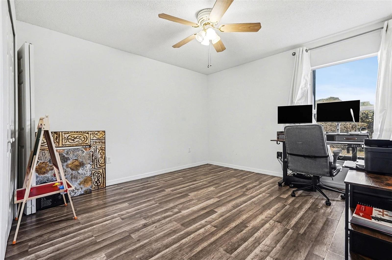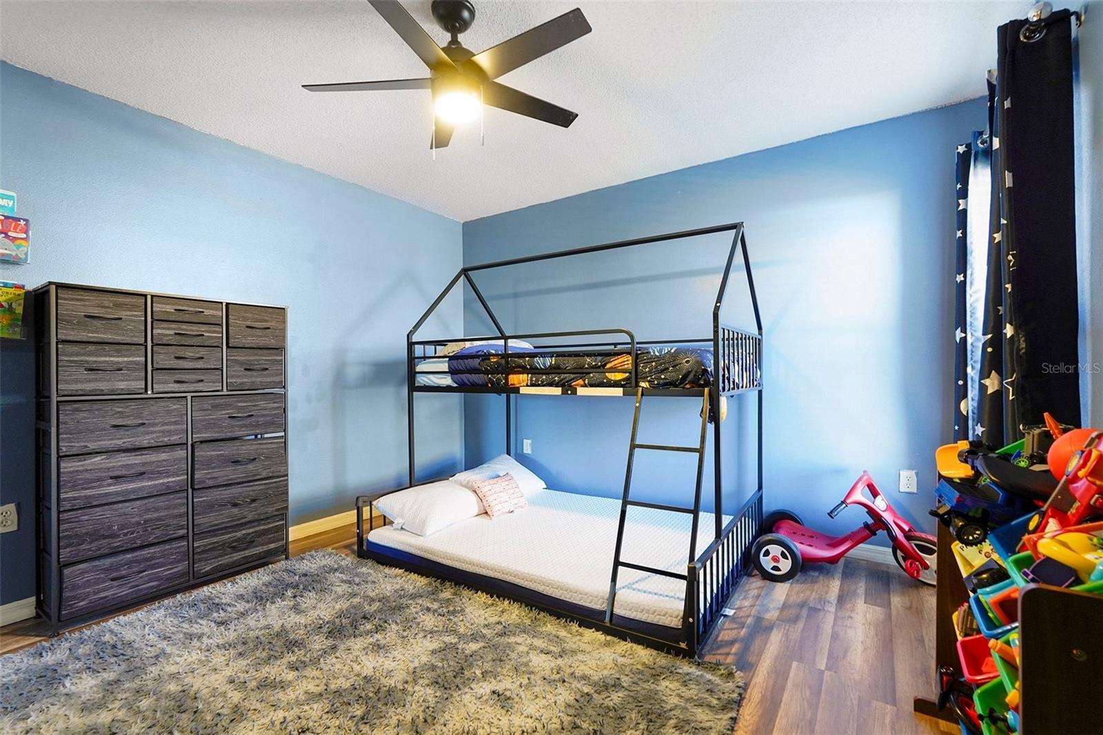 This SINGLE FAMILY RESIDENCE in the heart of Palm Bay, FL, offers a highly functional SPLIT BEDROOM FLOOR PLAN designed for maximum privacy. The interior features a SPACIOUS KITCHEN and a versatile LIVING/DINING ROOM COMBO that serves as the perfect hub for daily life and entertaining. The primary retreat is highlighted by a dedicated PRIVATE WALK-IN CLOSET, ensuring ample storage. Elegant ENGINEERED WOOD FLOORING flows through the main living areas, adding a modern touch to the home. The property provides a secure and quiet FENCED BACKYARD for outdoor enjoyment. Practical amenities include a 2-CAR GARAGE and professional HURRICANE SHUTTERS for peace of mind. Located near top-rated schools and the beautiful Space Coast beaches, this home is ready for its new owners to move in and enjoy.