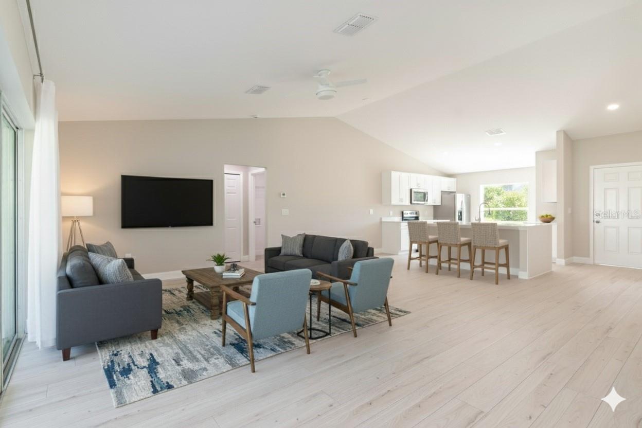 NO CLOSING COST LOANS AVAILABLE | NEW CONSTRUCTION Experience modern luxury in this exquisitely crafted 3/4-bedroom, 2-bath residence located in the heart of Palm Bay. Designed with an open-concept flow, the home features a Chef's Kitchen complete with a granite prep island, solid wood soft-close cabinetry, and premium stainless steel appliances. The spacious layout is bathed in natural light, leading you to a massive Primary Suite designed for ultimate relaxation. This home is defined by its high-end, included upgrades: Flooring: Luxury Vinyl Plank throughout (no carpet!). Bathrooms: Floor-to-ceiling shower tile, custom niches, and granite vanities. Details: Solid wood cabinets, designer hardware, and an electric garage opener. Note: One or more photos have been virtually staged.