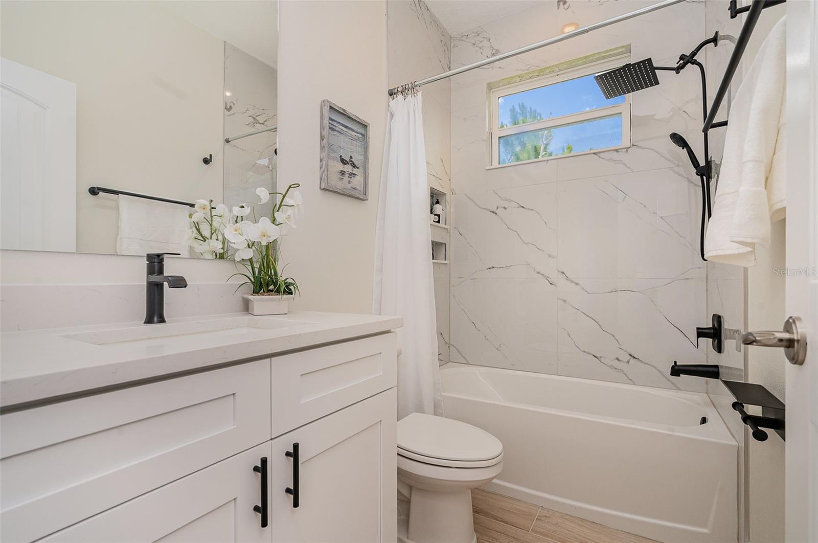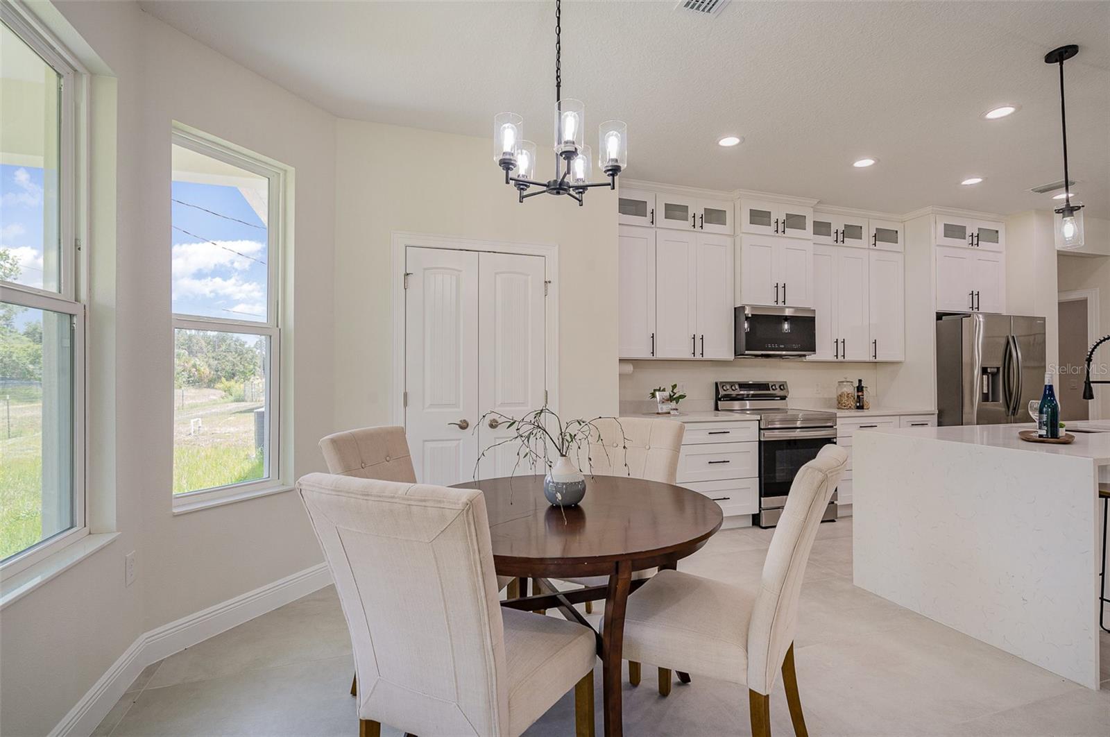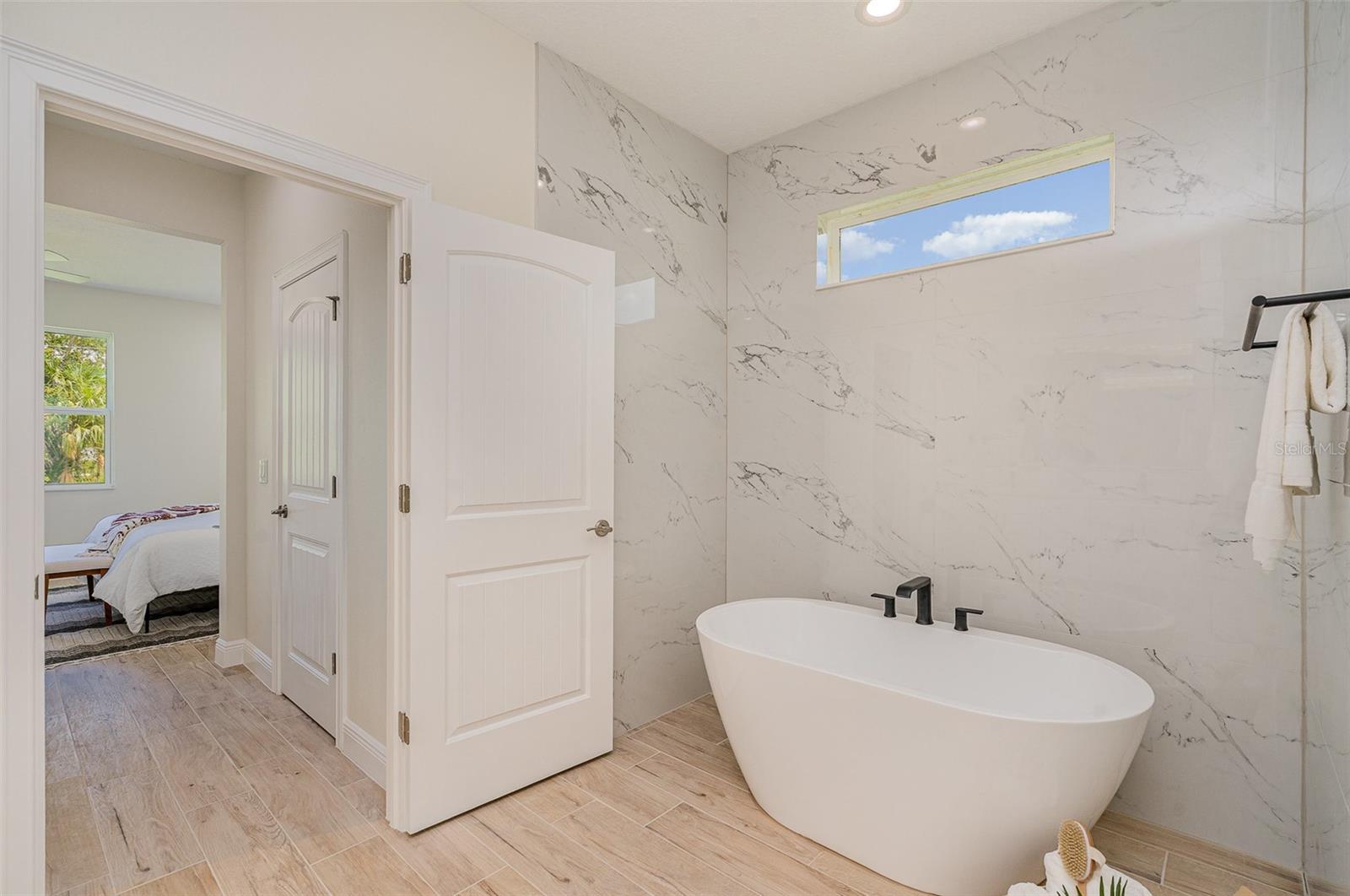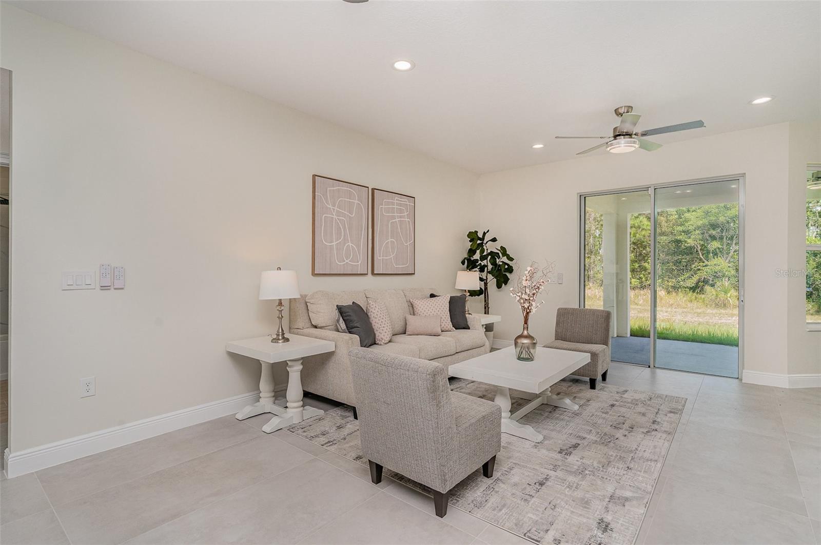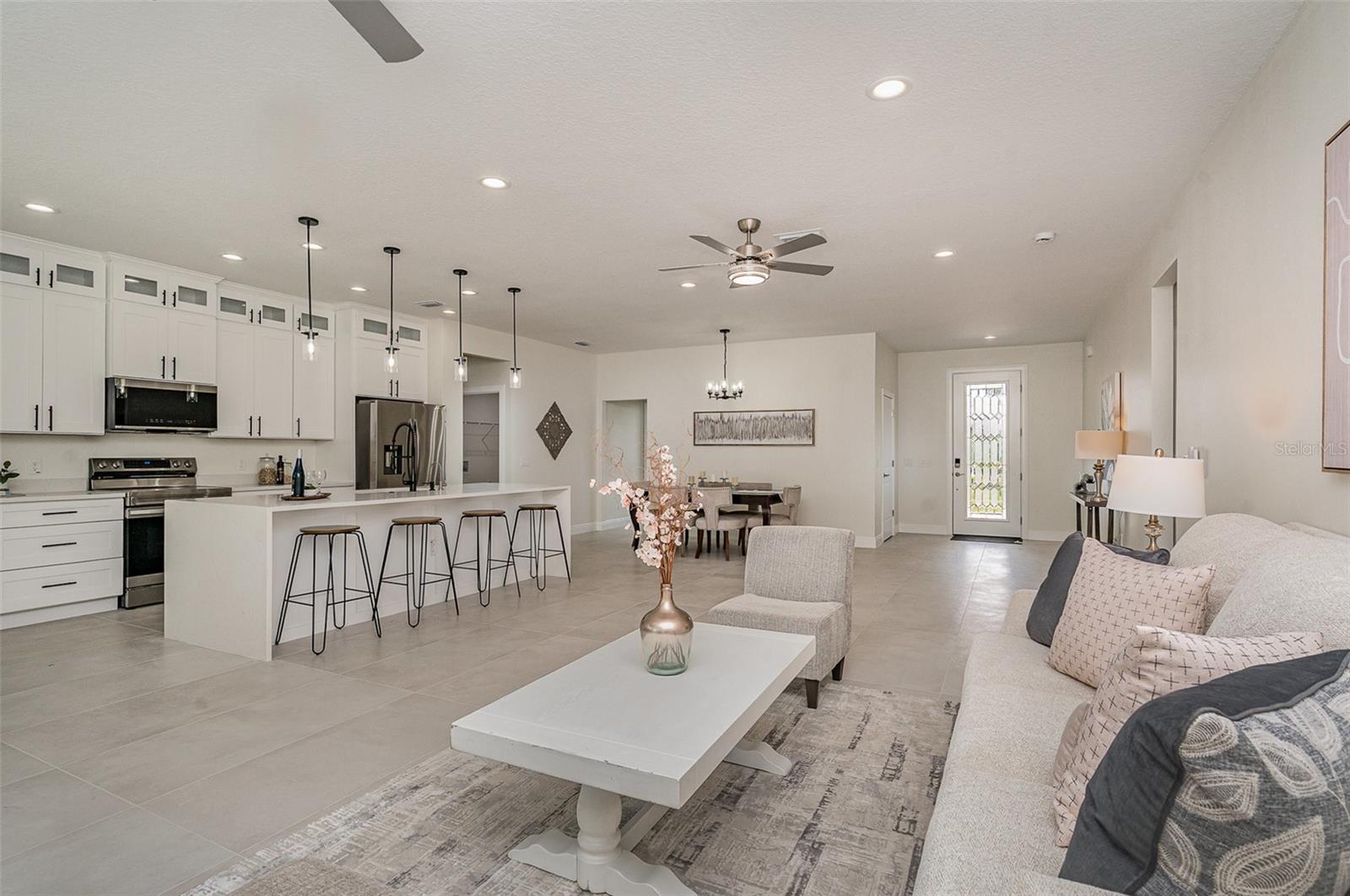 One or more photo(s) has been virtually staged. Every home has a story, but this one feels like it's been waiting just for you. Positioned on a desirable corner lot, its striking stone façade and inviting entrance create an instant sense of welcome. Step inside and you're surrounded by light and space, with soaring 9.4-foot ceilings and elegant 8-foot doors setting the tone for modern living. At the heart of the home, the kitchen takes center stage a nine-foot quartz island ready for morning coffee, holiday meals, and late-night conversations. Porcelain tile flows seamlessly throughout, leading you to the owner's suite where a spa-inspired bath with a freestanding soaking tub and walk-in shower offers the perfect escape. Quality details are everywhere from the premium water treatment system with reverse osmosis to the epoxy-coated garage floor and freshly painted porches designed for enjoying Florida's warm days. This isn't just a place to live it's where your next chapter begins