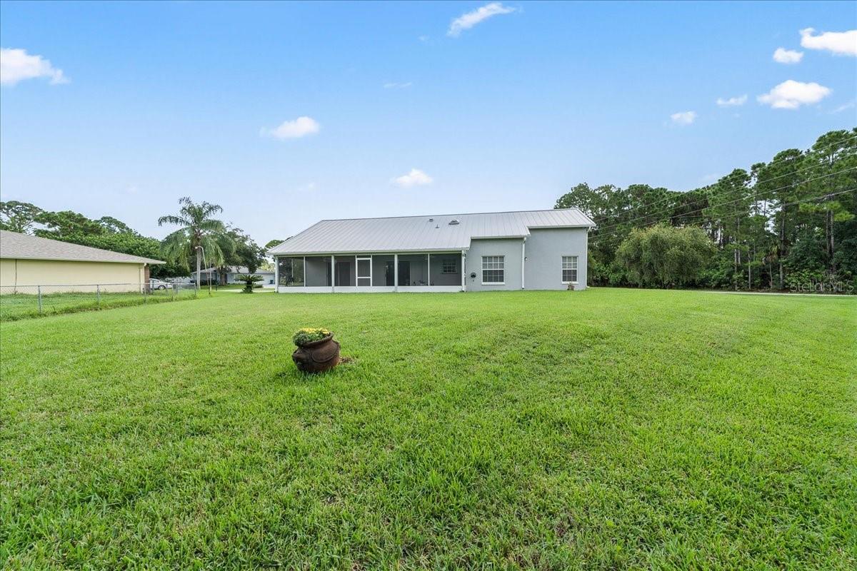 Welcome to this stunningly renovated 3BR/2BA gem on a sprawling .44-acre lot in sought-after Palm Bay! This move-in-ready home boasts a durable steel roof and new gutters with Leaf Filter covers (transferable lifetime warranty included). Peace of mind continues with a newly installed culvert for superior drainage. Inside, enjoy a fresh, modern aesthetic with new paint and flooring throughout. The heart of the home features a fully updated kitchen and beautifully renovated bedrooms designed for comfort. Step outside to your private oasis: a massive back porch featuring premium sealed pavers, perfect for entertaining. Quiet neighborhood vibes meet modern luxury in this must-see retreat. Schedule your showing today—this one won't last!