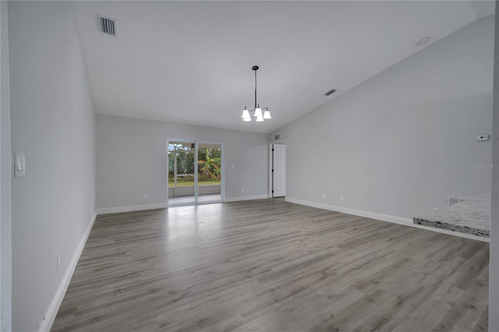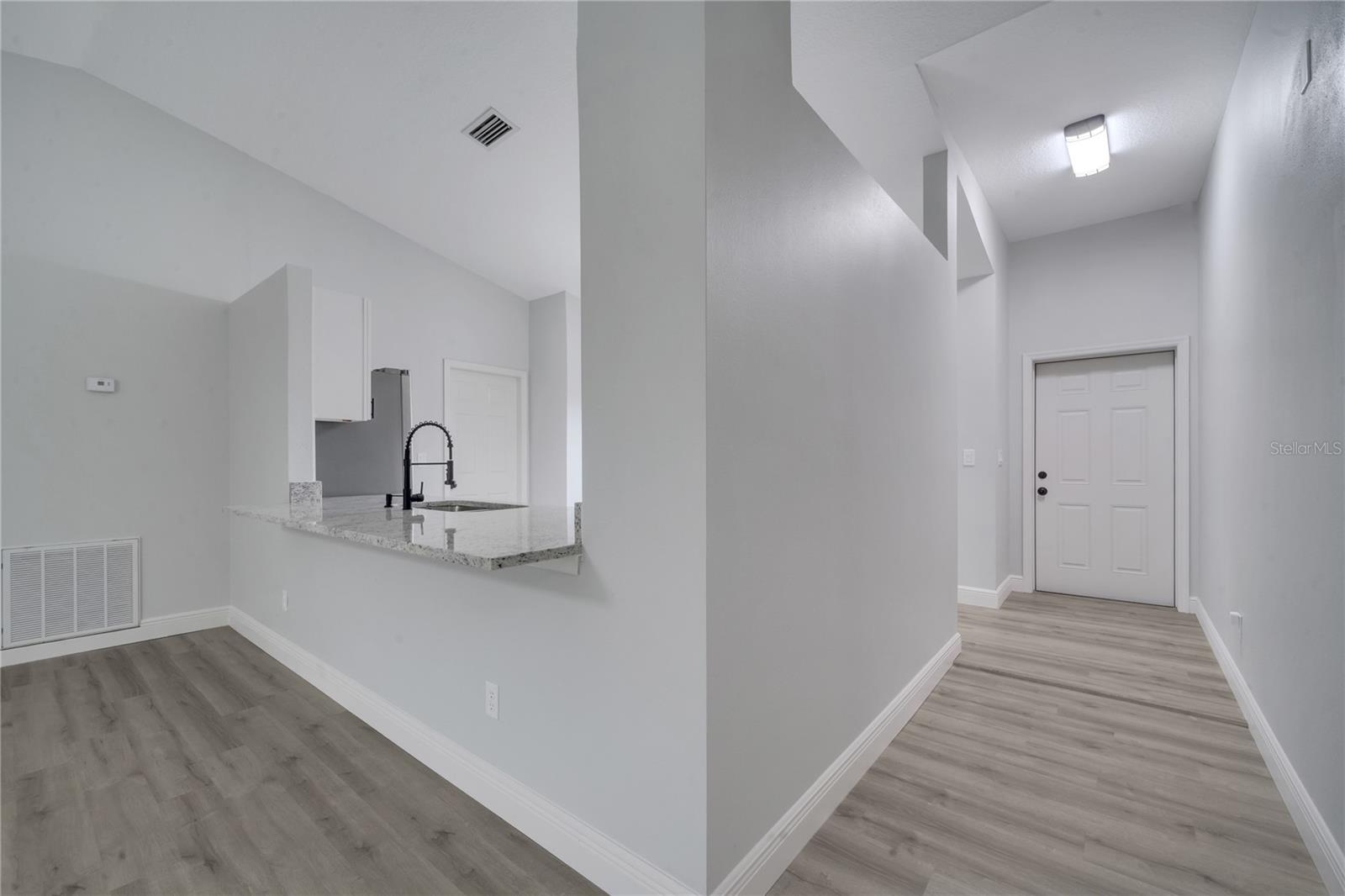 One or more photo(s) has been virtually staged. Step into this beautifully renovated home that feels like new! Fresh paint inside and out gives this residence a modern and welcoming feel. The brand-new sliding door seamlessly connects the living area to the screened rear patio and backyard, bringing in ample natural light. Elegant new flooring throughout adds style and durability to every room. The updated kitchen boasts sleek new appliances and contemporary finishes, perfect for culinary enthusiasts. Newly installed interior doors enhance the home's modern aesthetic. Stylish new light fixtures and lamps brighten every corner with warmth. Both bathrooms have been fully updated with modern vanities and finishes for a hotel-like experience. The garage floor has been freshly redone, offering a clean and polished look. A spacious layout provides comfort and functionality for your family. Enjoy peace of mind with thoughtful upgrades throughout the property. Every detail has been carefully considered to make this home move-in ready. The modern updates blend style and convenience effortlessly. Located in a prime neighborhood, you'll love the proximity to shopping, dining, and schools. This is your chance to own a stunning, renovated home — don’t miss out!