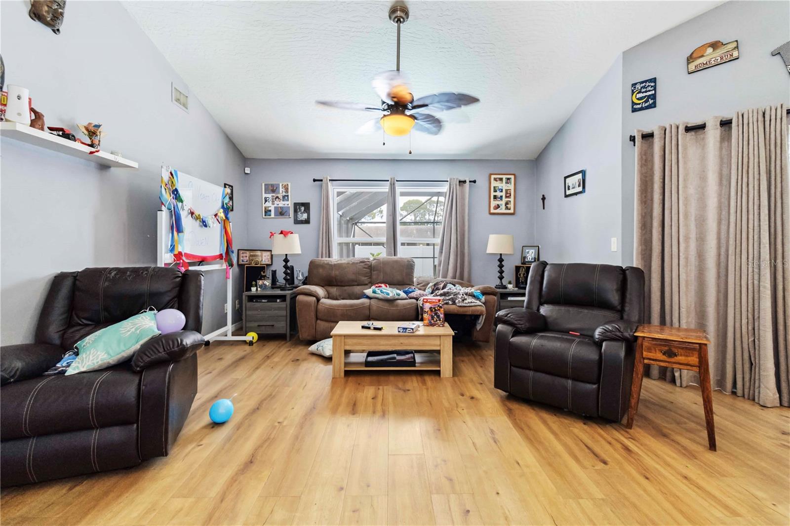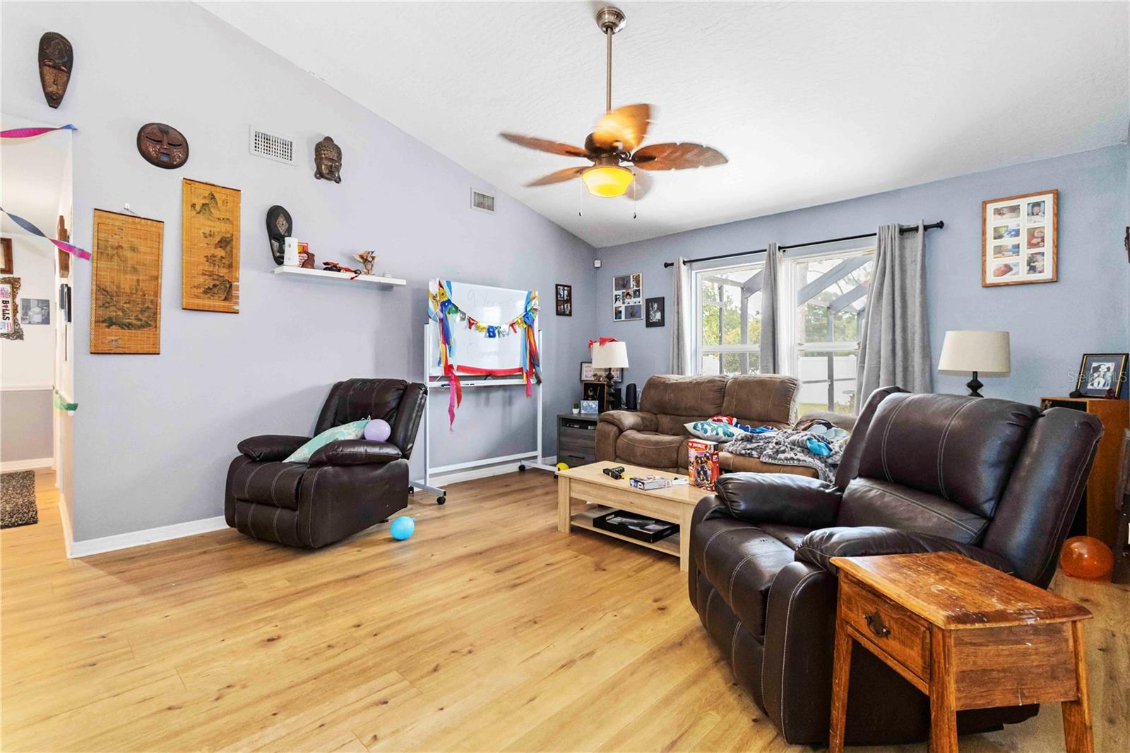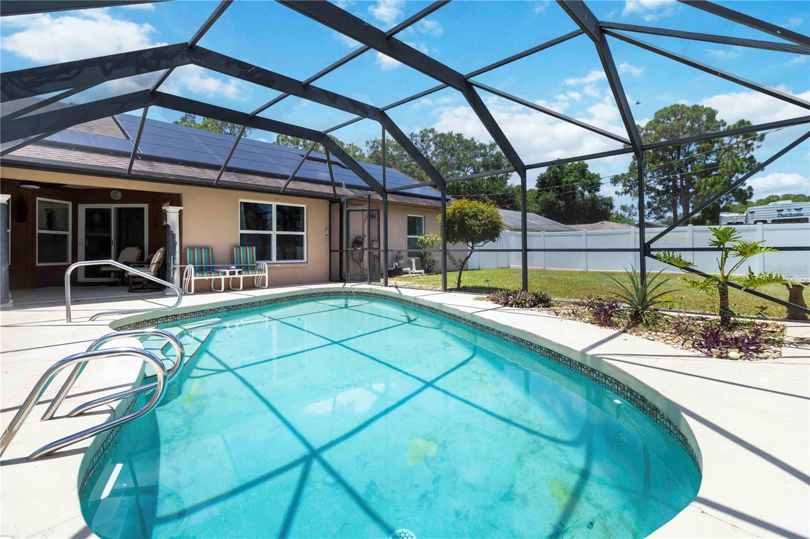 Palm Bay Pool Home! This charming 3-bedroom, 2-bath residence offers a spacious living and dining area, plus an eat-in kitchen featuring stainless steel appliances —perfect for the avid cook. Double-paned, tinted vinyl windows and slider, as well as the water heater, were replaced in 2015. The roof was replaced in 2018, and both bathrooms have been tastefully remodeled. Ceilings feature skip trowel texture, and the screened pool enclosure has been updated. Enjoy your private backyard oasis complete with a covered patio for entertaining, a sparkling pool for relaxing, and a vinyl fence for added privacy. Conveniently located with easy access to St. Johns Heritage Parkway.