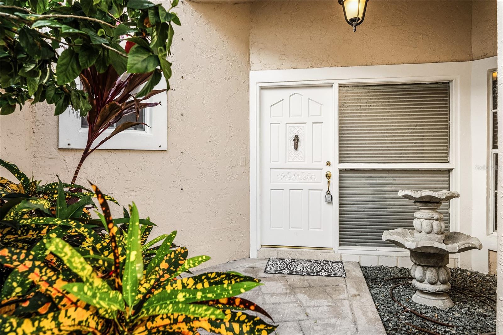 Beautifully maintained single-story home with fabulous green views of the 15th tee of the Fazio Course, surrounded by majestic oak trees. Situated on a desirable lot in the exclusive Barclay Club at PGA National, this residence offers a country club lifestyle ideal for year-round or seasonal living. A welcoming courtyard entry with a stately fountain sets the tone as you arrive. Upon entering, you’ll be greeted by an open floor plan featuring lovely neutral tile flooring throughout the main living areas. The casual family room boasts soaring ceilings and striking floor-to-ceiling built-in shelving, creating a bright and inviting space. The kitchen offers panoramic golf course views through sliding glass doors and features white cabinetry, a black appliance package, and a separate dining area that opens seamlessly to the family room, perfect for entertaining. The secondary bedroom includes newer neutral carpeting and high vaulted ceilings. The guest bath is equipped with a walk-in tub, ideal for enhanced safety and accessibility. Outdoor patios and decking provide a peaceful setting to relax or entertain while enjoying serene golf course views. This home has been exceptionally cared for by the owner, with recent updates including a new water heater (2025), A/C (2023), front door and sliders ’23 and Hurricane Armour Screens on all windows. Low HOA fees, no mandatory membership, and access to community amenities including a pool, golf, tennis, biking, and jogging paths. Ideally located just minutes from golf, fine dining, premier shopping, and pristine beaches.