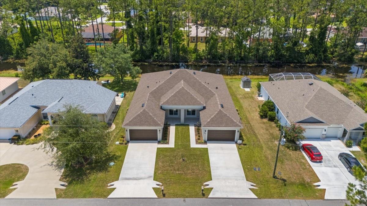 One or more photo(s) has been virtually staged. NEWLY BUILT, CONTEMPORARY, CUSTOM DUPLEX. Located in amazing cypress knoll neighborhood. This gorgeous duplex features on each side: 3 bed 2 bath and 2 car garage. Each side is 1538 SF Living space, 440 SF two- car garage, an OVERSIZED 640SF covered and tiled lanai As you enter, you’ll be captivated by its contemporary open plan design and features. Many upgrades: High 10’ ceilings with 12’ tray ceilings in living and the master bedroom, luxury vinyl floors, upgraded kitchen cabinets, quartz countertops, kitchen island, new stainless-steel appliances, walk-in master bath with double vanity, walk-in shower with a glass enclosure, walk-in master suite closet. The oversized, tiled covered porch is perfect for relaxing and entertainment. This home backs up to a freshwater canal which gives a wonderful feeling of privacy! Great location: Minutes to shopping, dining, Flagler Beach. Close to all major highways, hospitals, parks and schools.