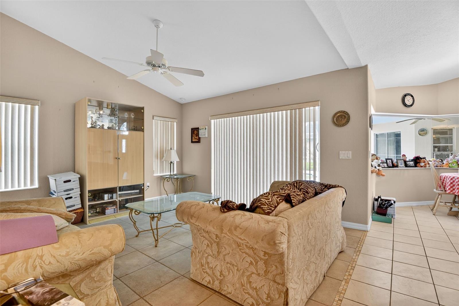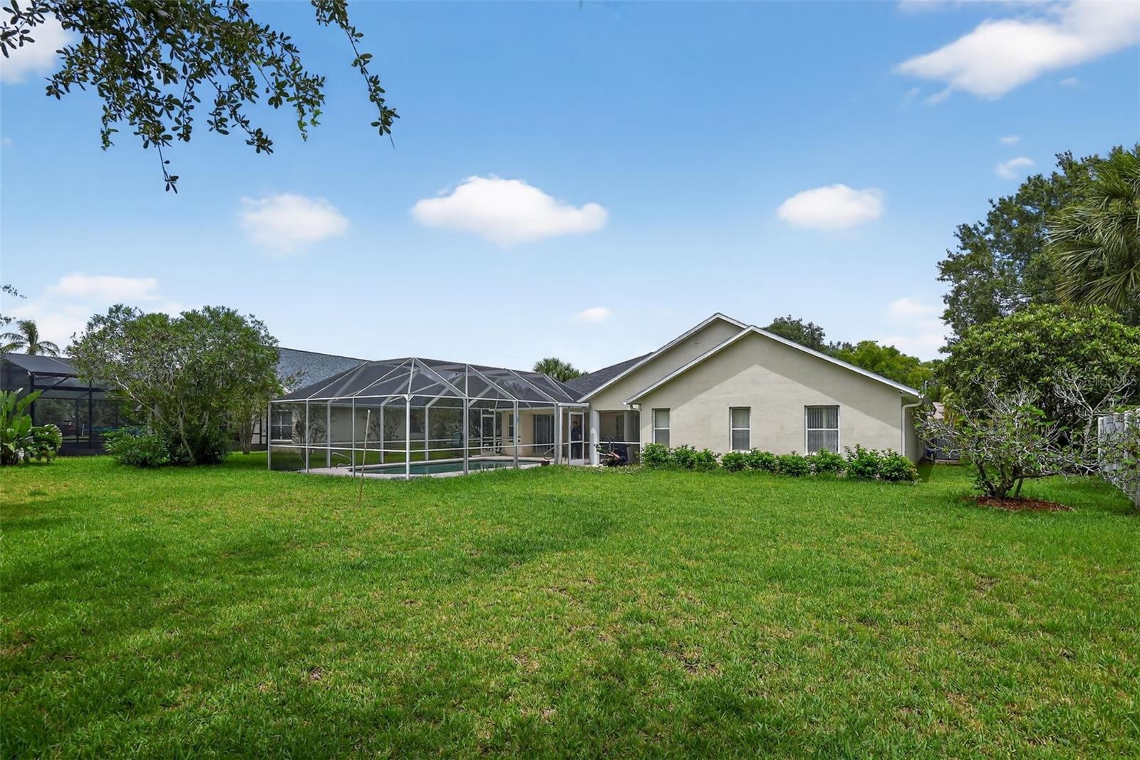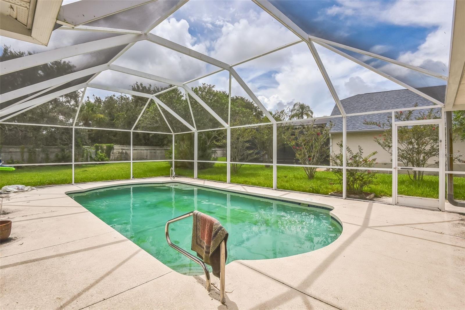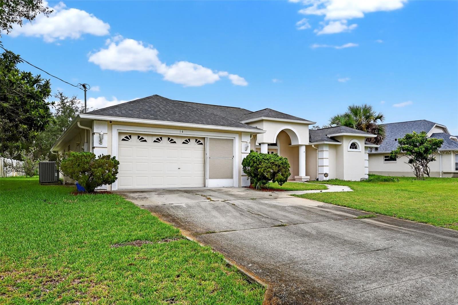 This 3 bedroom/2 bath home features 2,033 sq. ft. of living space. The home sits on a large 0.29-acre lot. The kitchen offers wooden cabinets, a pantry, and granite countertops. The living room is carpeted while bedrooms feature walk-in closets. Bathrooms include double sinks, wooden cabinets, and an extra storage closet. The front yard is landscaped with a 1-car garage while the backyard offers a covered patio connected to a screened swimming pool with a spacious yard. Subdivision: Palm Coast Sec 16