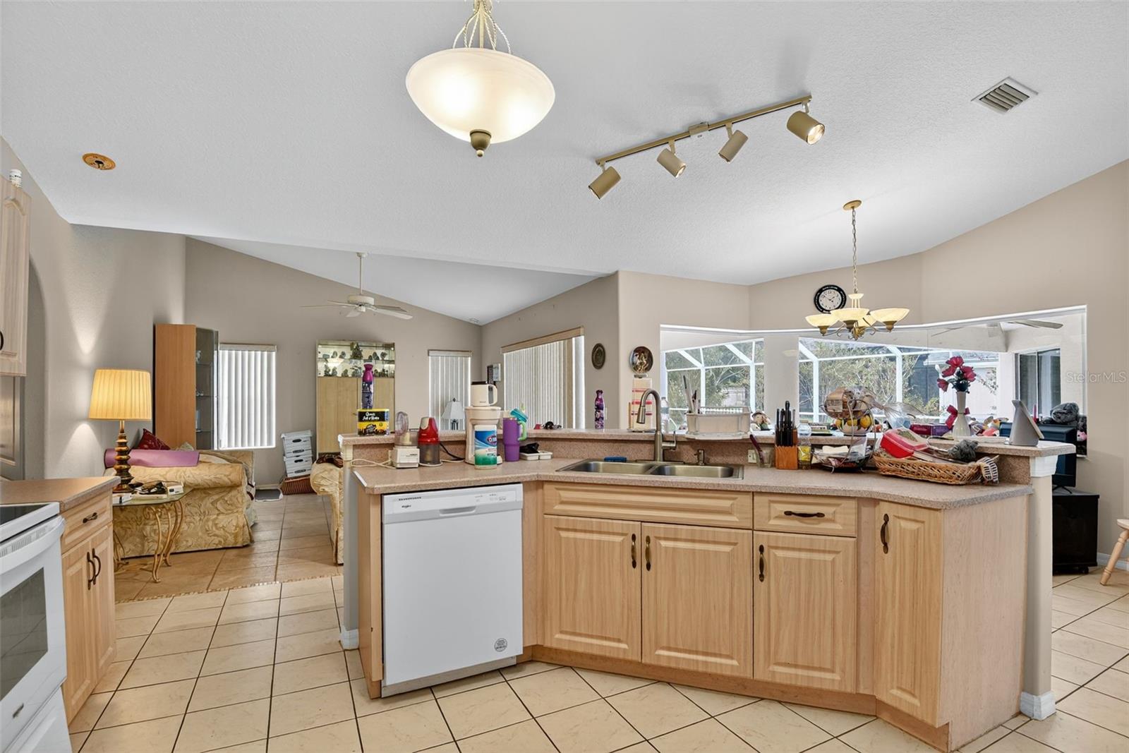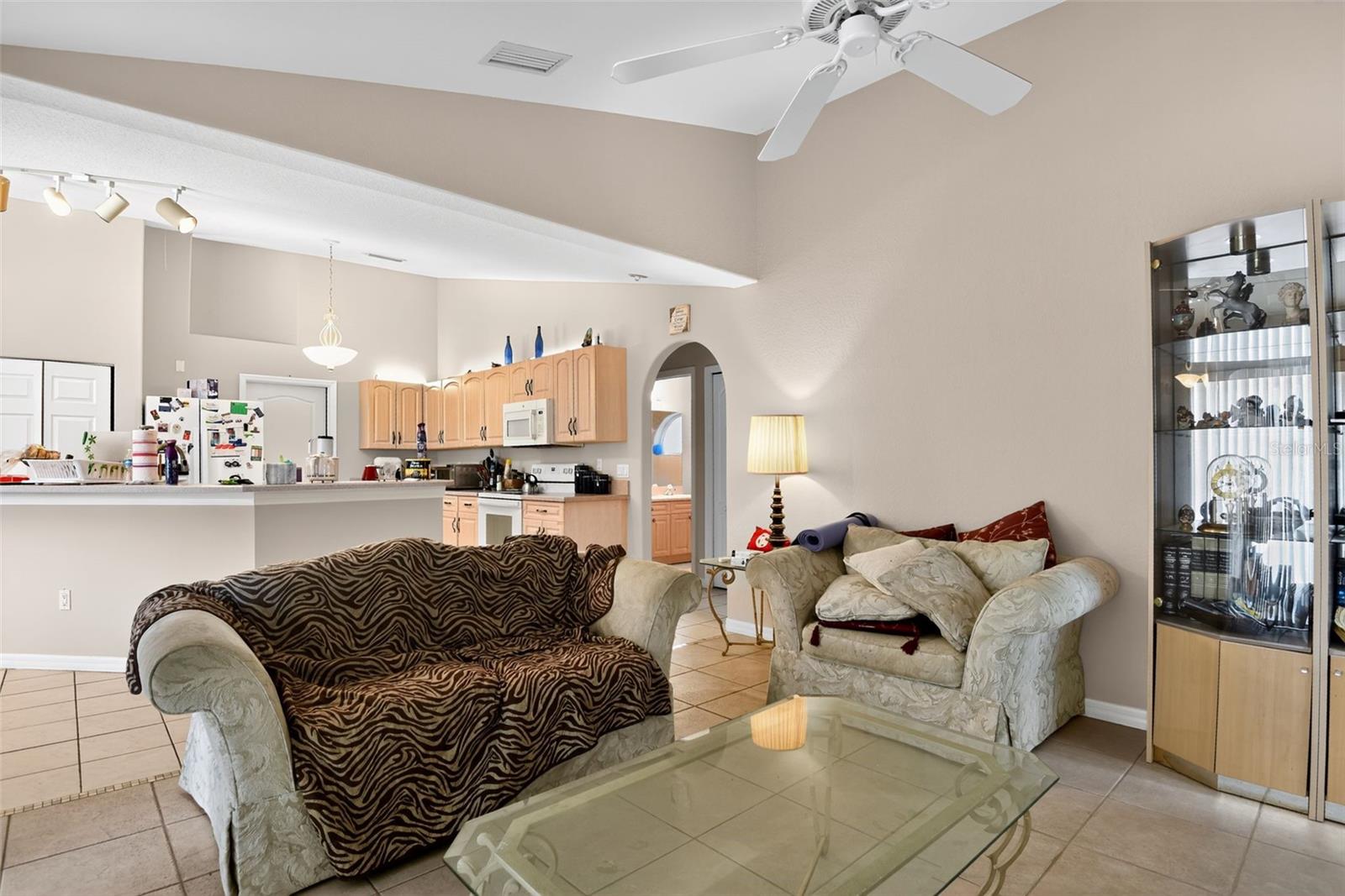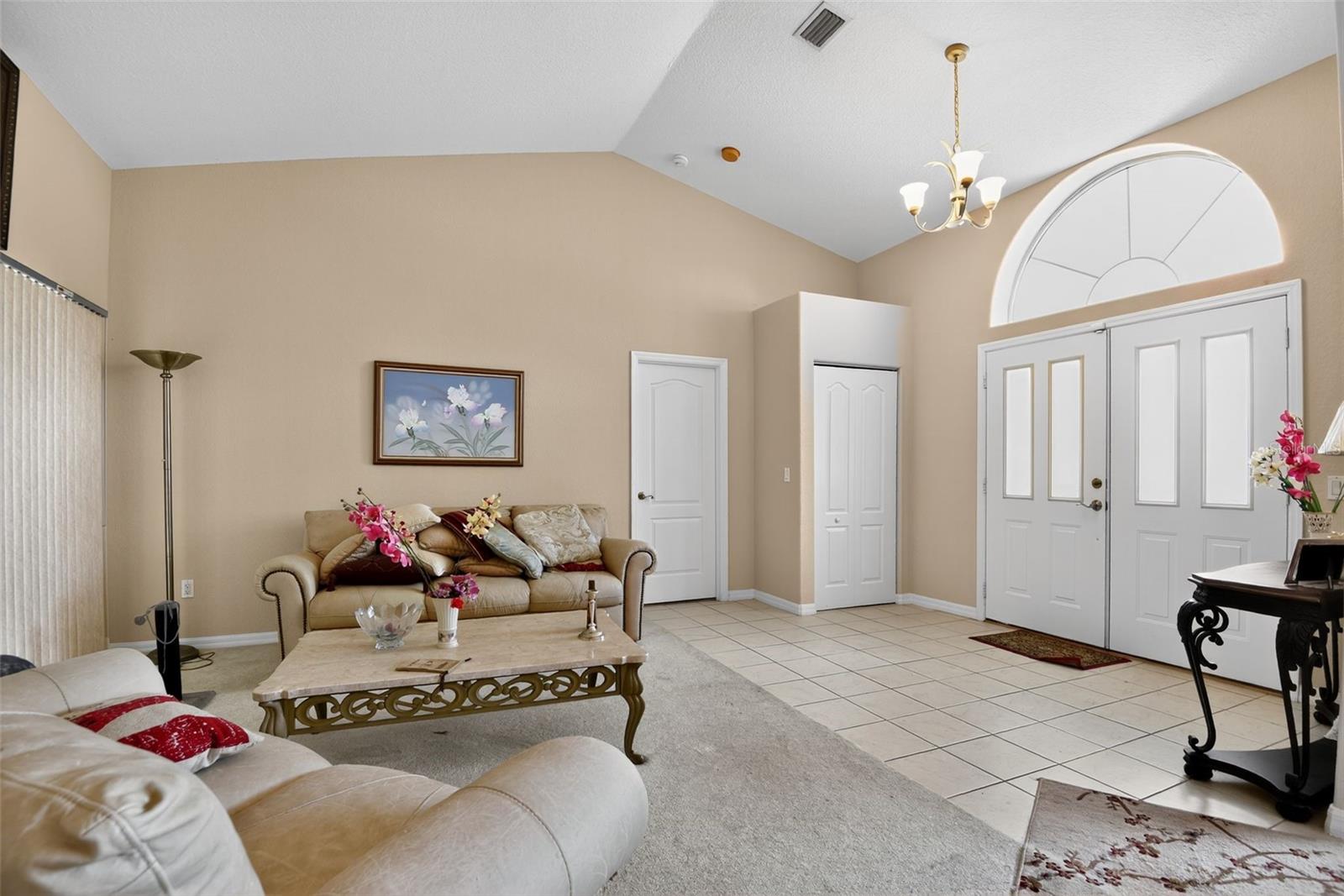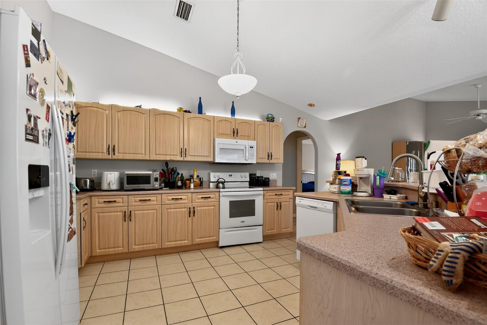 This 3 bedroom/2 bath home features 2,033 sq. ft. of living space. The home sits on a large 0.29-acre lot. The kitchen offers wooden cabinets, a pantry, and granite countertops. The living room is carpeted while bedrooms feature walk-in closets. Bathrooms include double sinks, wooden cabinets, and an extra storage closet. The front yard is landscaped with a 1-car garage while the backyard offers a covered patio connected to a screened swimming pool with a spacious yard. Subdivision: Palm Coast Sec 16