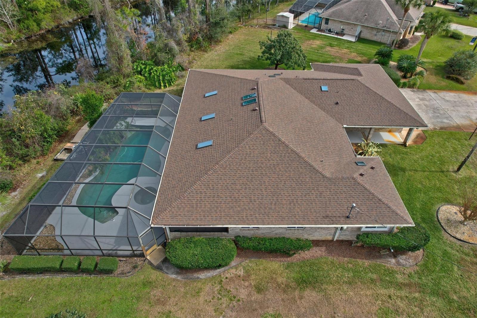 Explore the elegance of this well-built, four-bedroom, two-bathroom brick home, a former custom builder's masterpiece. Nestled on a freshwater canal across two lots this property offers abundant space for customization. Enjoy the split floor plan with wooden doors for guest privacy, and revel in the seamless indoor-outdoor transition with pocket doors leading to the inviting pool and hot tub. The outdoor living space, adorned with cedar and skylights, is a highlight, complemented by a swim-through feature connecting the spa to the pool and even a diving board. The master suite boasts expansive space, featuring a generously sized jetted tub and a massive walk-in shower. Designed with accessibility in mind, the house is fully handicap accessible, ensuring a seamless experience with no steps and wide hallways, providing both luxury and convenience. You will have peace of mind knowing this home has a brand-new roof and skylights. Along with tile flooring throughout, three car oversized garage for extra storage, and so much more! This home is ready to start enjoying. Schedule your showing today!