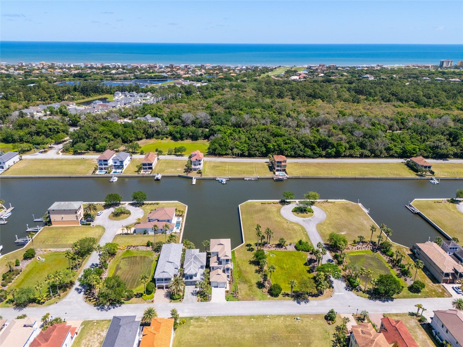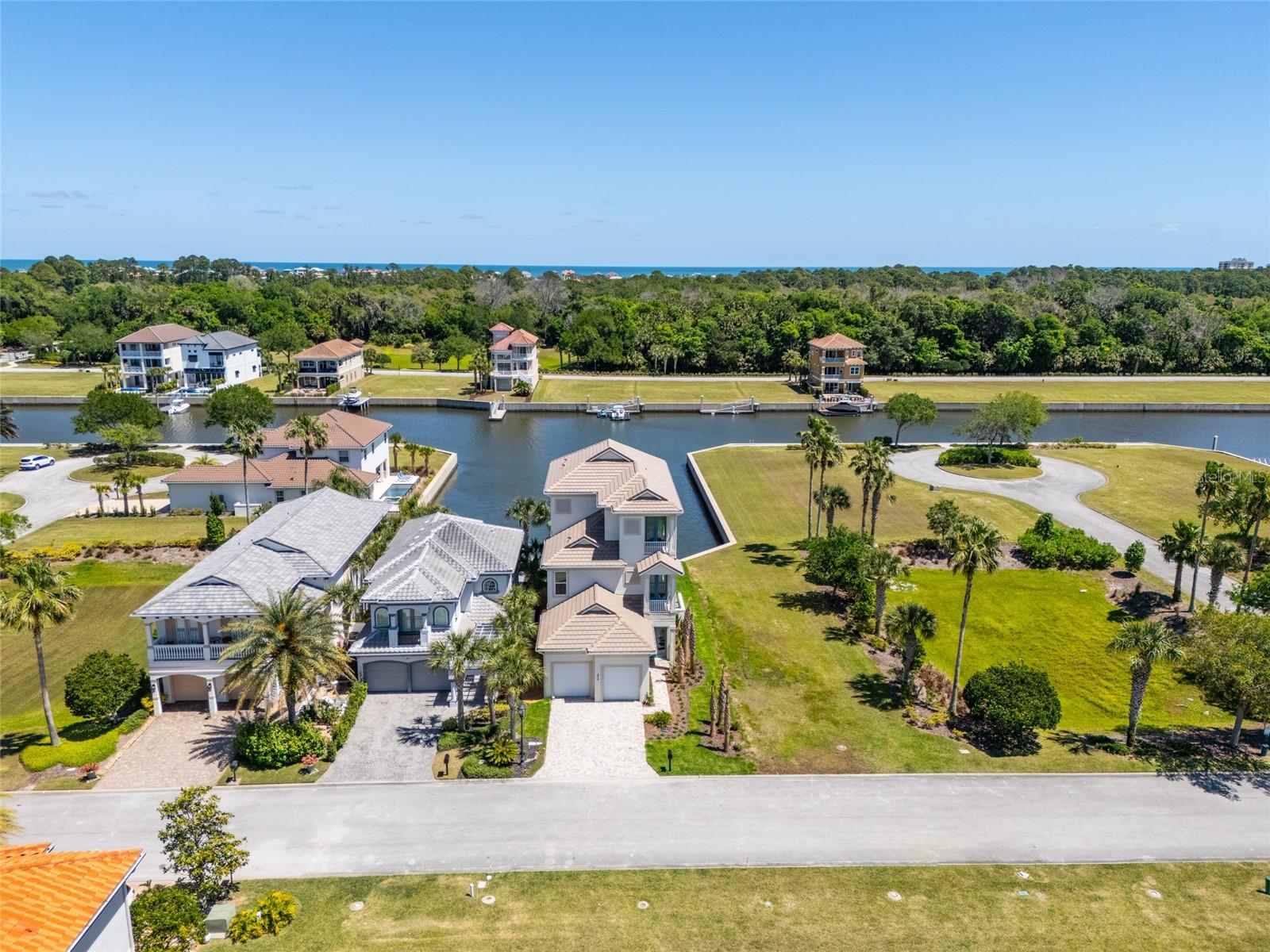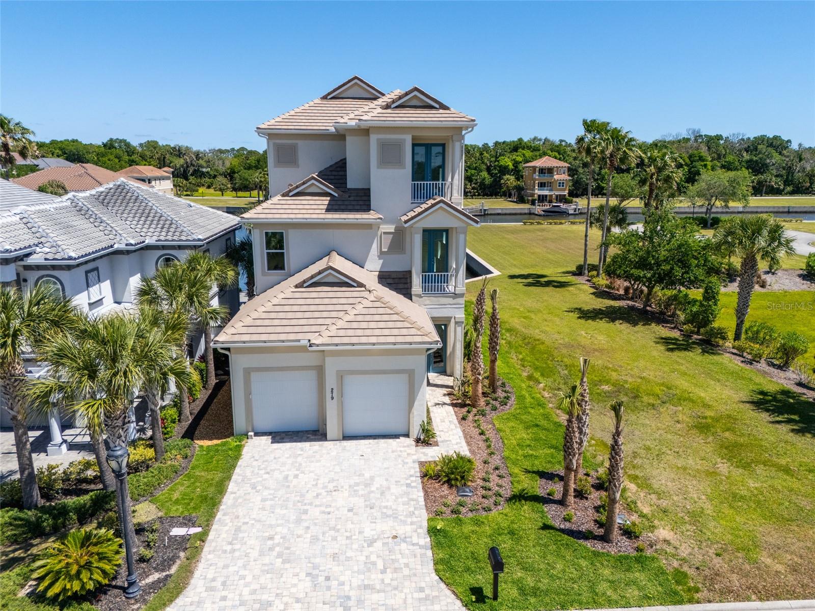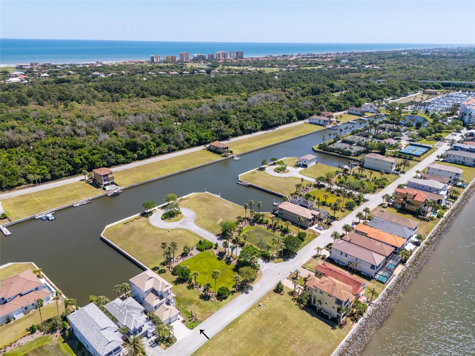 This magnificent waterfront new construction luxury home is a Boater's Paradise and ready for its new owners! Nestled in the beautiful Yacht Harbor, a 24-hour gated community in Palm Coast, this residence offers direct access to the Intracoastal Waterway with just a 5-minute boat ride and is a mere 1.5 miles from public beach access. Upon entering, you will be impressed by the 12ft elevated ceilings, exquisite lighting, and top-of-the-line fixtures. The kitchen features 42in cabinetry, stunning quartz backsplash & countertops with a waterfall edge, and premium 48in GE Monogram appliances including a 6-burner gas range and large walk-in pantry. The living room includes a wet bar with quartz tops, a wine cooler, and a 50lb ice maker. Enjoy easy outdoor access through the triple sliders leading to the covered lanai. A perfect place to enjoy after coming in from the boat or the many activities at your doorstep. This home is centrally located on the canal basin, providing expansive waterfront views from the backyard. Add a private dock for endless days of boating right from your own property. An elevator conveniently takes you to the second and third floors where the bedrooms are situated. The guest suites on the second floor offer generous space and picturesque water views, with two rooms accessing a sprawling balcony. The master suite on the third floor boasts breathtaking views, a wet bar area, a massive walk-in closet, and a lavish master bathroom with his & her toilet rooms, sinks, and a spacious walk-in shower. Additionally, the property offers a two-car garage with ample storage space. Join the Hammock Beach Resort & Spa, to access the amenities, including 6 pools, tennis courts, pickleball courts, clubhouse, fitness center, spa, private restaurants, and more. Add two Florida top 50 championship golf courses designed by Nicklaus & Watson, as well as access to worldwide Troon courses. Come join the exceptional lifestyle of living in Hammock Beach, in this gorgeous home. Contact us today to schedule your private showing and experience the luxury of Yacht Harbor living.