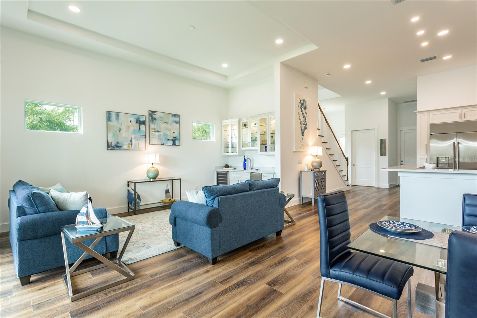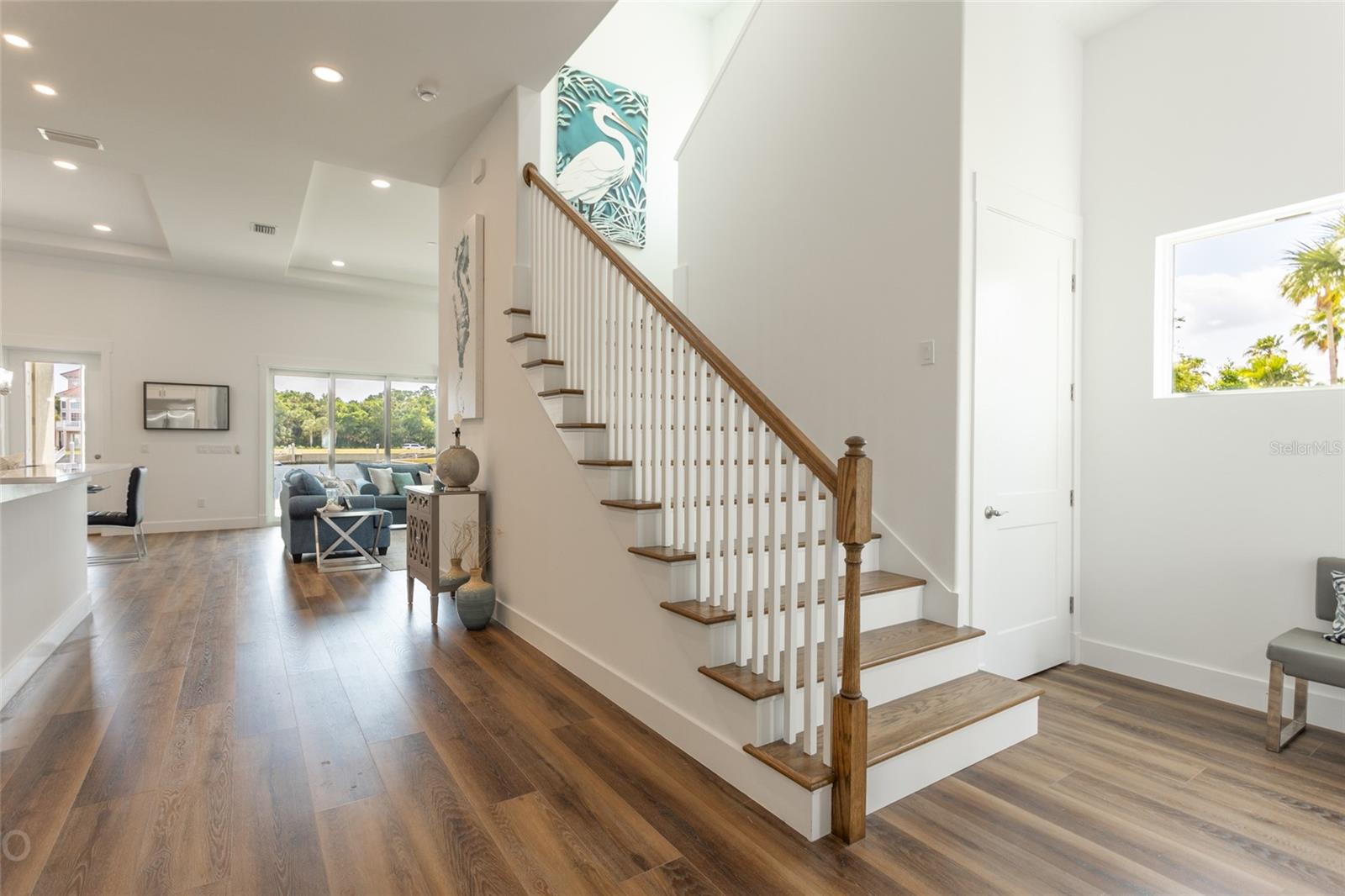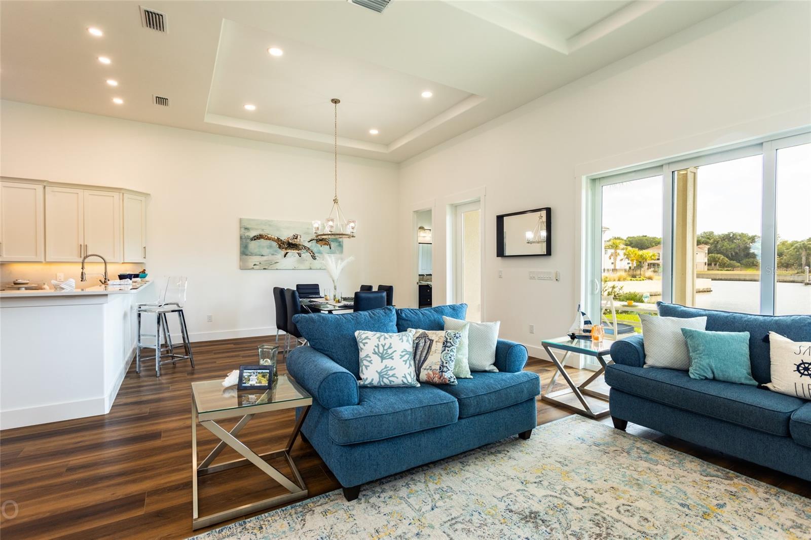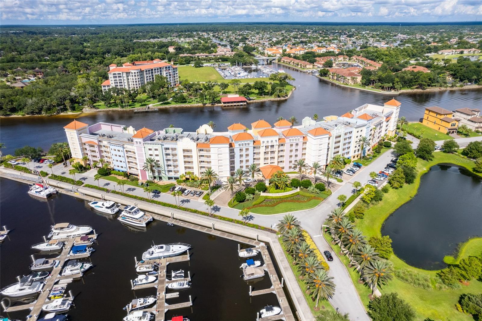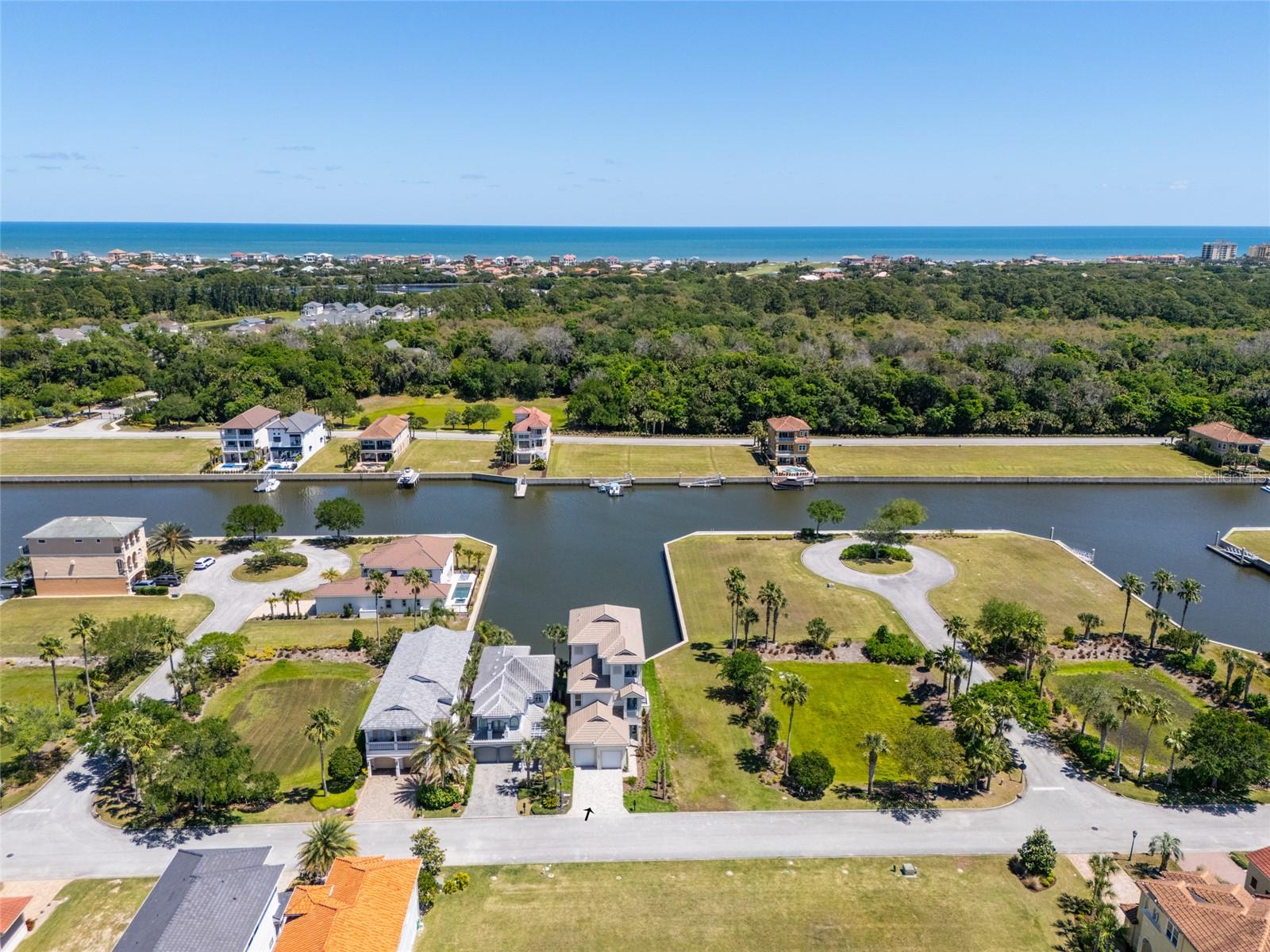 This magnificent waterfront new construction luxury home is a Boater's Paradise and ready for its new owners! Nestled in the beautiful Yacht Harbor, a 24-hour gated community in Palm Coast, this residence offers direct access to the Intracoastal Waterway with just a 5-minute boat ride and is a mere 1.5 miles from public beach access. Upon entering, you will be impressed by the 12ft elevated ceilings, exquisite lighting, and top-of-the-line fixtures. The kitchen features 42in cabinetry, stunning quartz backsplash & countertops with a waterfall edge, and premium 48in GE Monogram appliances including a 6-burner gas range and large walk-in pantry. The living room includes a wet bar with quartz tops, a wine cooler, and a 50lb ice maker. Enjoy easy outdoor access through the triple sliders leading to the covered lanai. A perfect place to enjoy after coming in from the boat or the many activities at your doorstep. This home is centrally located on the canal basin, providing expansive waterfront views from the backyard. Add a private dock for endless days of boating right from your own property. An elevator conveniently takes you to the second and third floors where the bedrooms are situated. The guest suites on the second floor offer generous space and picturesque water views, with two rooms accessing a sprawling balcony. The master suite on the third floor boasts breathtaking views, a wet bar area, a massive walk-in closet, and a lavish master bathroom with his & her toilet rooms, sinks, and a spacious walk-in shower. Additionally, the property offers a two-car garage with ample storage space. Join the Hammock Beach Resort & Spa, to access the amenities, including 6 pools, tennis courts, pickleball courts, clubhouse, fitness center, spa, private restaurants, and more. Add two Florida top 50 championship golf courses designed by Nicklaus & Watson, as well as access to worldwide Troon courses. Come join the exceptional lifestyle of living in Hammock Beach, in this gorgeous home. Contact us today to schedule your private showing and experience the luxury of Yacht Harbor living.